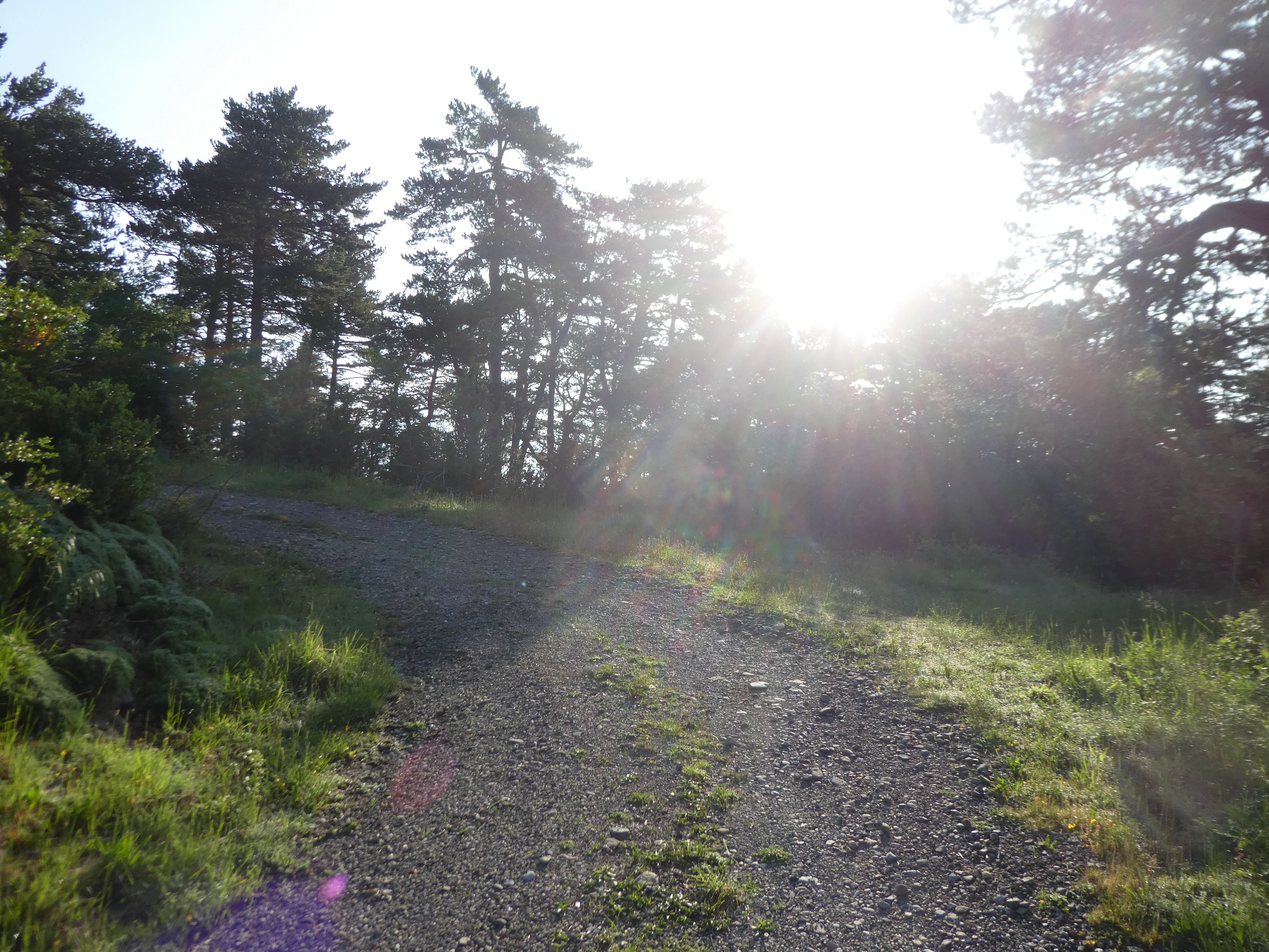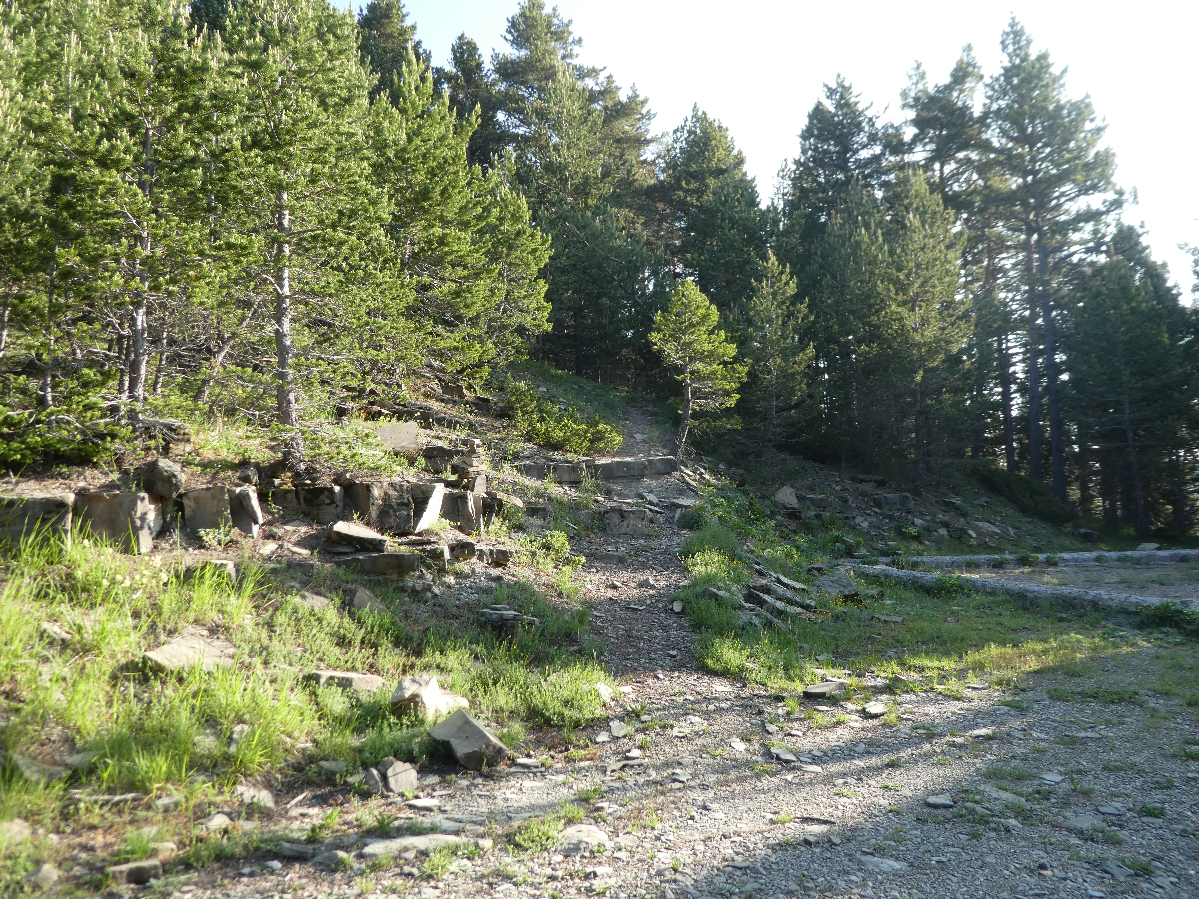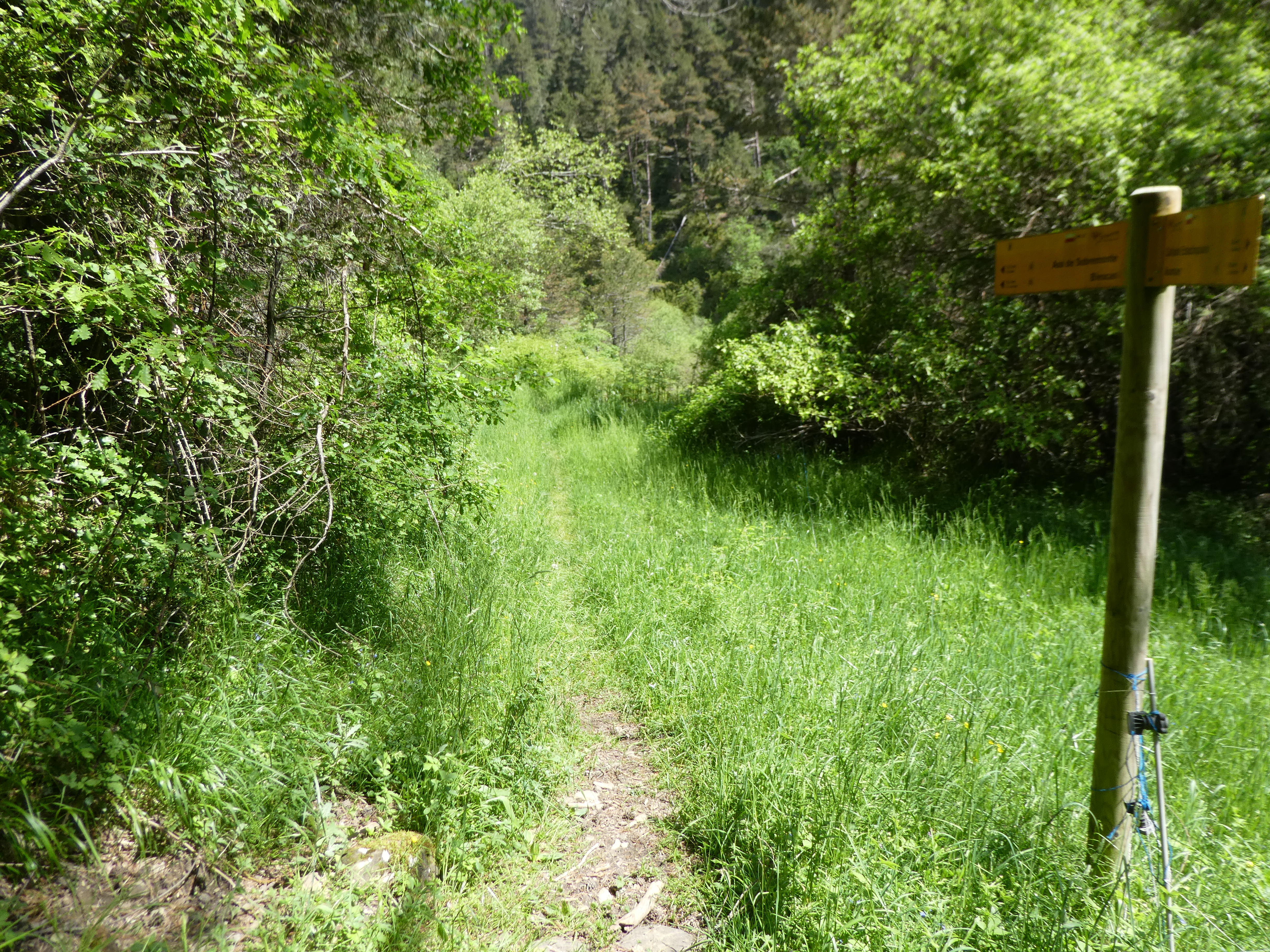 A ce croisement cairné avec le chemin raccourci coupant la piste menant à l'antenne de la Cerruza (200 mètres après le précédent mentionné), suivre ce dernier montant de biais sur la droite direction Cerruza, aucun balisage (ce chemin va couper à trois reprises la piste)