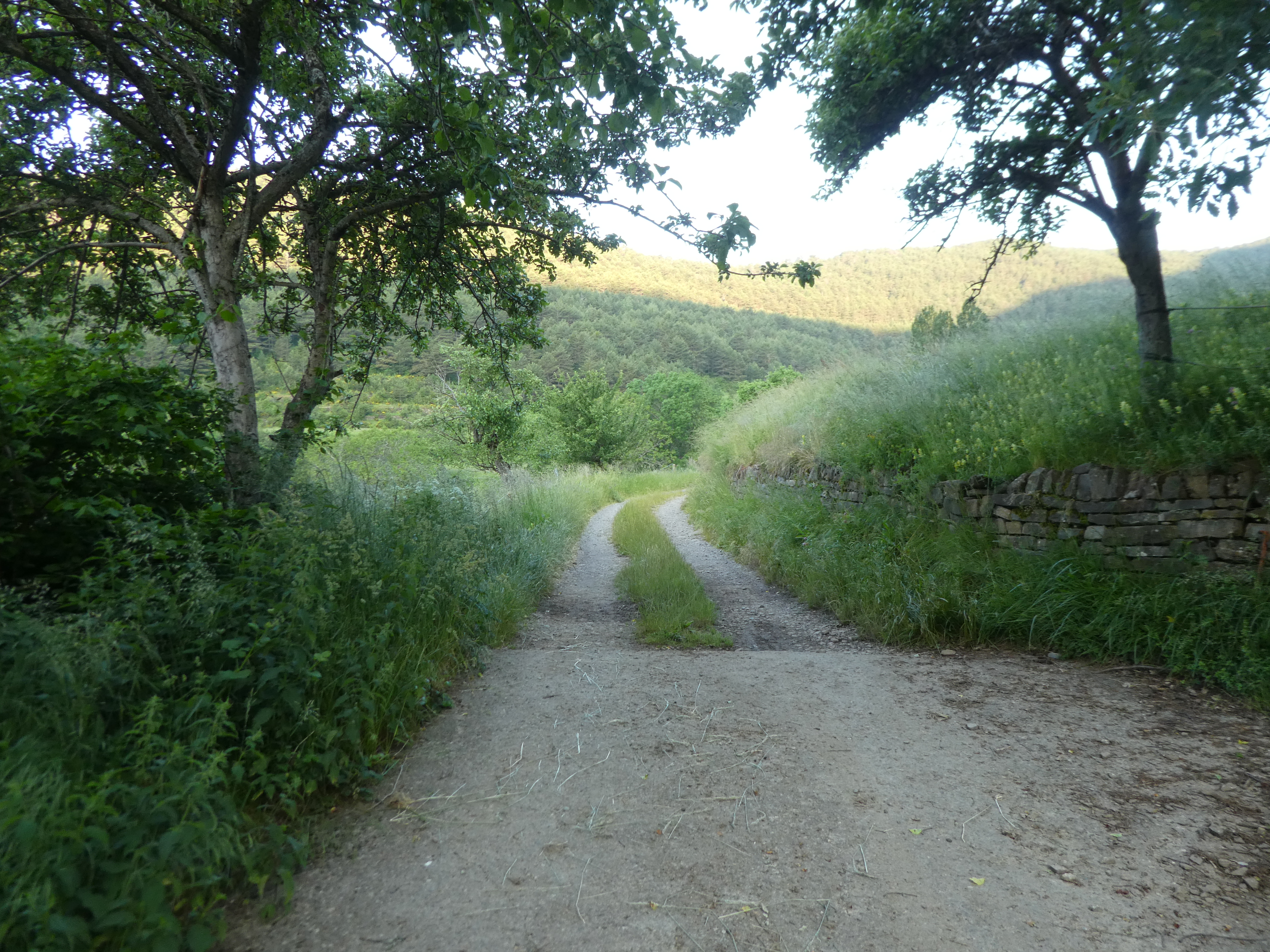 A ce croisement marqué par la présence d'un panneau directionnel (250 mètres après le précédent mentionné), suivre le chemin partant sur la droite direction Betés de Sobremonte (por Ermita de Santa Orosia), balisé sporadiquement en balises VTT n°32