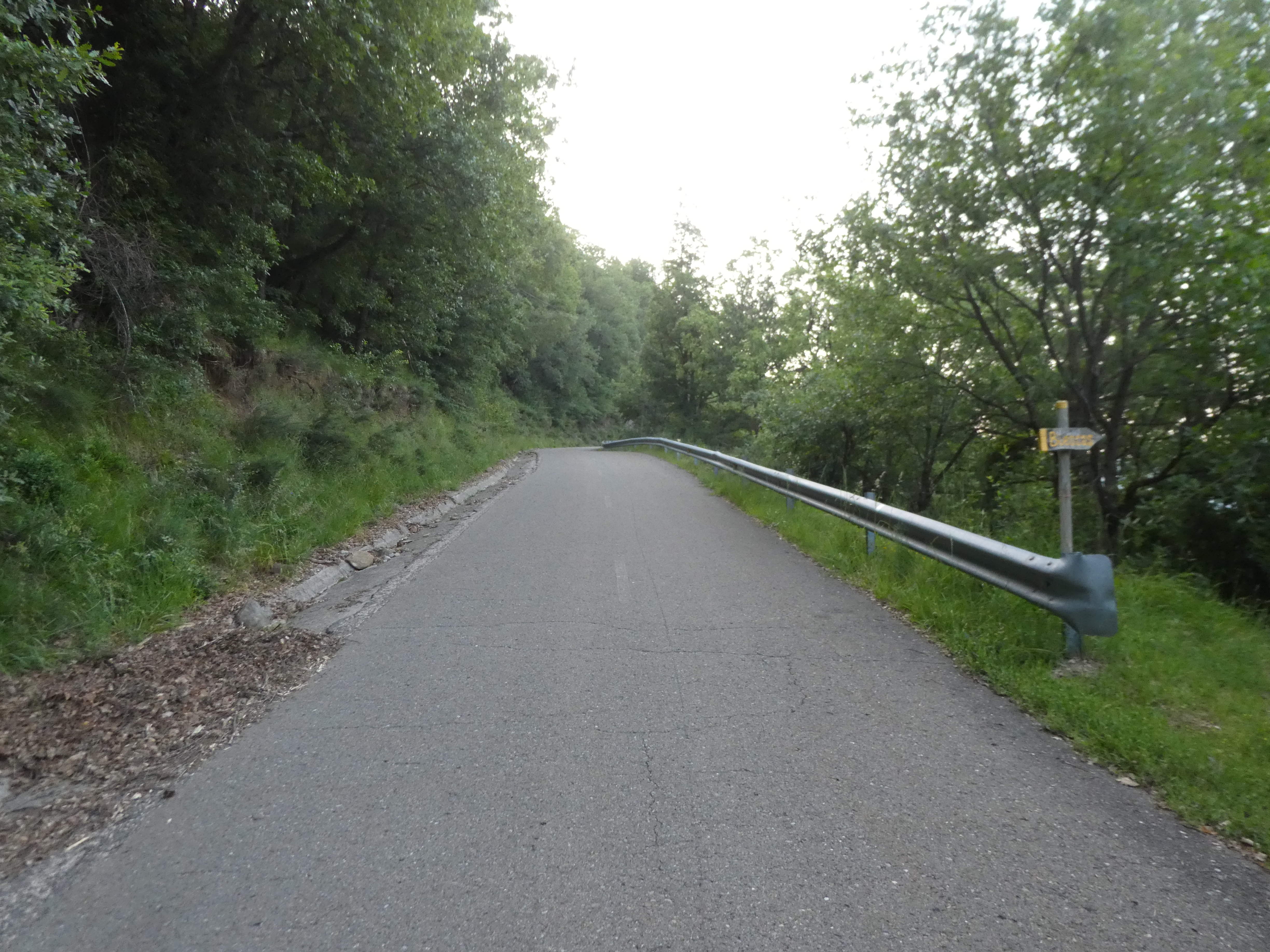 A ce croisement marqué par la présence d'un panneau directionnel (100 mètres après le départ), quitter le GR15 partant sur la gauche pour suivre la route partant tout droit direction Betés de Sobremonte (por Ermita de Santa Orosia), aucun balisage dorénavant