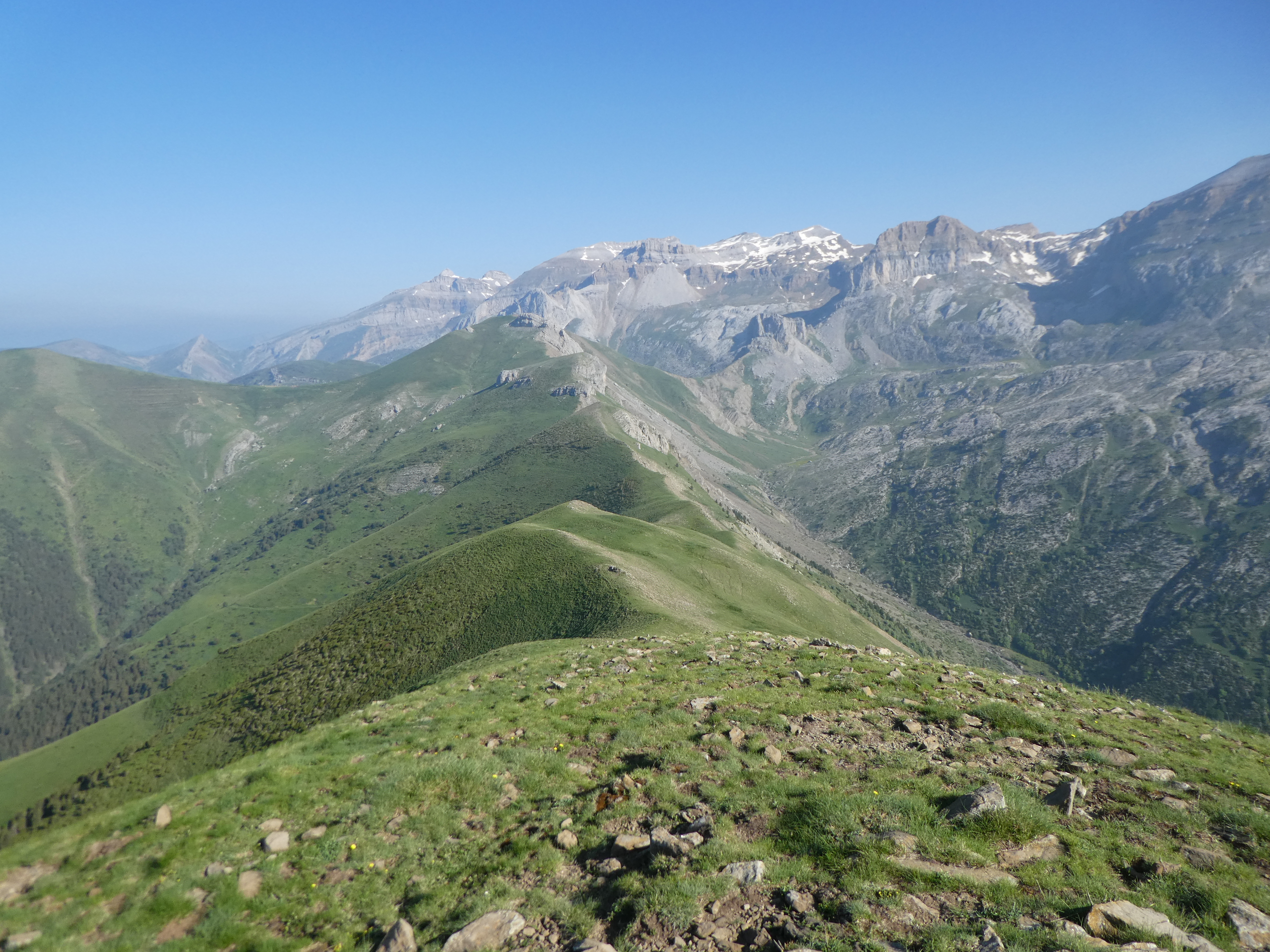 Zoom sur le Monte Sarasé (2179 m) à gauche, le Mondiciero (2395 m) au centre et le Pueyo de Mondicieto (2384 m) à droite