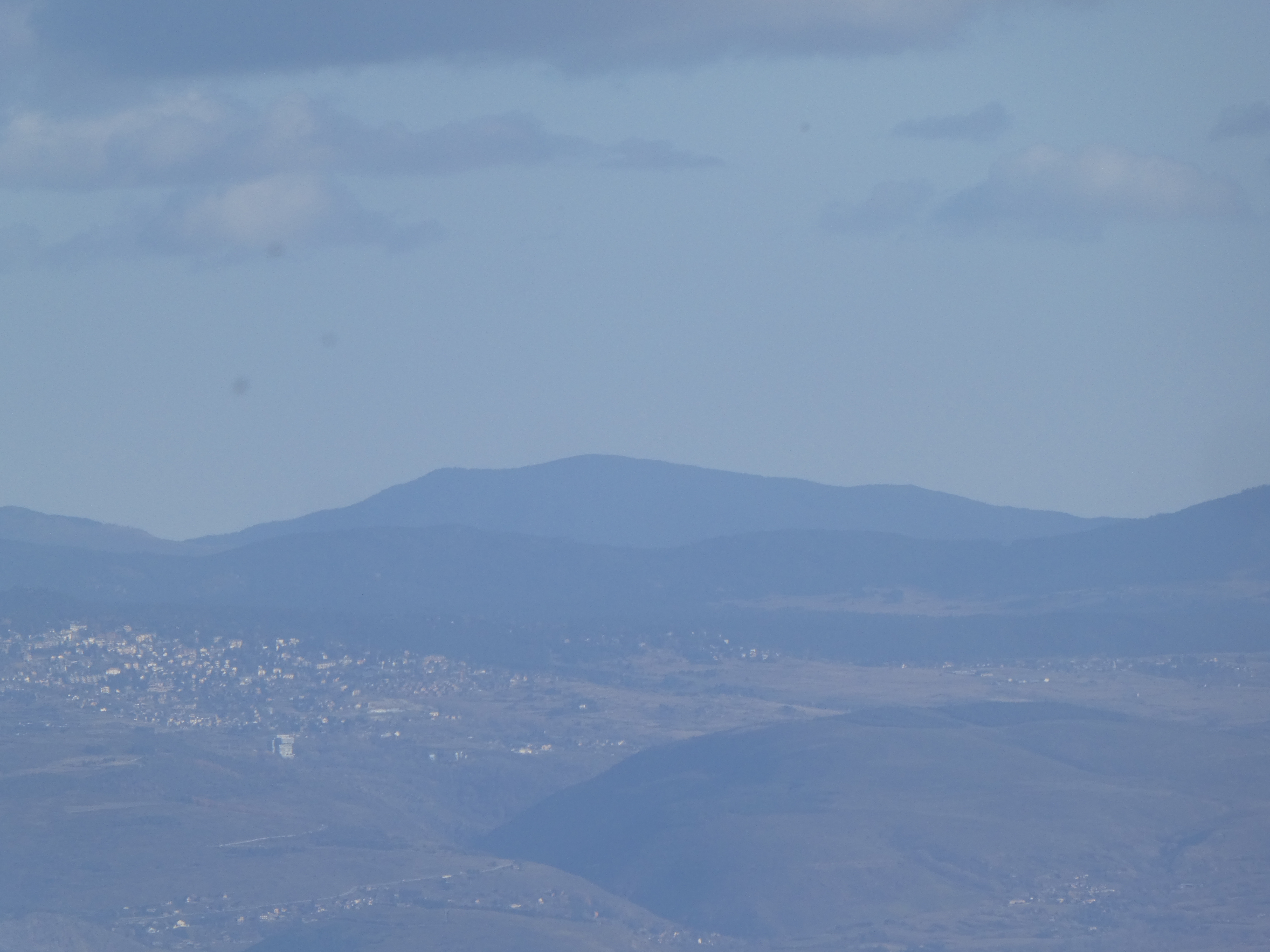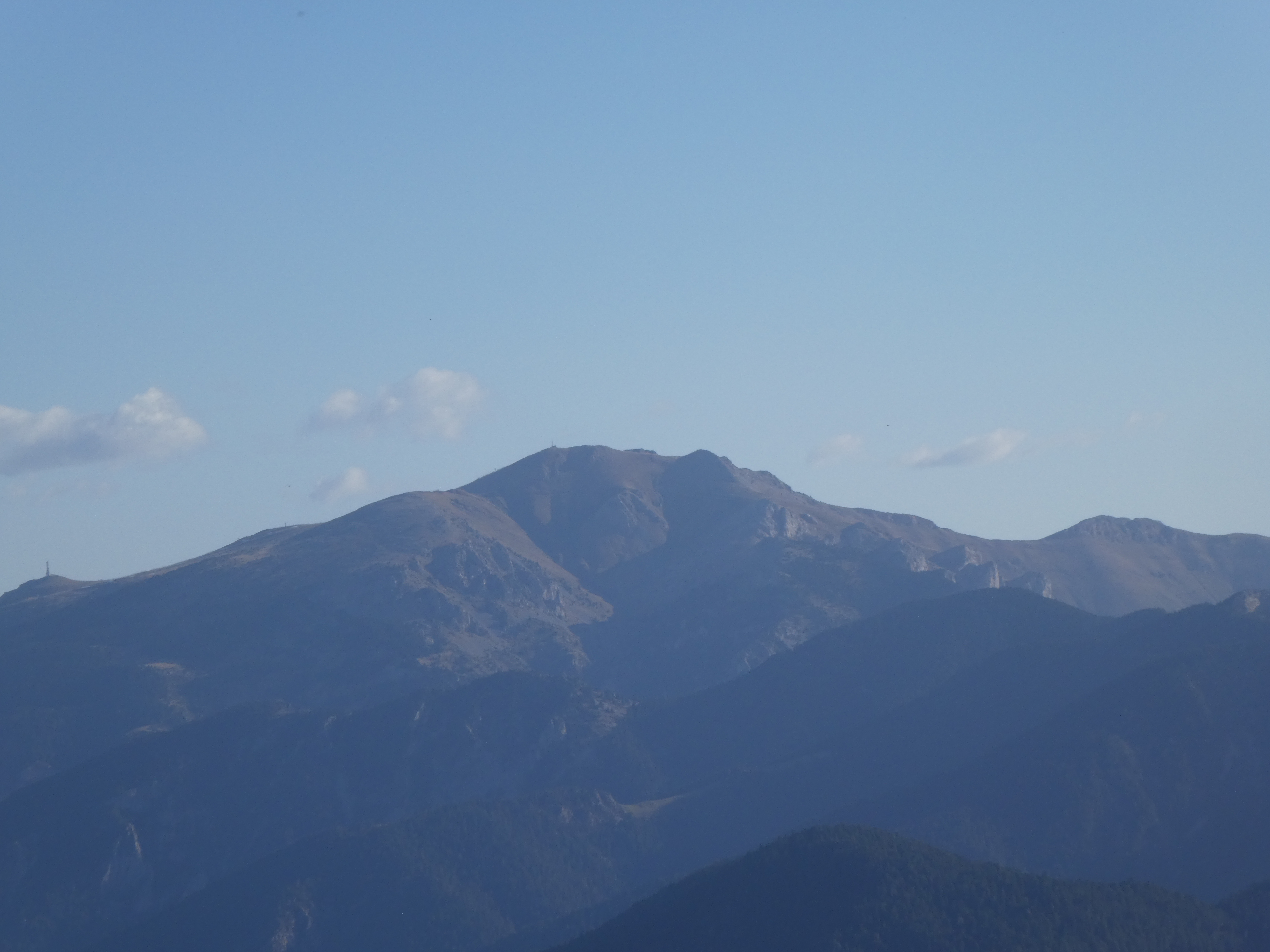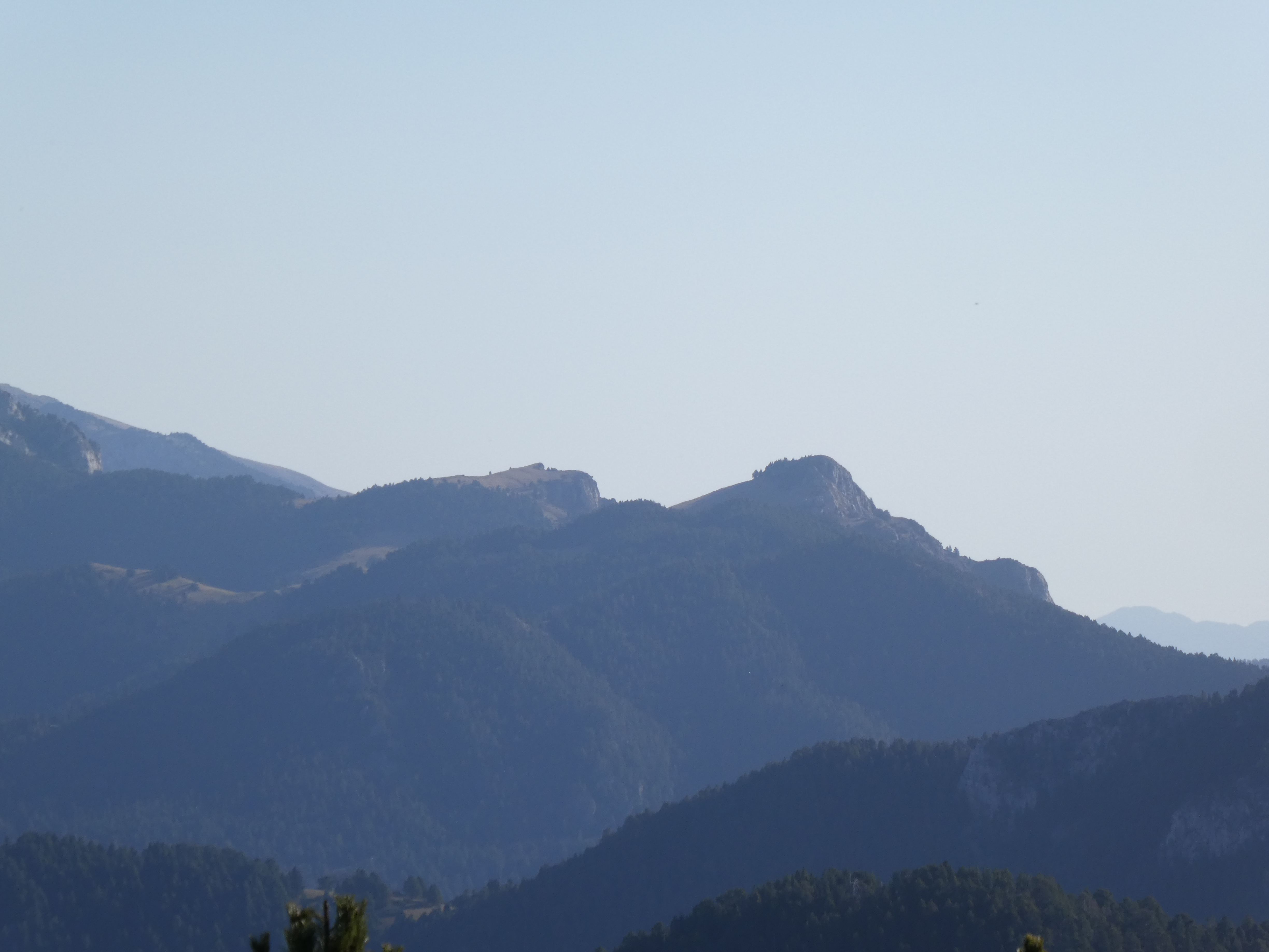 Zoom sur Santa Magdalena de Cambrils (1547 m) à gauche et le Puig de l'Obiol (1544 m) à droite