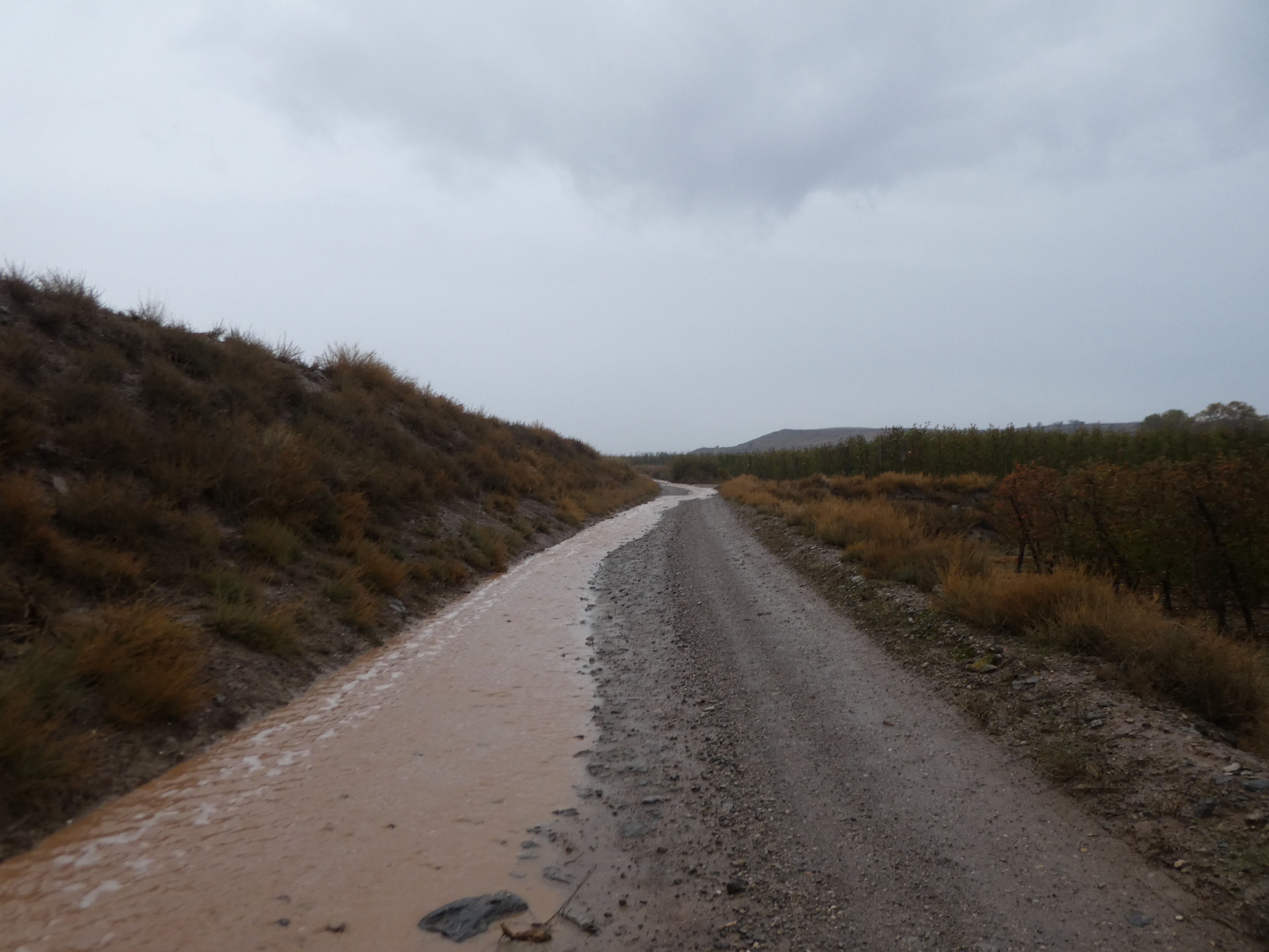 Les chemins sont transformés en petits torrents avec la pluie qui tombe !