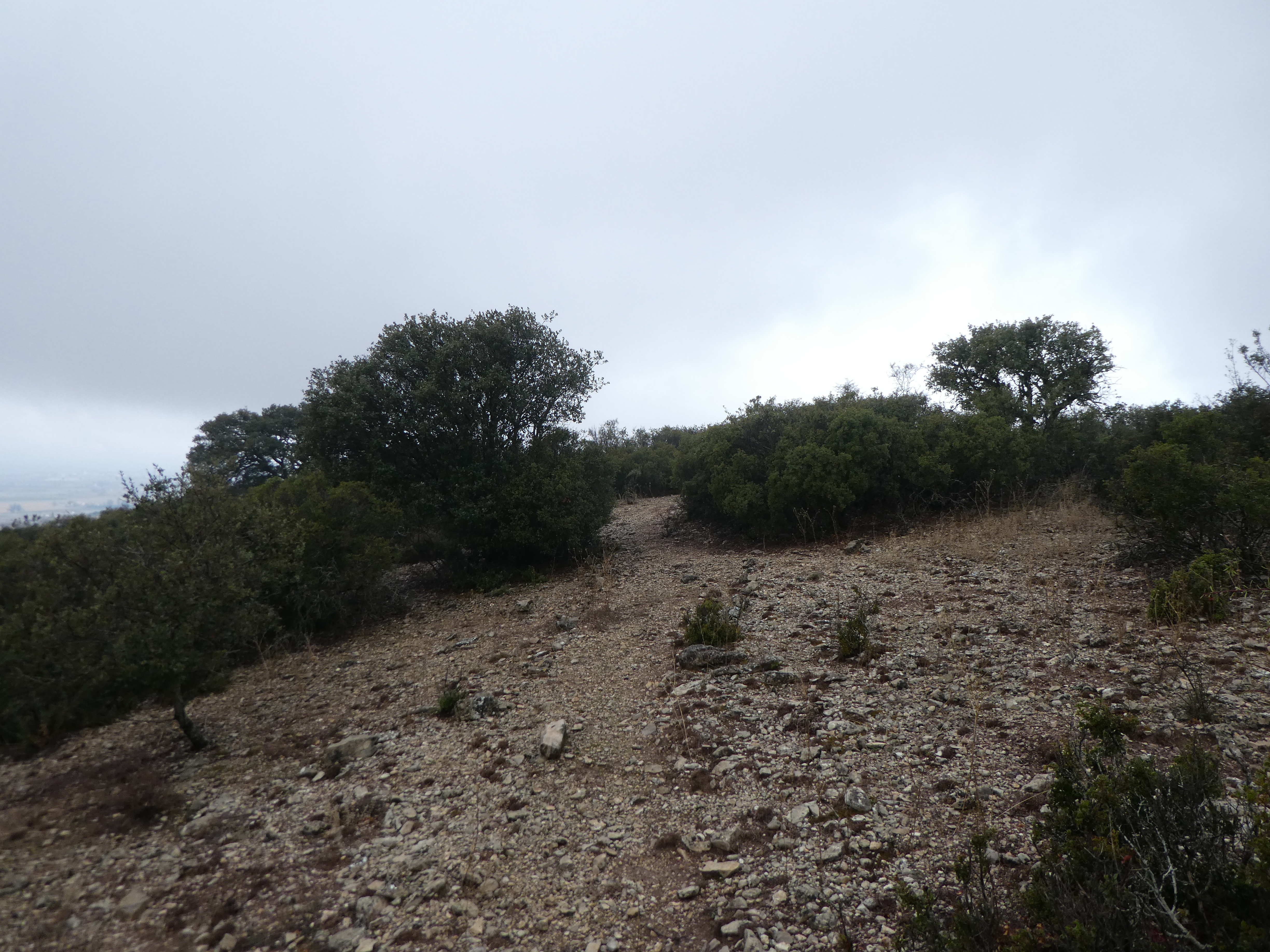 Arrivée au sommet du Tossal d'Espígol (368 m) : panorama bouché par la brume