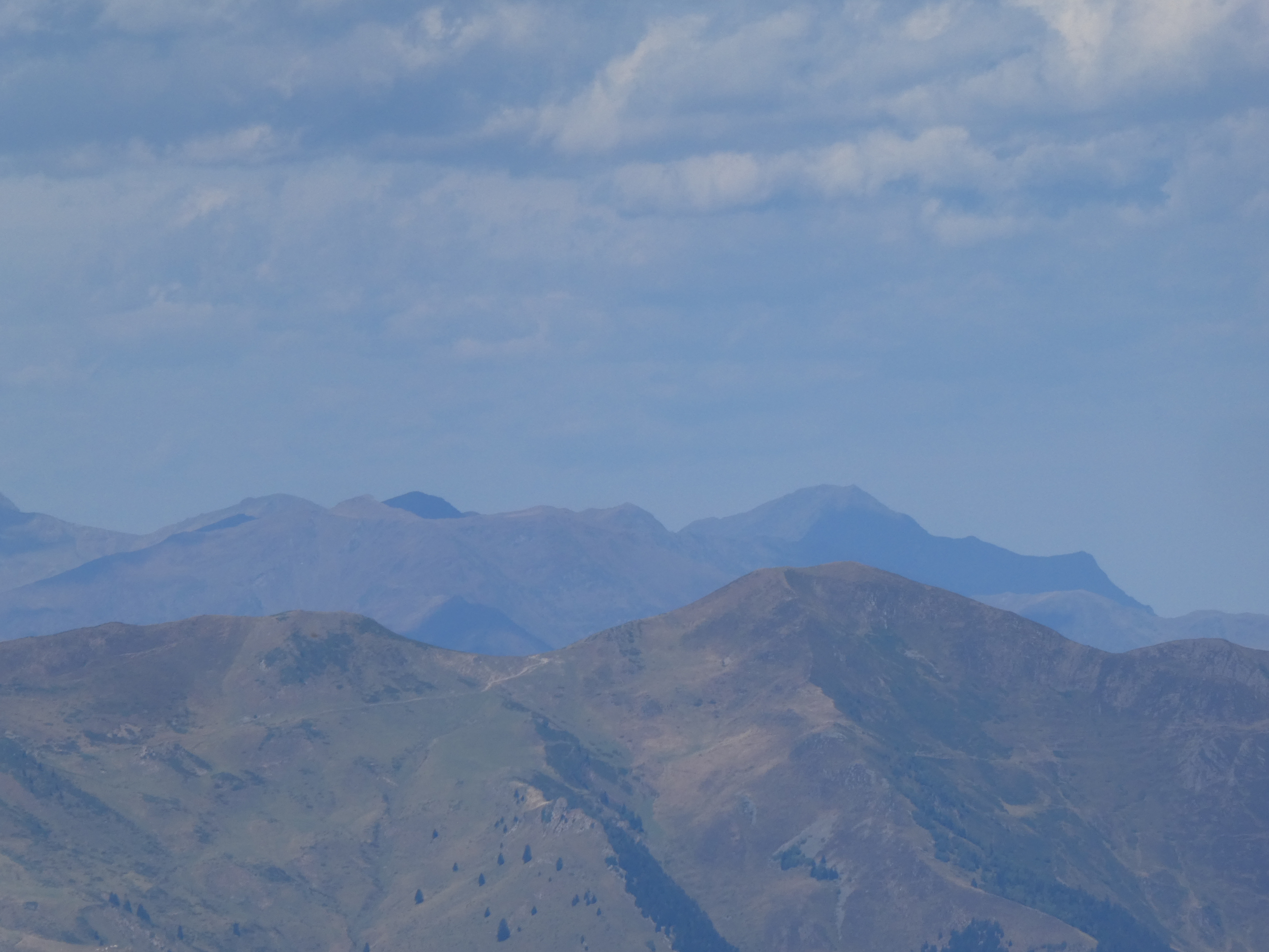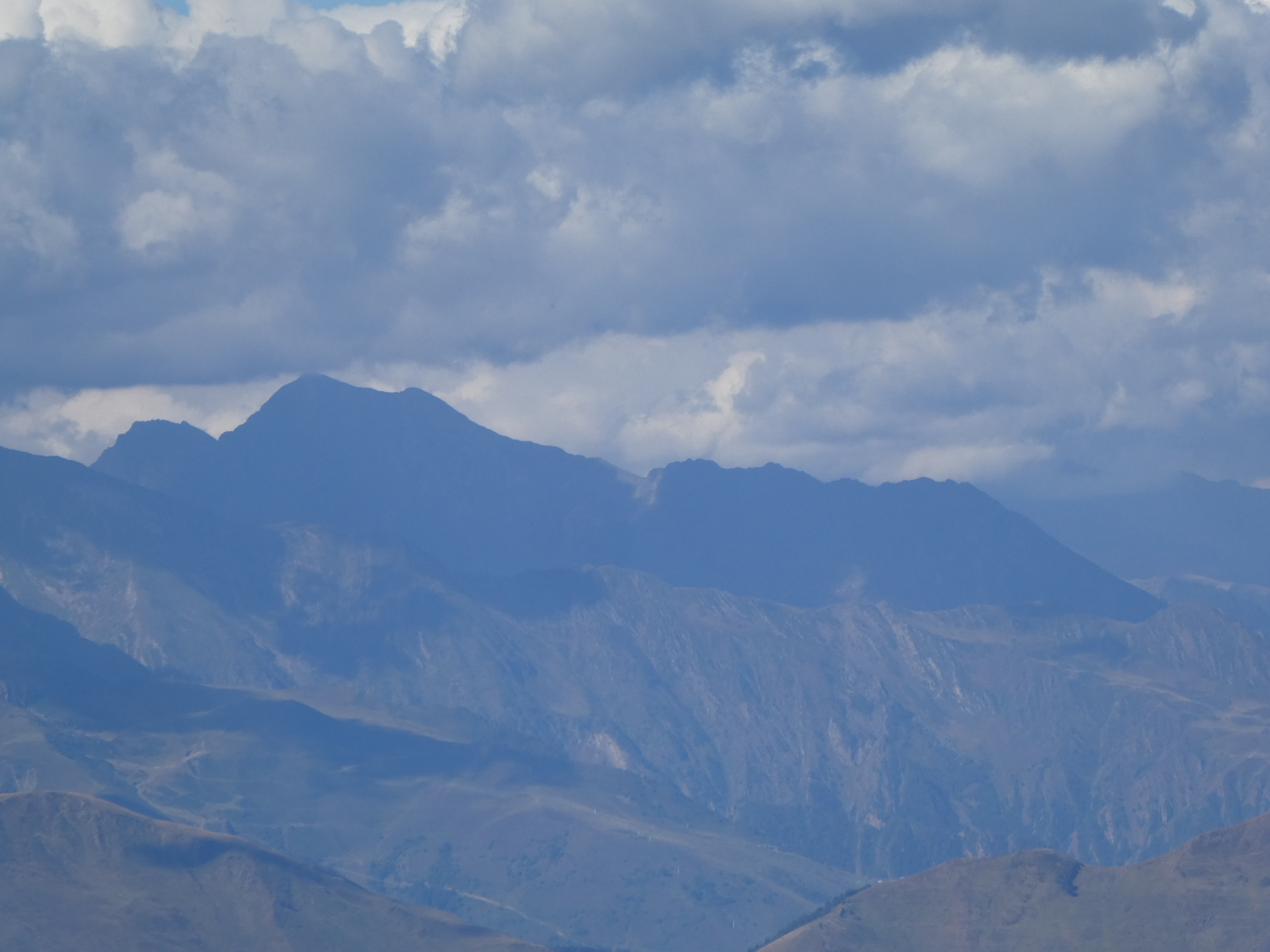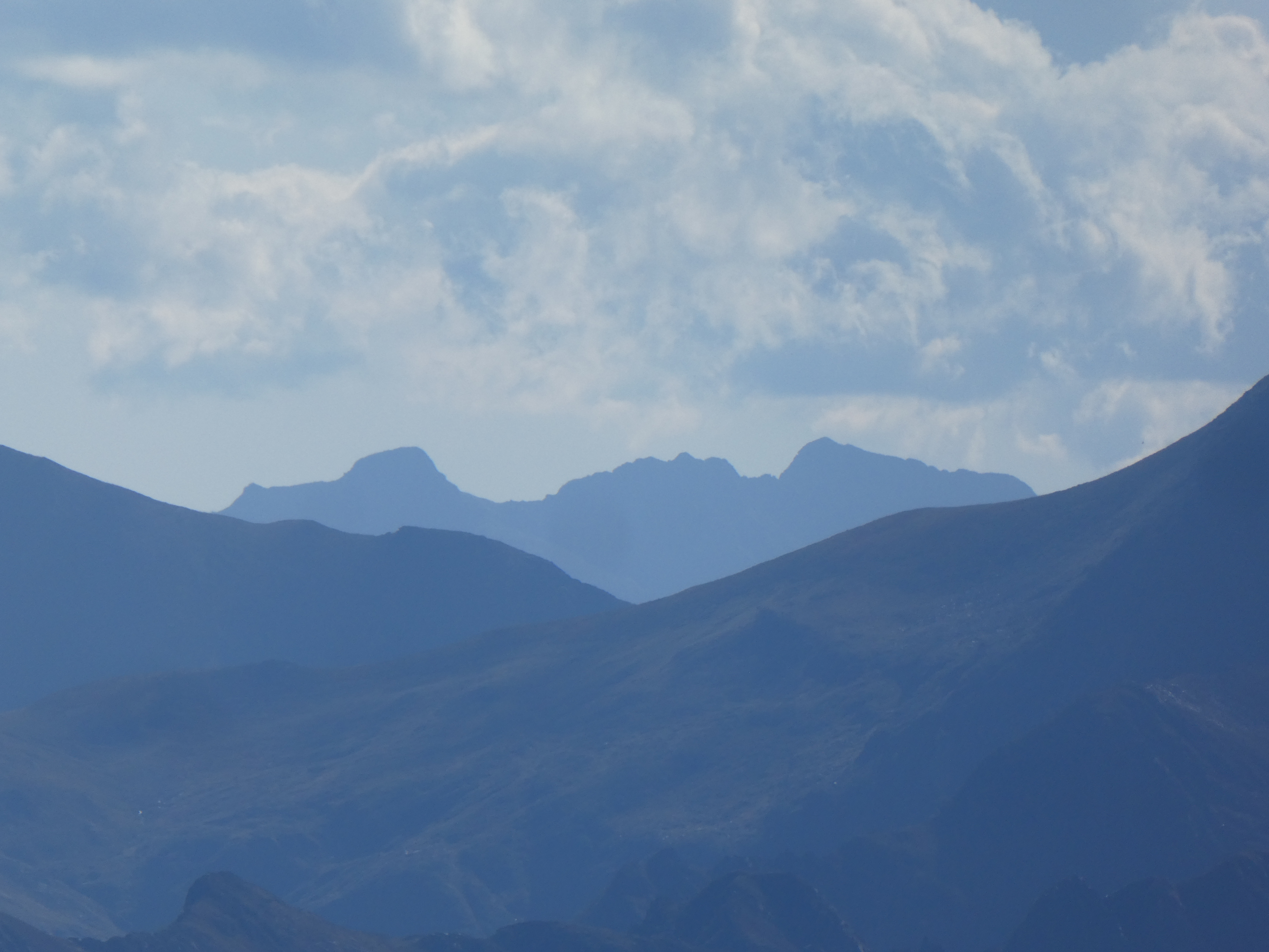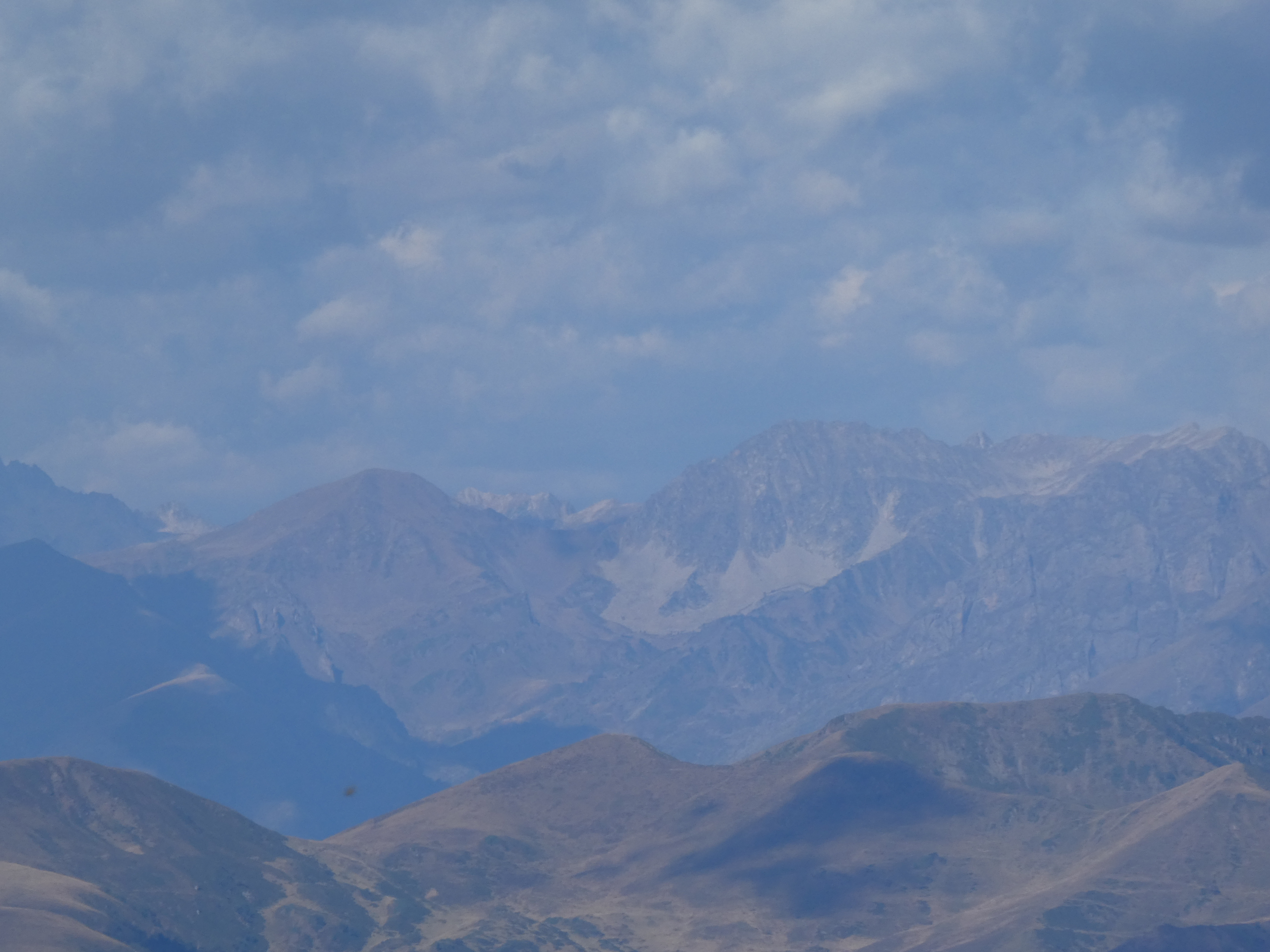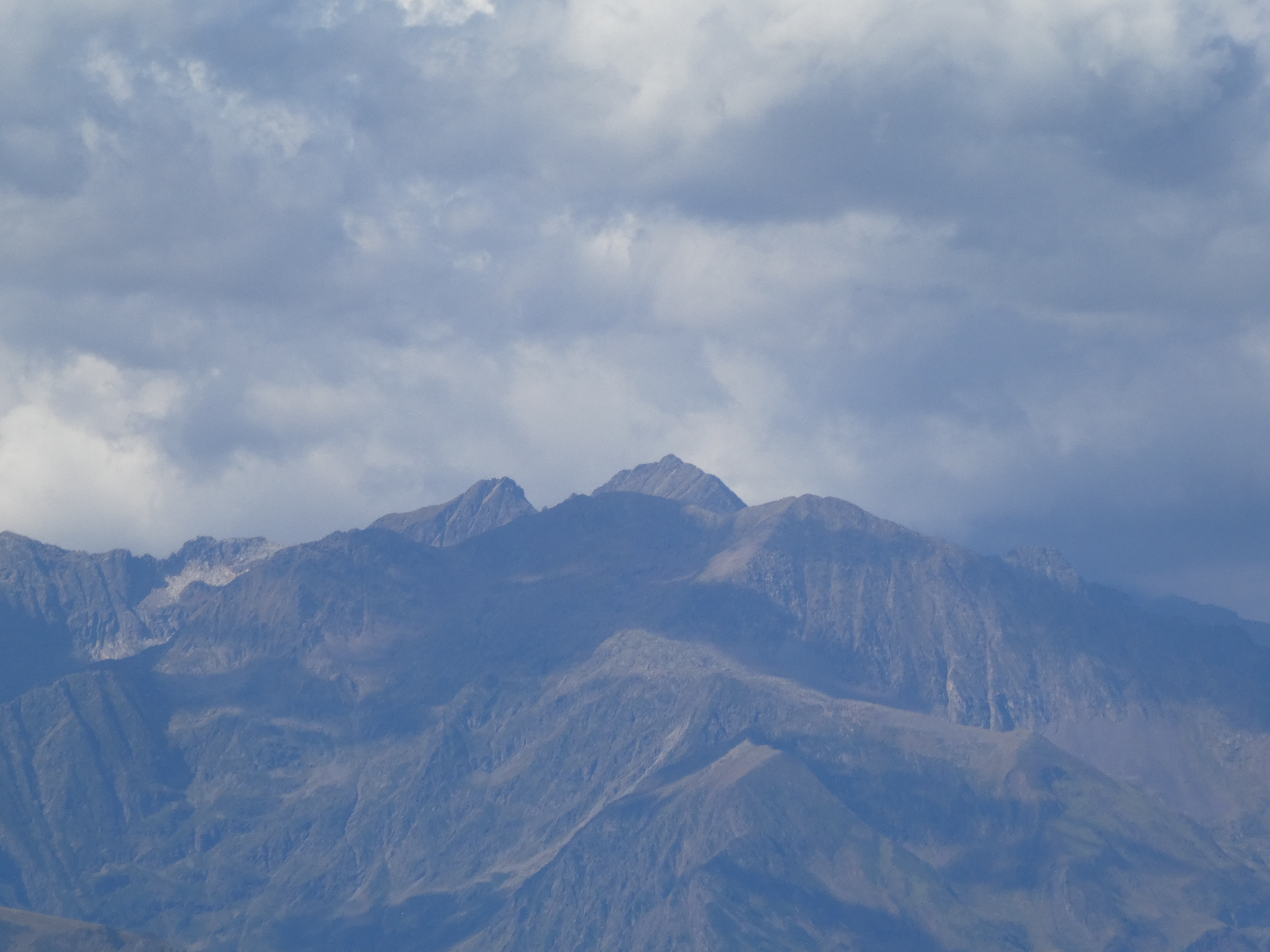 Zoom sur le Pic de Lampau (2543 m) au centre-gauche et le Pic de Pomebrunet (2569 m) au centre-droit