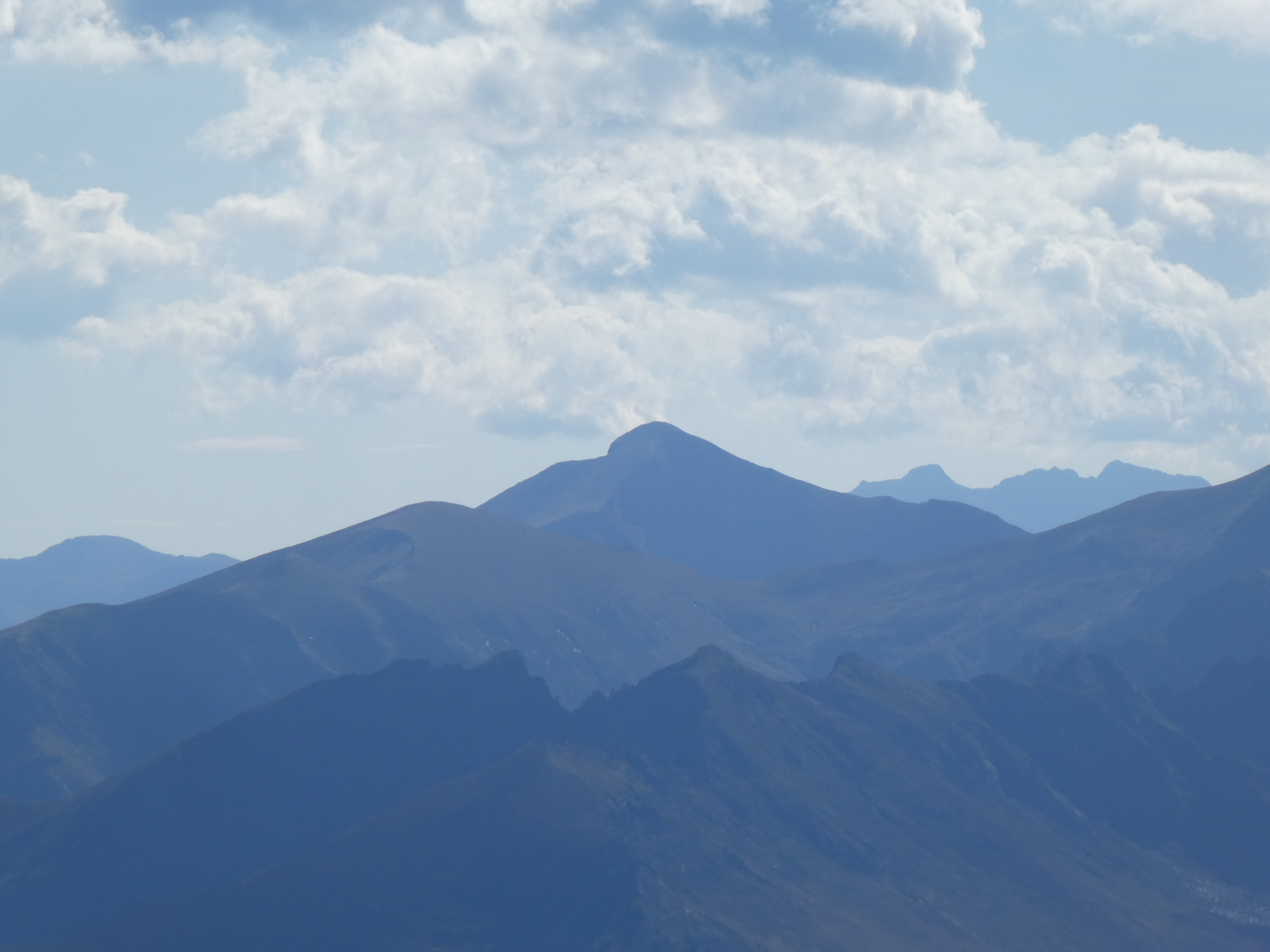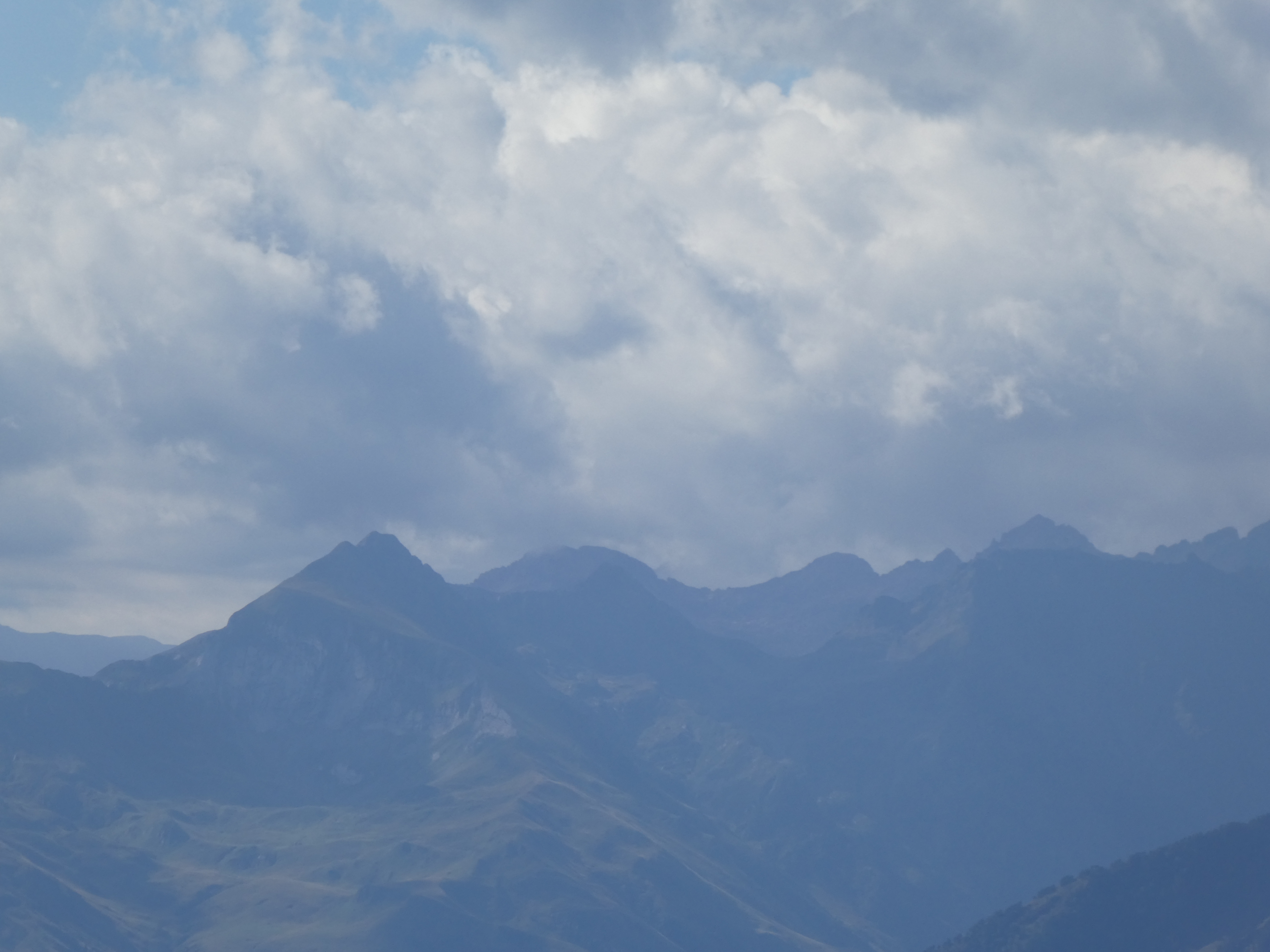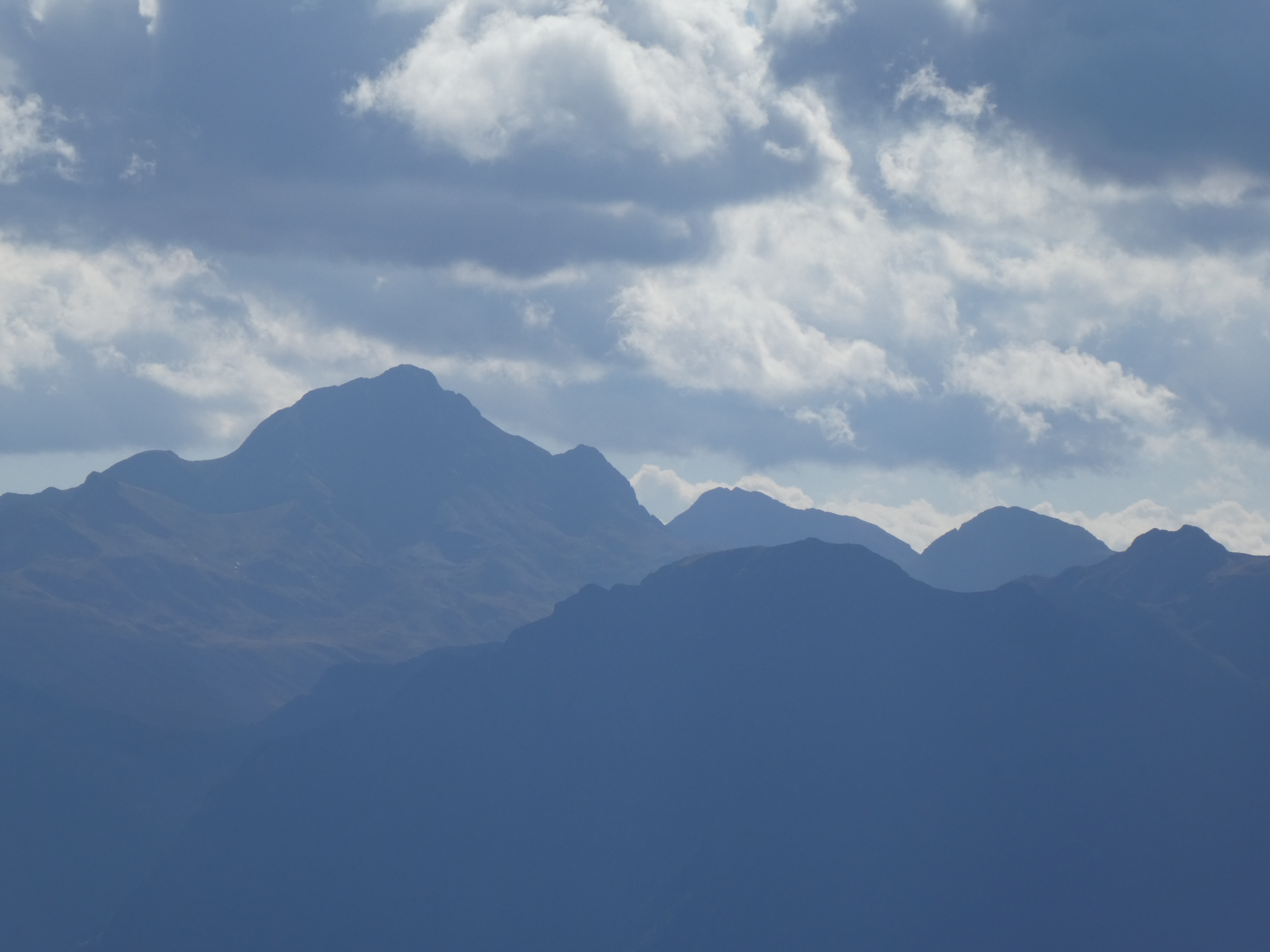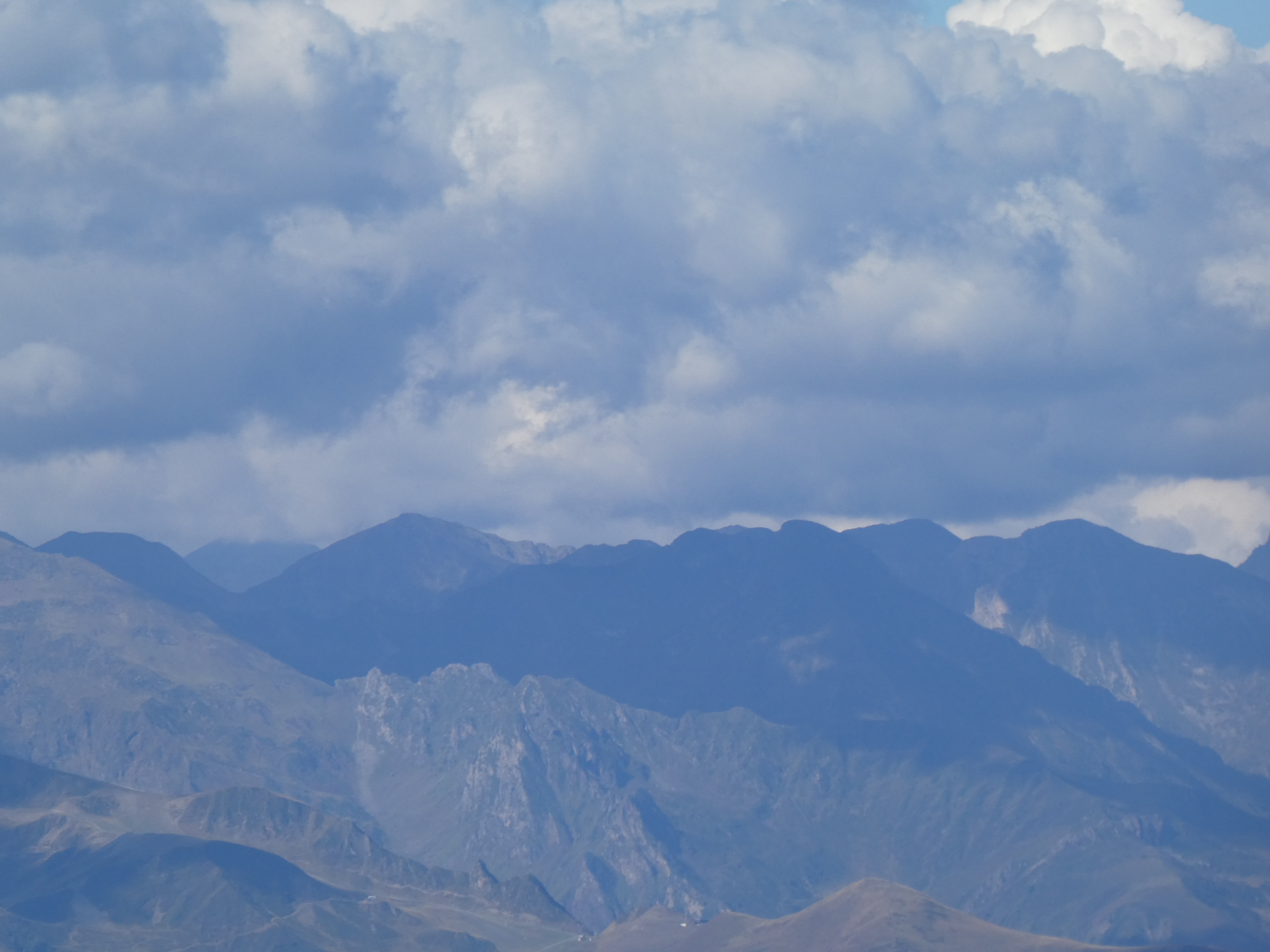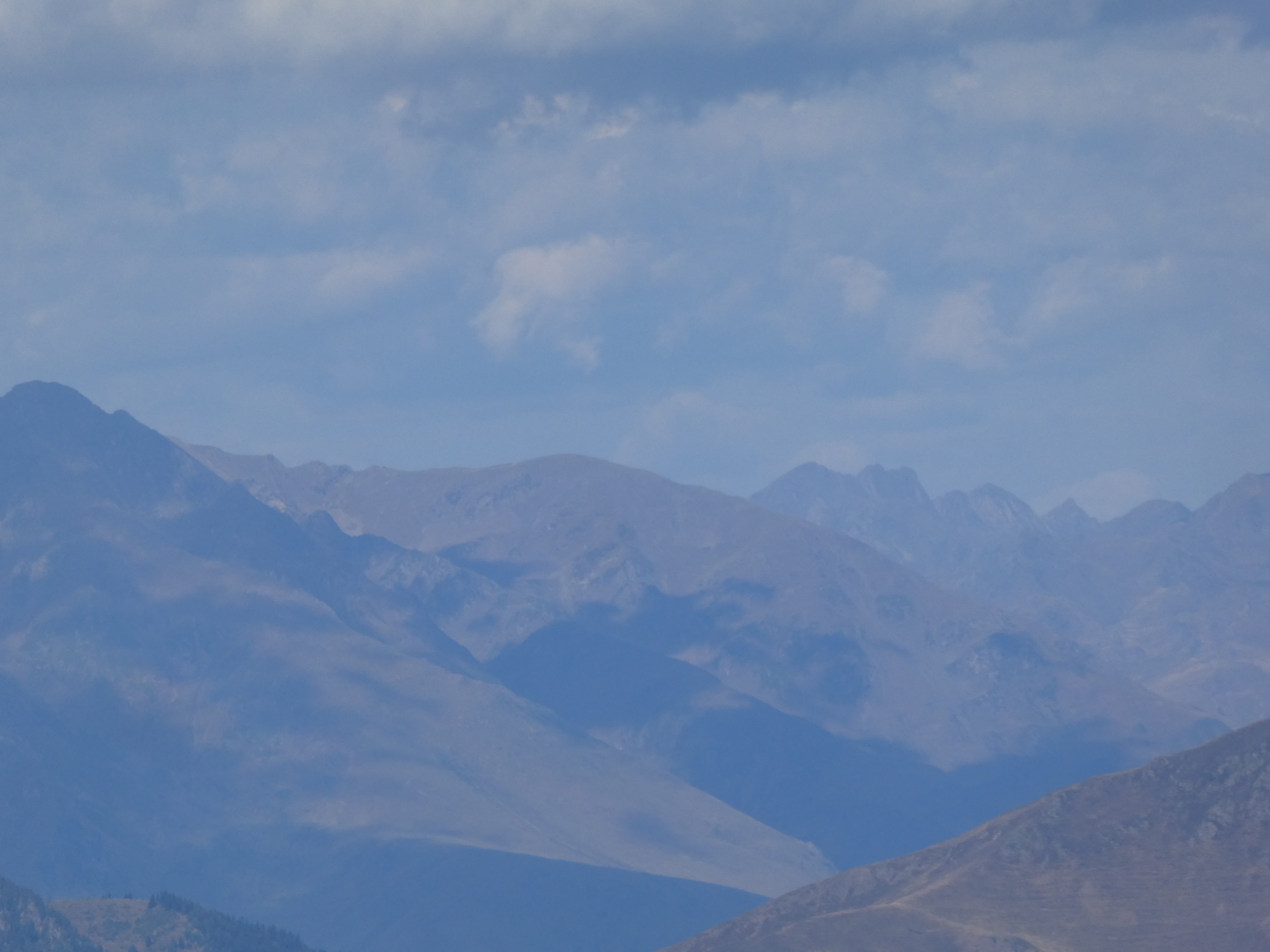 Zoom sur le Pic de Lampau (2543 m) au centre-gauche et le Pic de Pomebrunet (2569 m) au centre-droit