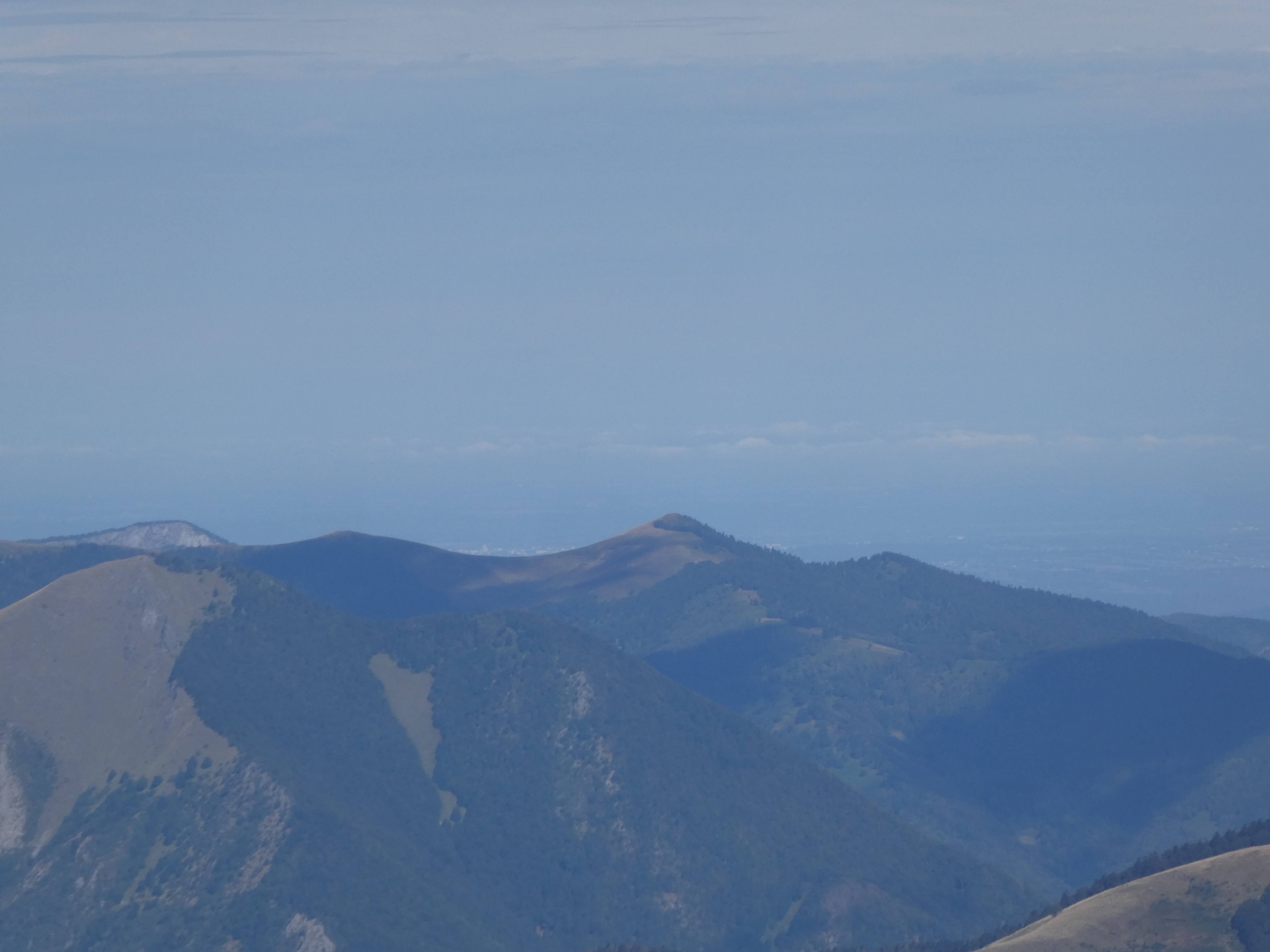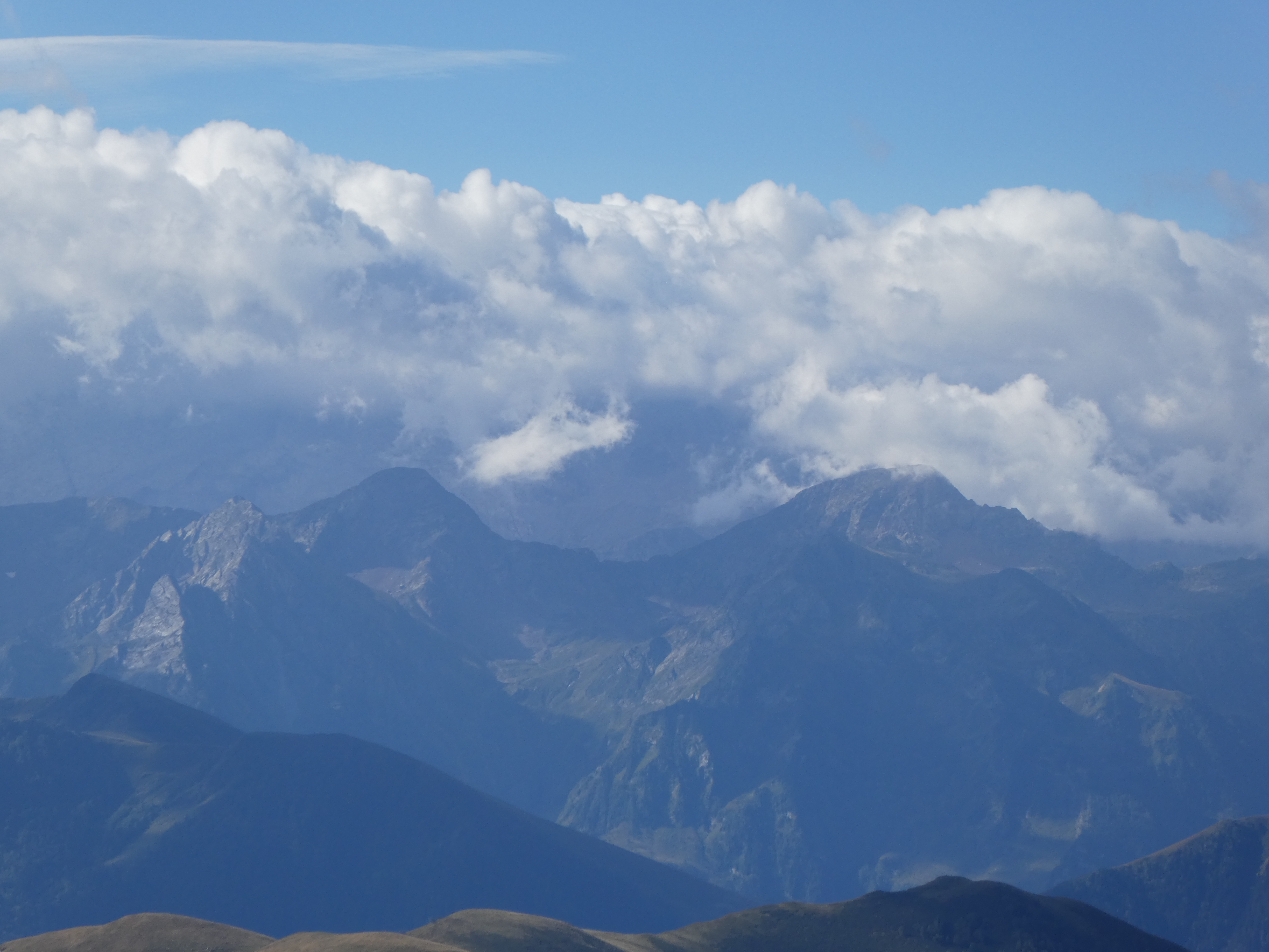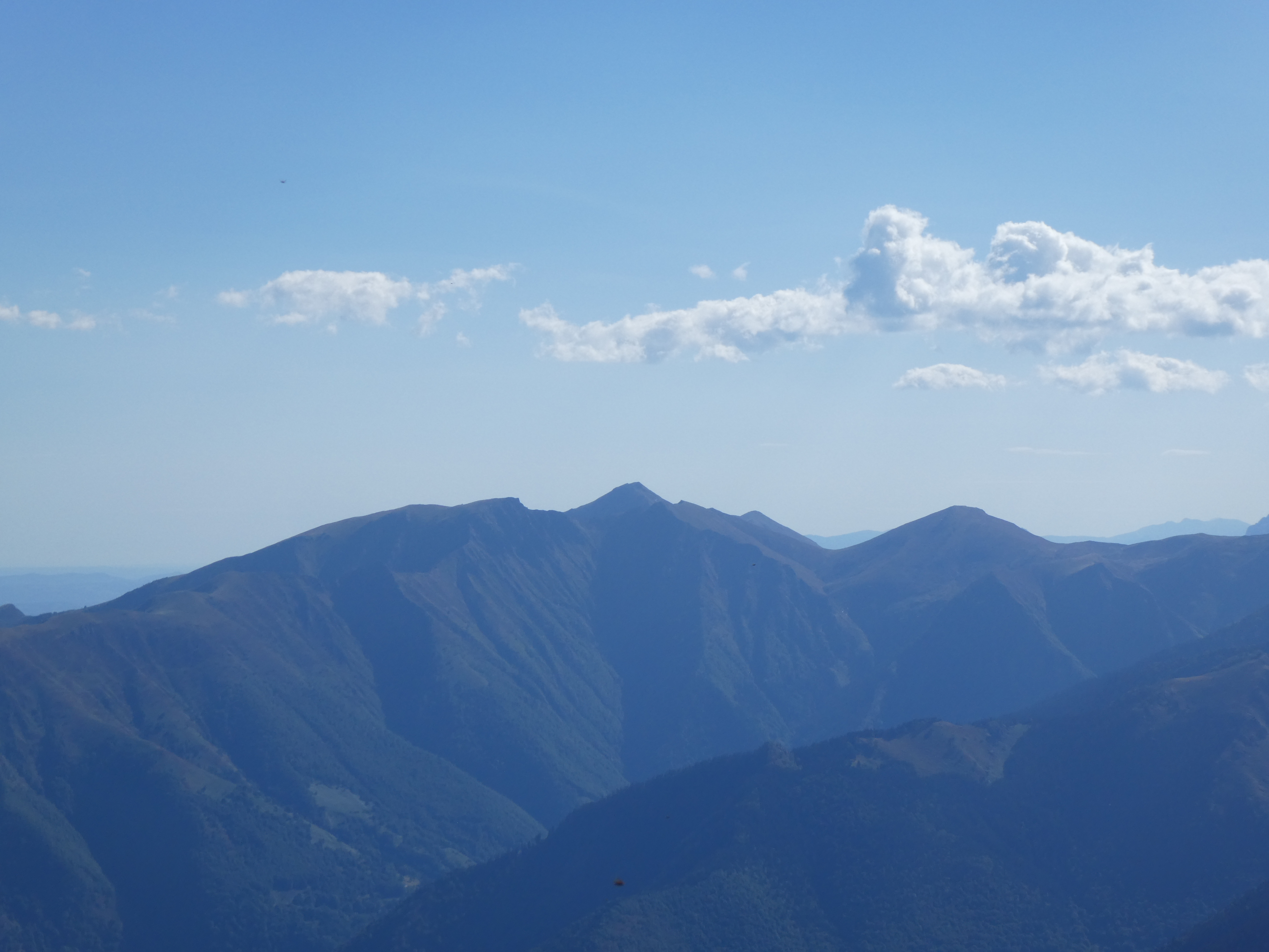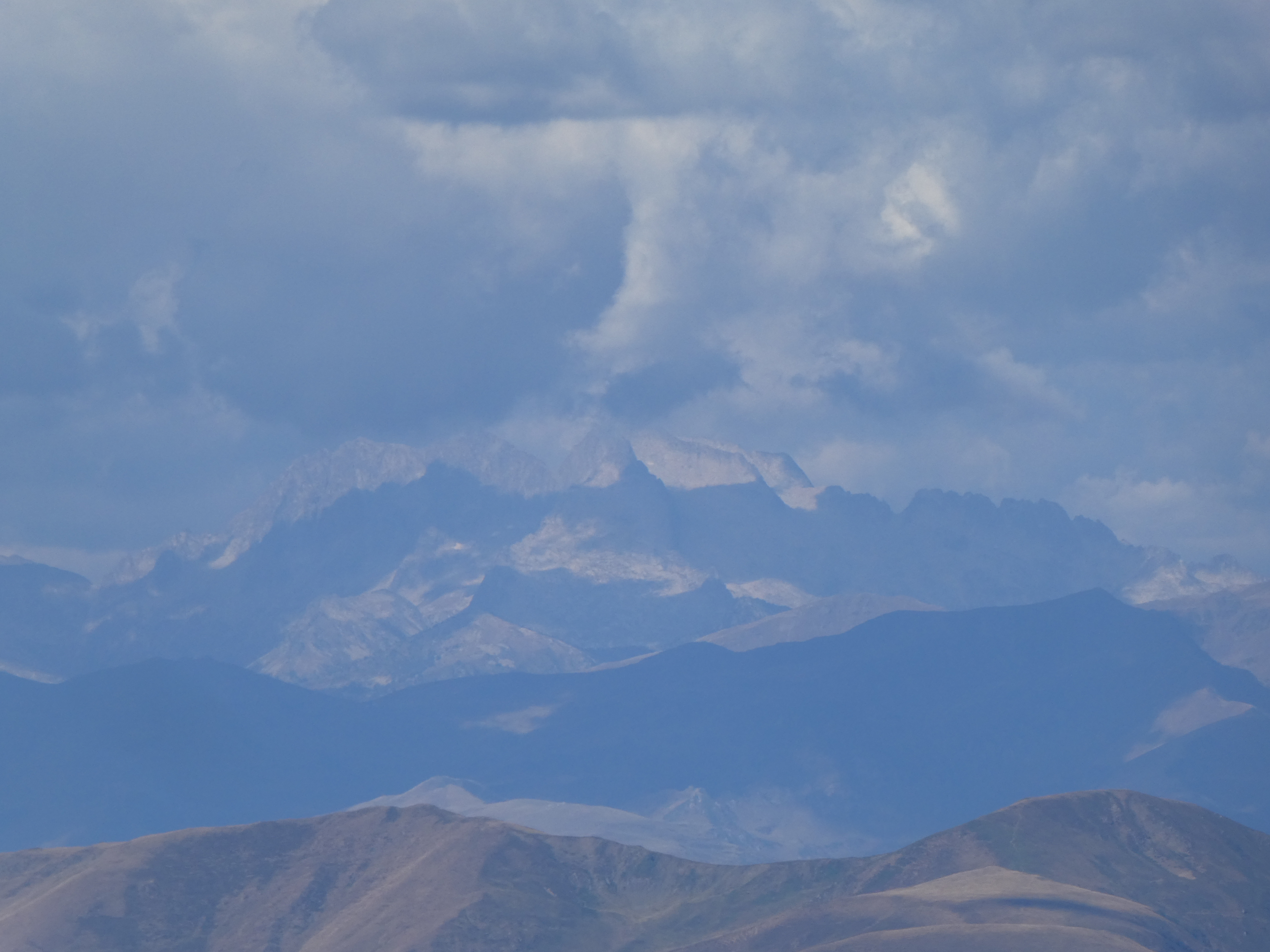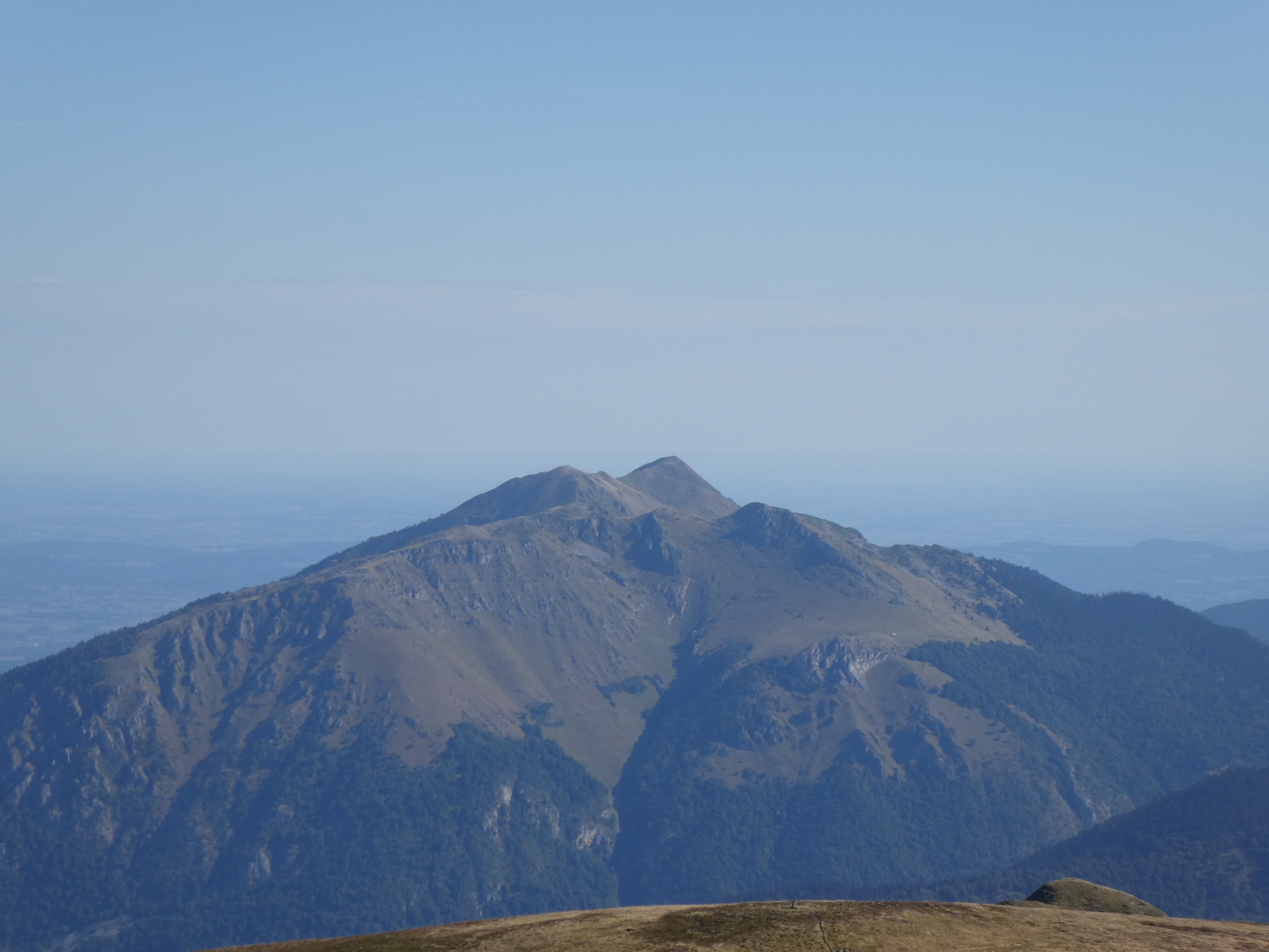 Zoom sur le Pic de Lampau (2543 m) au centre-gauche et le Pic de Pomebrunet (2569 m) au centre-droit