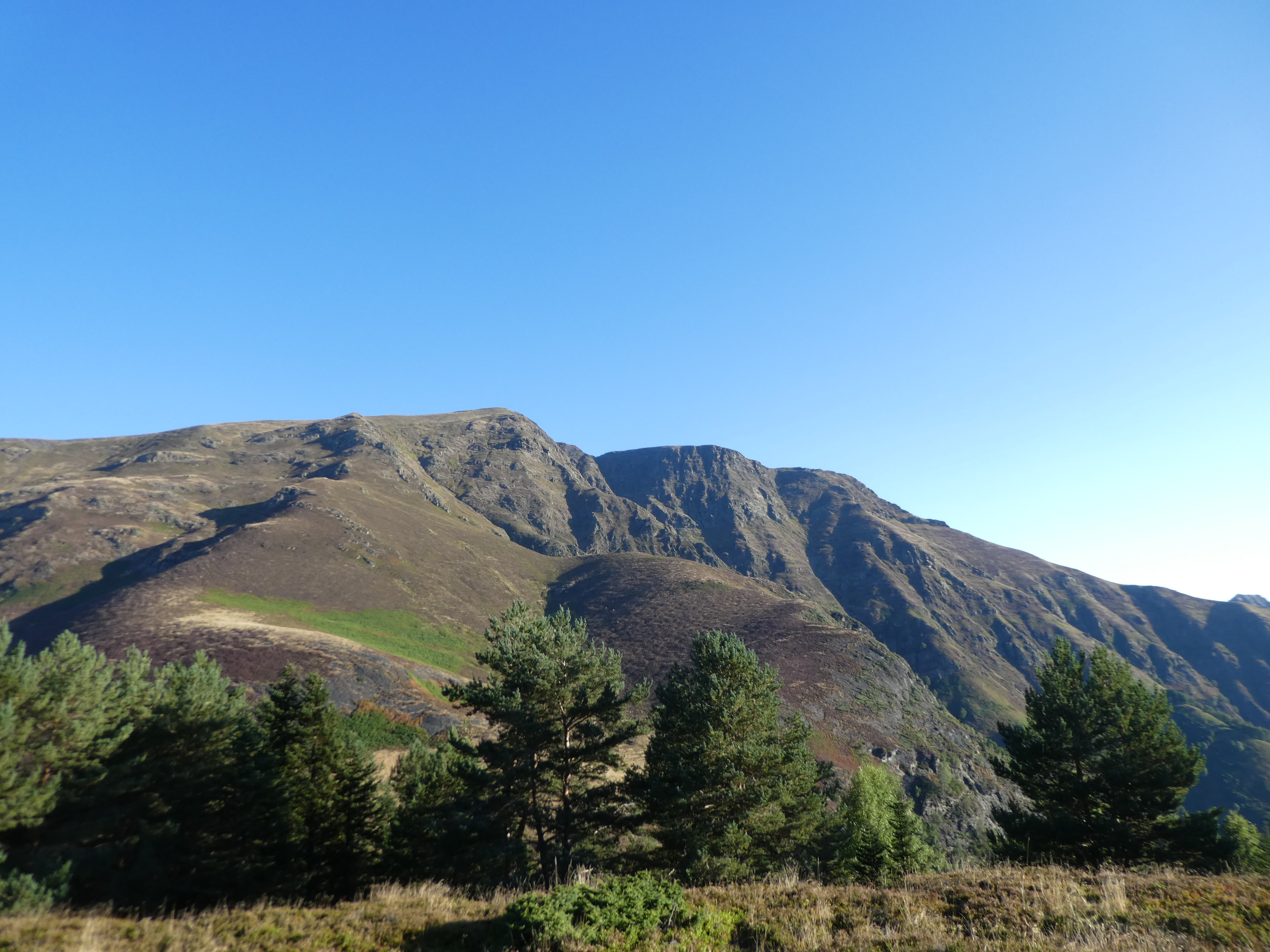 Zoom sur la Pène Haute (1451 m) à gauche et le Pic de Douly (1635 m) au centre