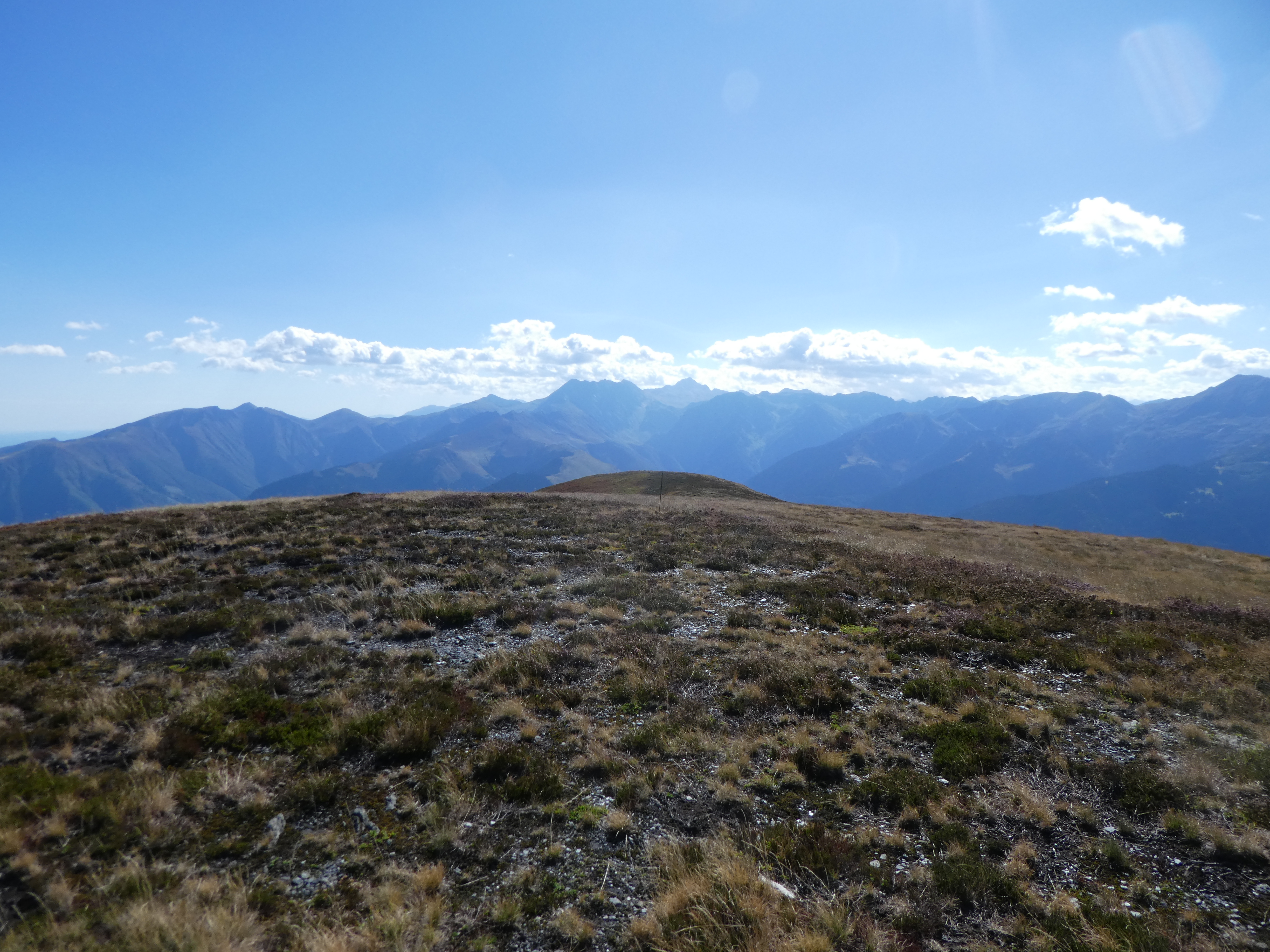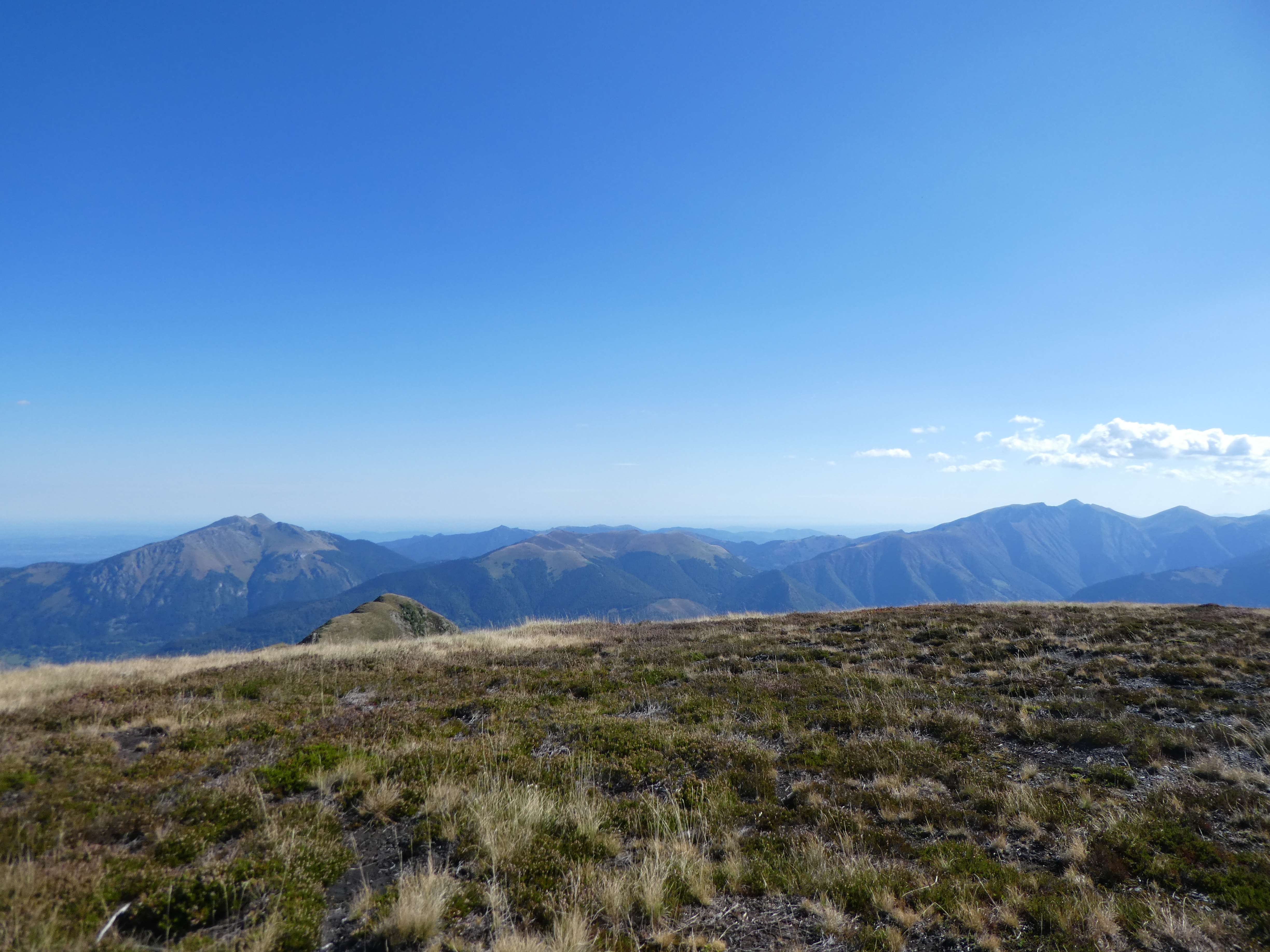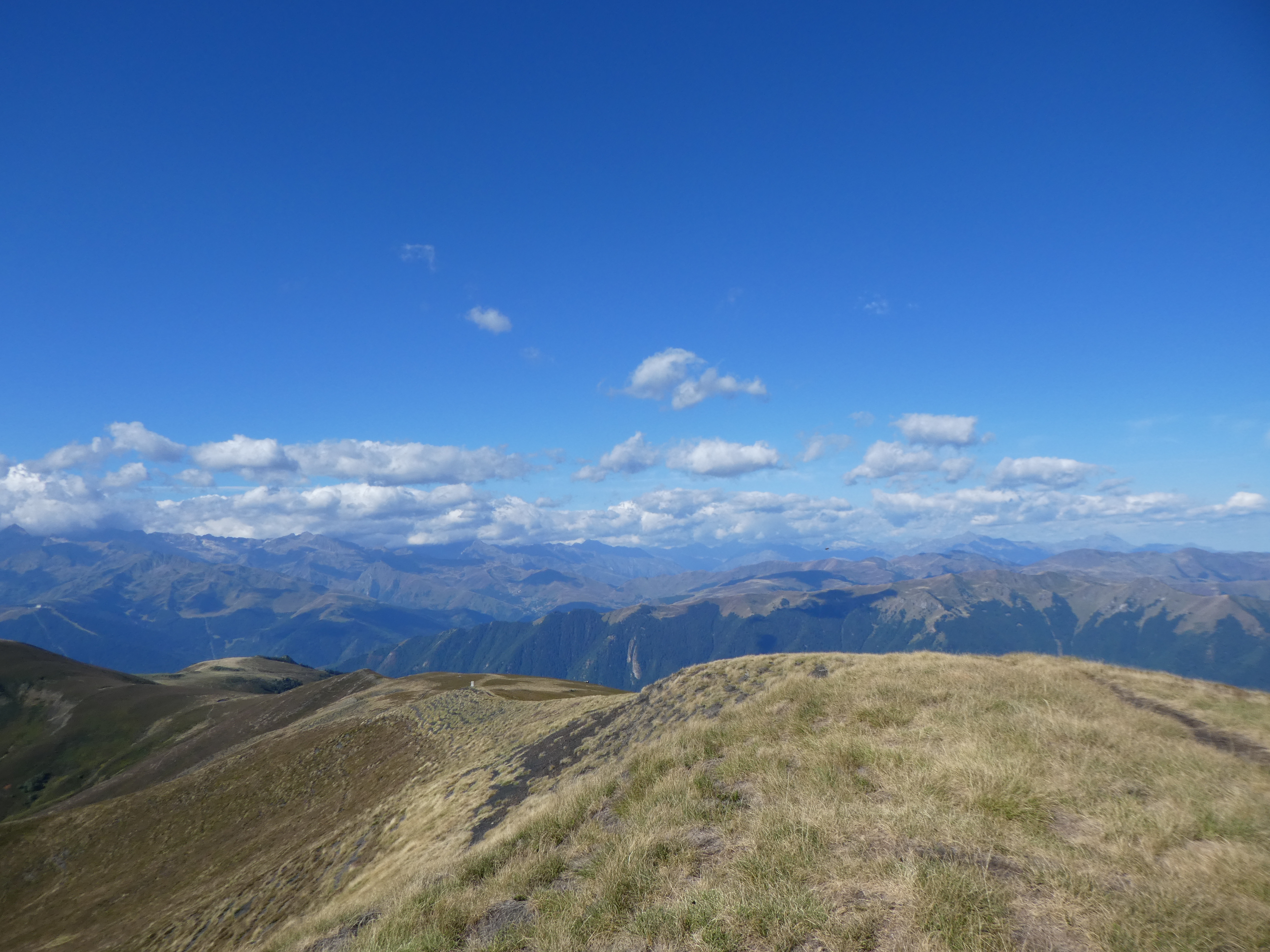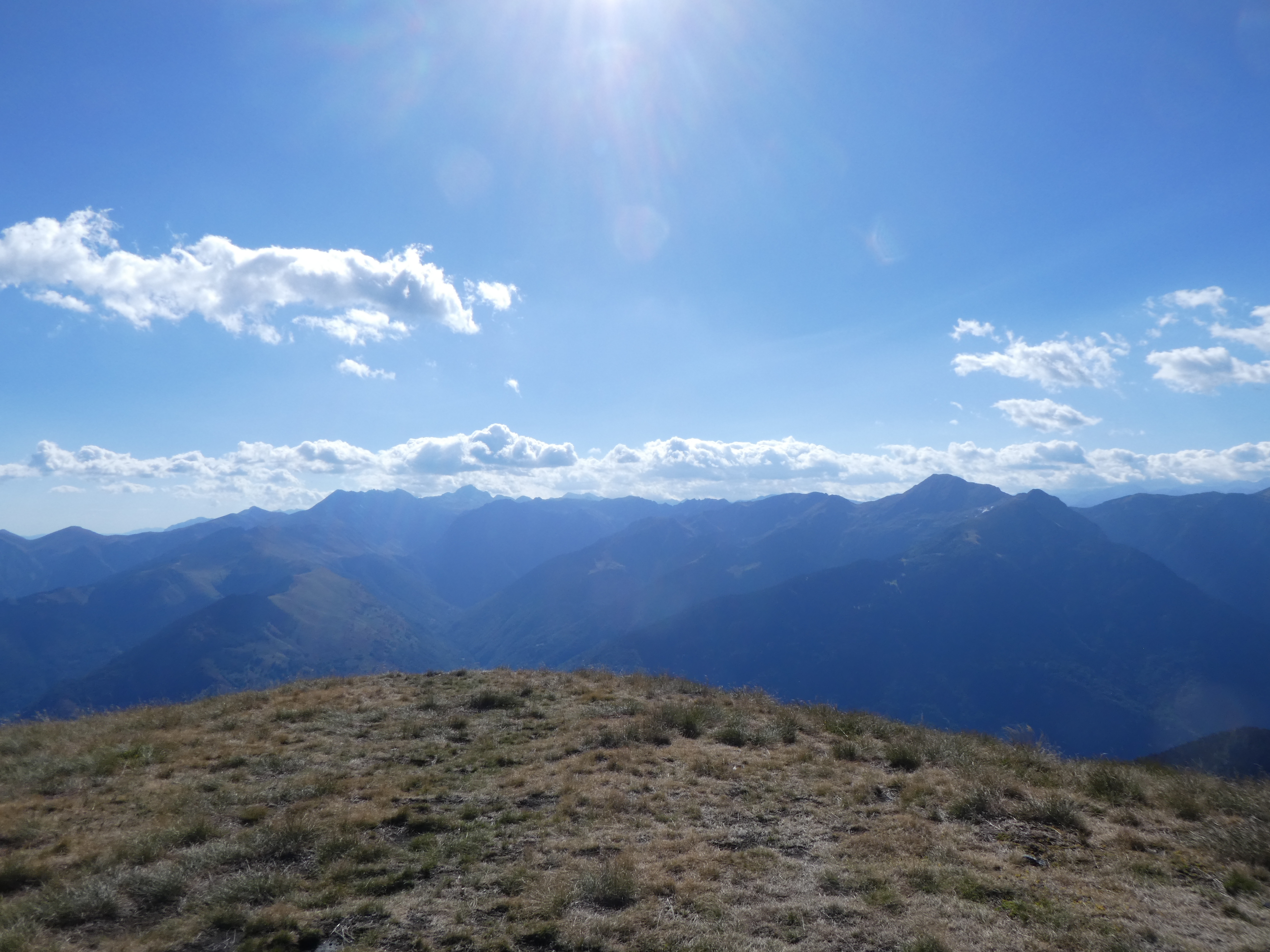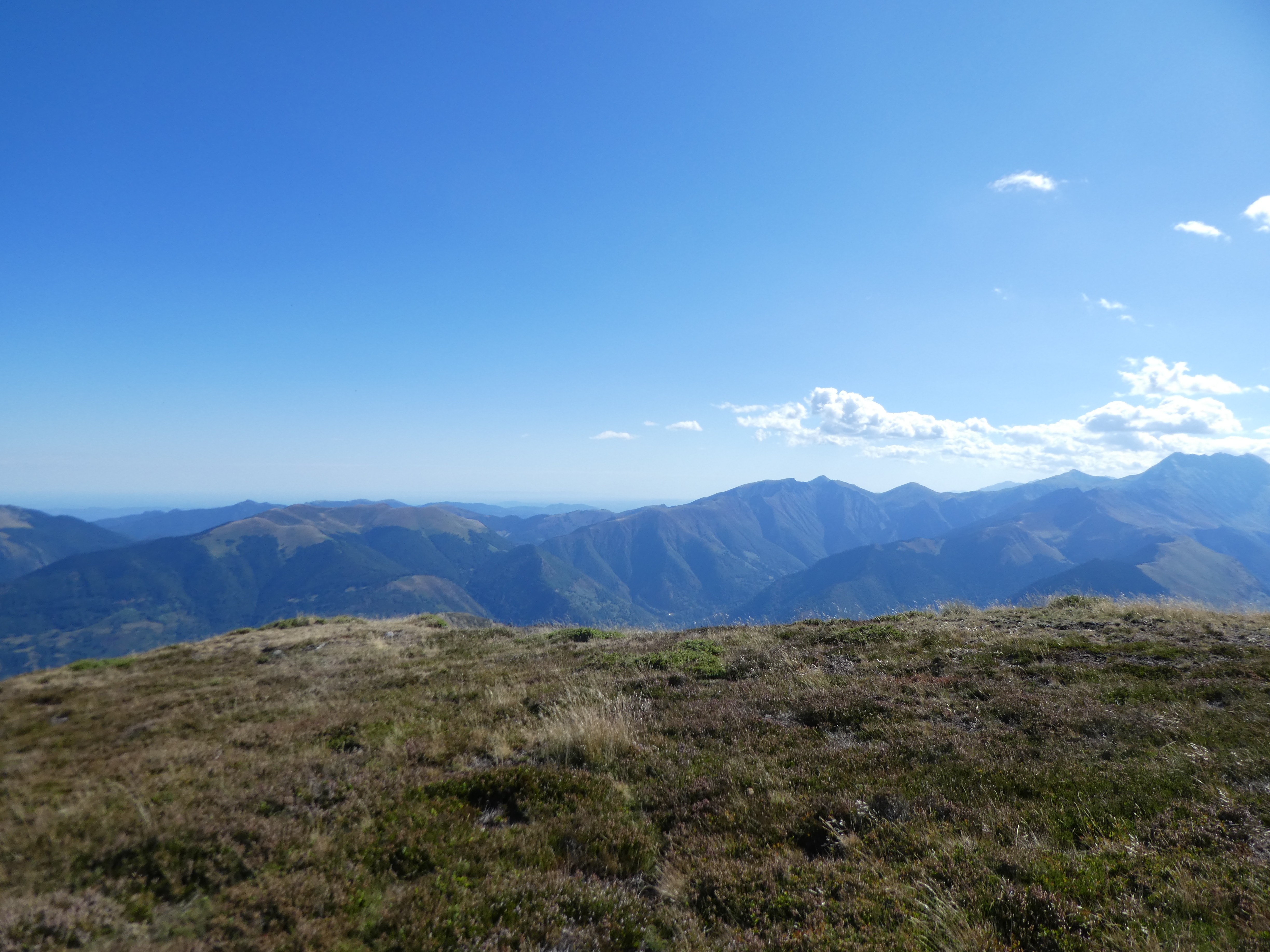Arrivée au sommet du Tuc d'Angost (2128 m) : panorama semblable à celui du Tuc deth Plan der Òme avec vue plus restreinte sur les sommets du Luchonnais