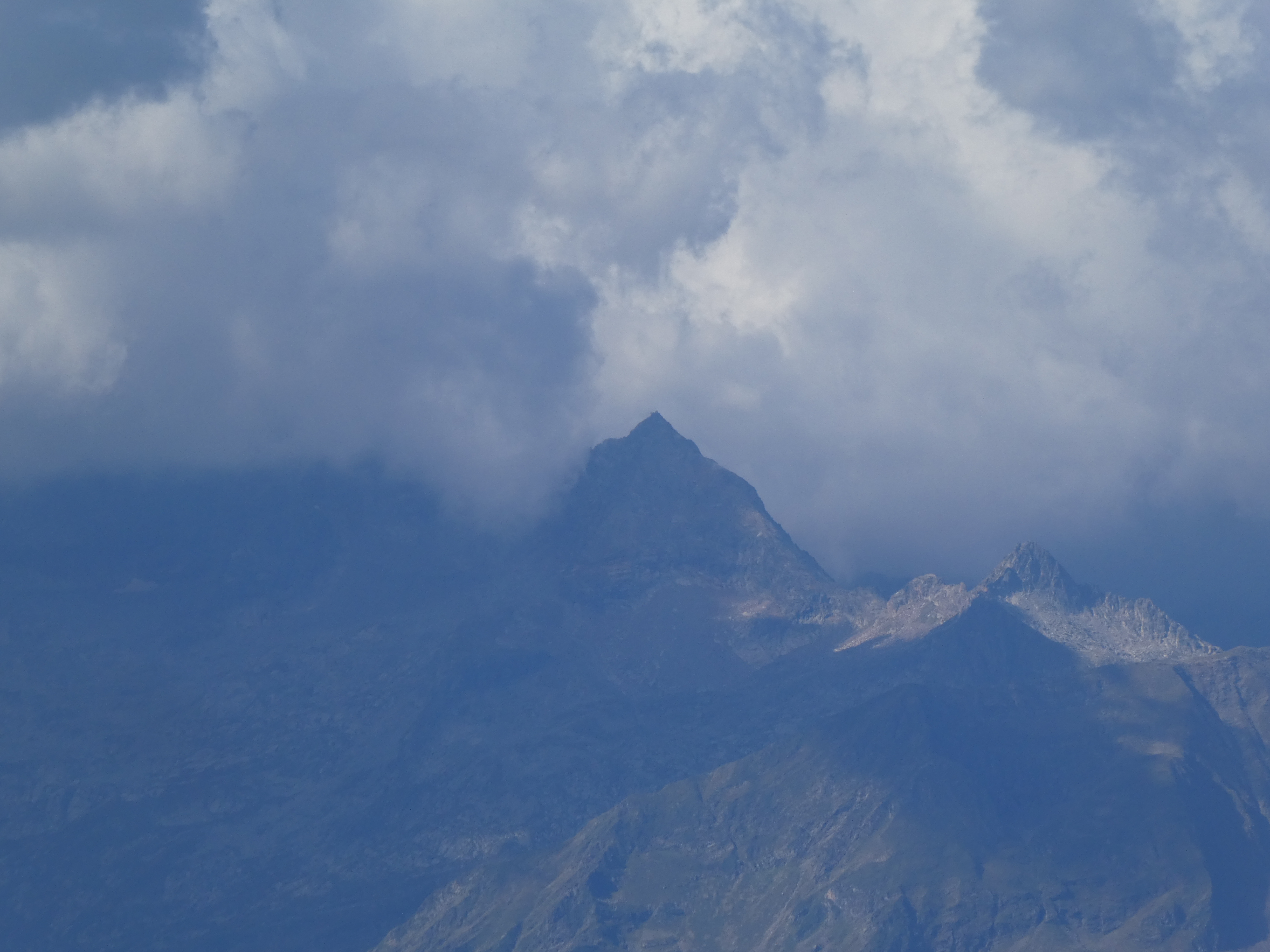 Zoom sur le Pic d'Estauas (2754 m) partiellement dans les nuages