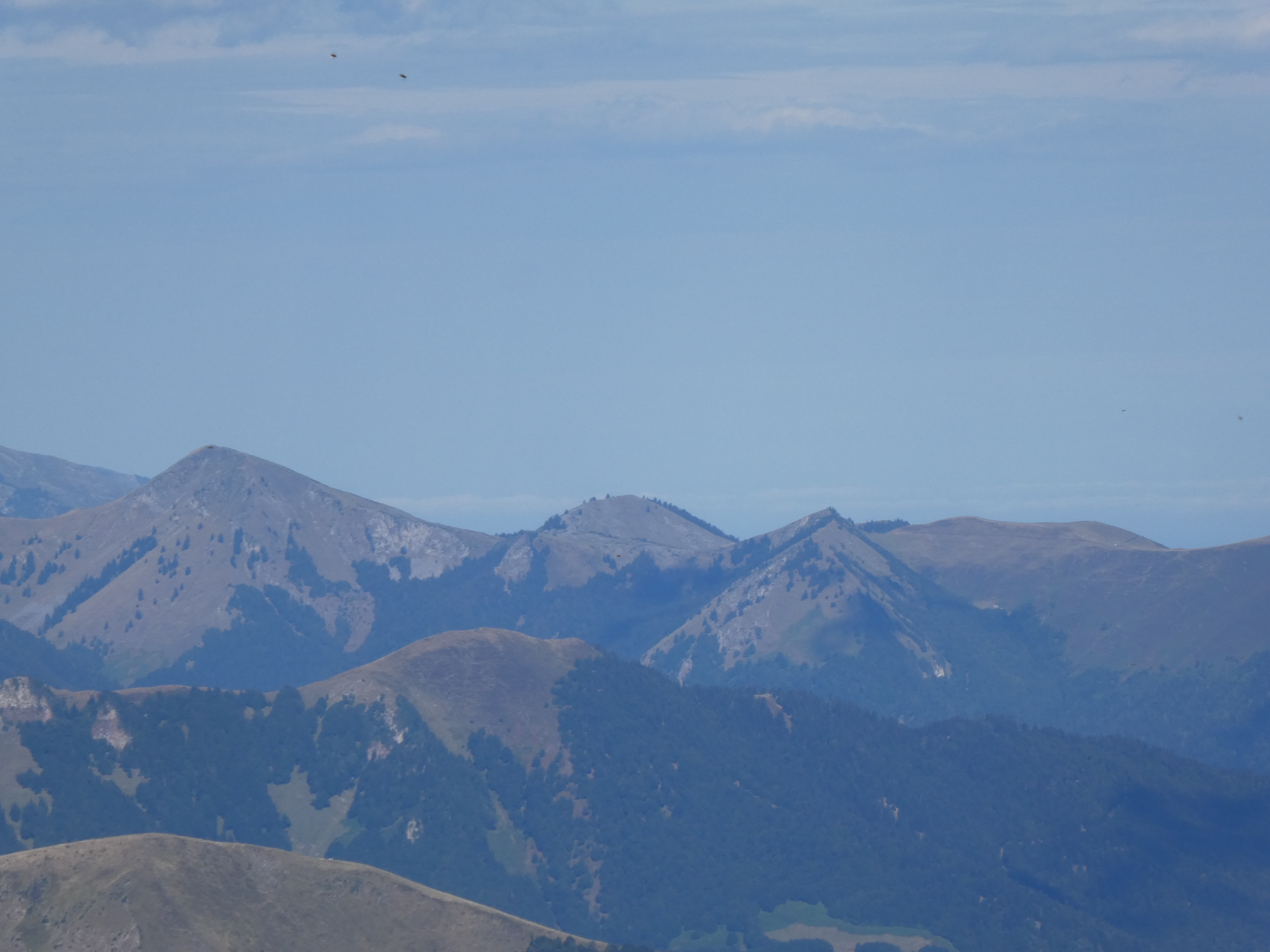 Zoom sur le Pic de Cresp (1659 m) au centre et le Pic du Gar (1785 m) à droite