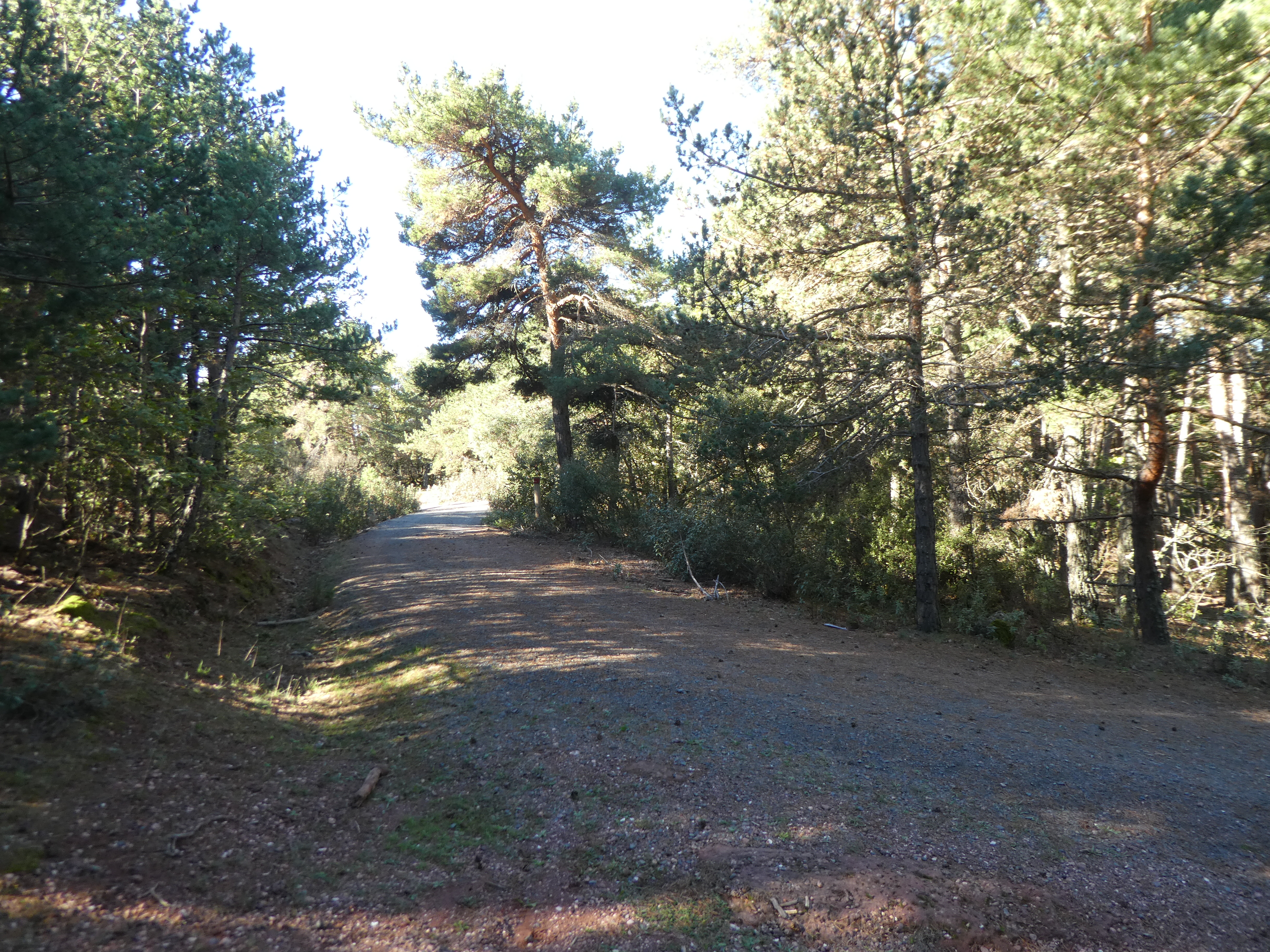A ce croisement marqué par la présence d'un panneau directionnel (800 mètres après le Coll de la Font del Dineral), suivre la piste partant sur la gauche direction Tossal de la Baltasana, balisé en rouge et blanc