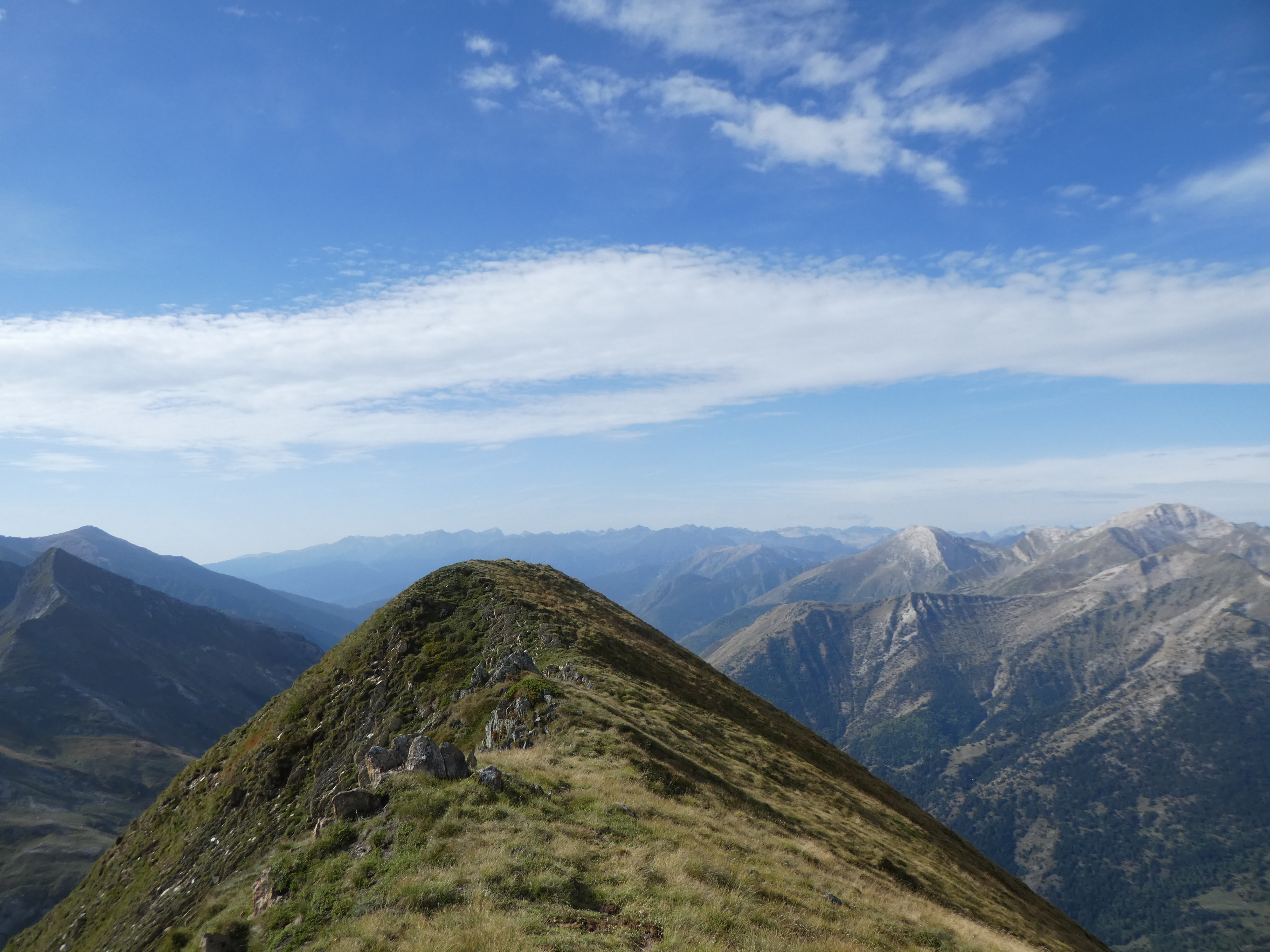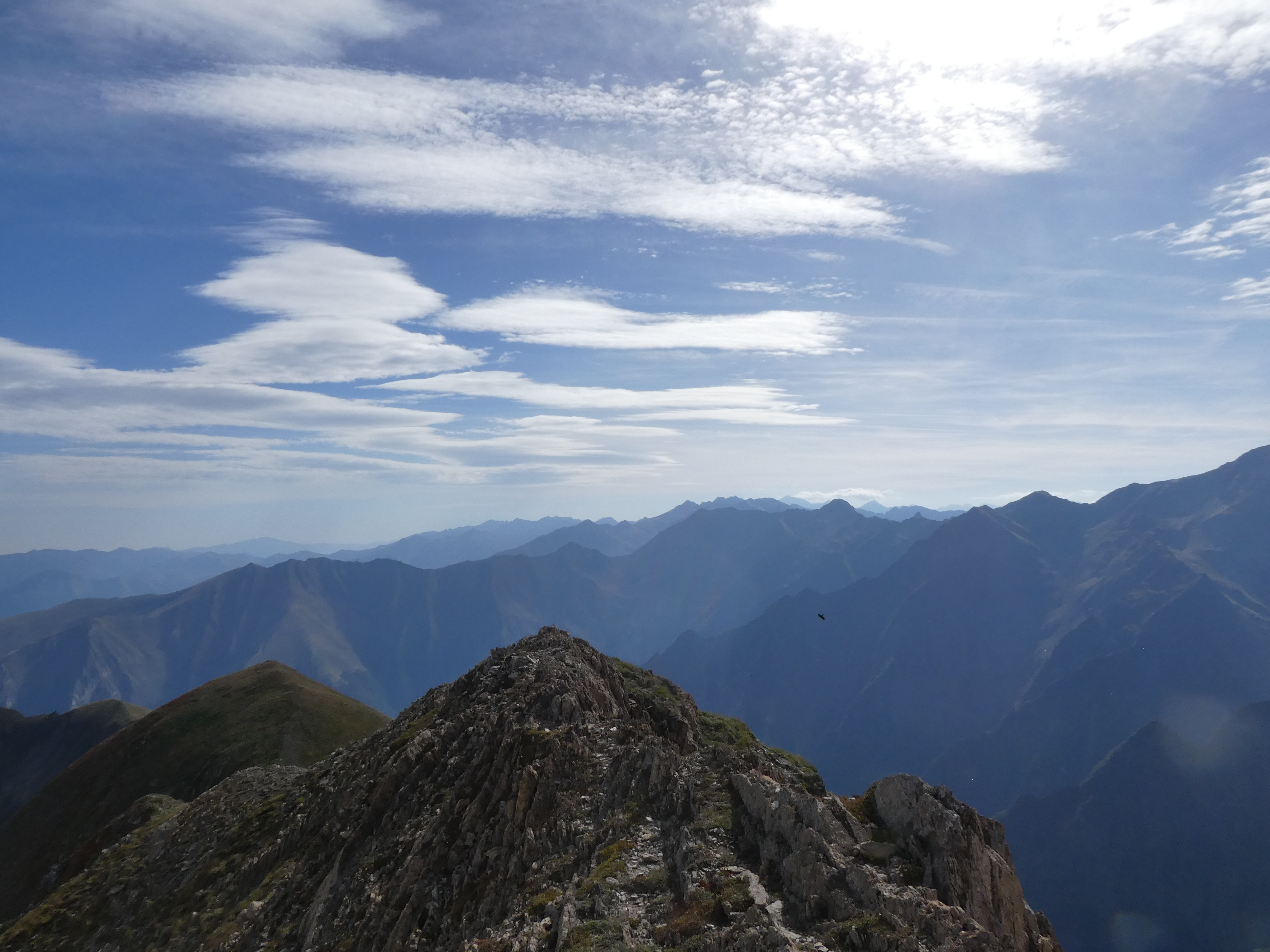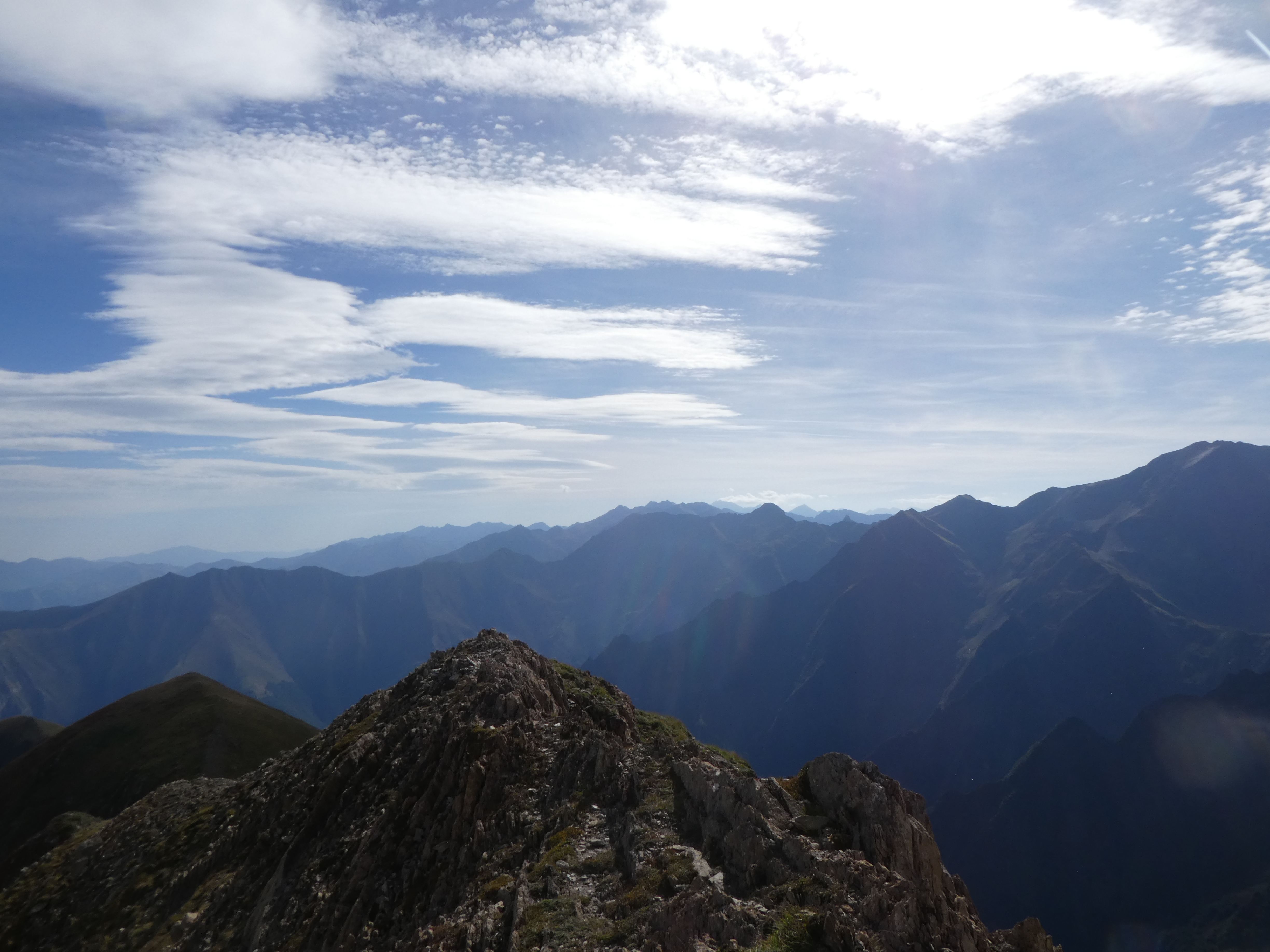 Arrivée au sommet du Lane Formente (2227 m) : beau panorama sur les sommets du Couserans et du Pallars Sobirà