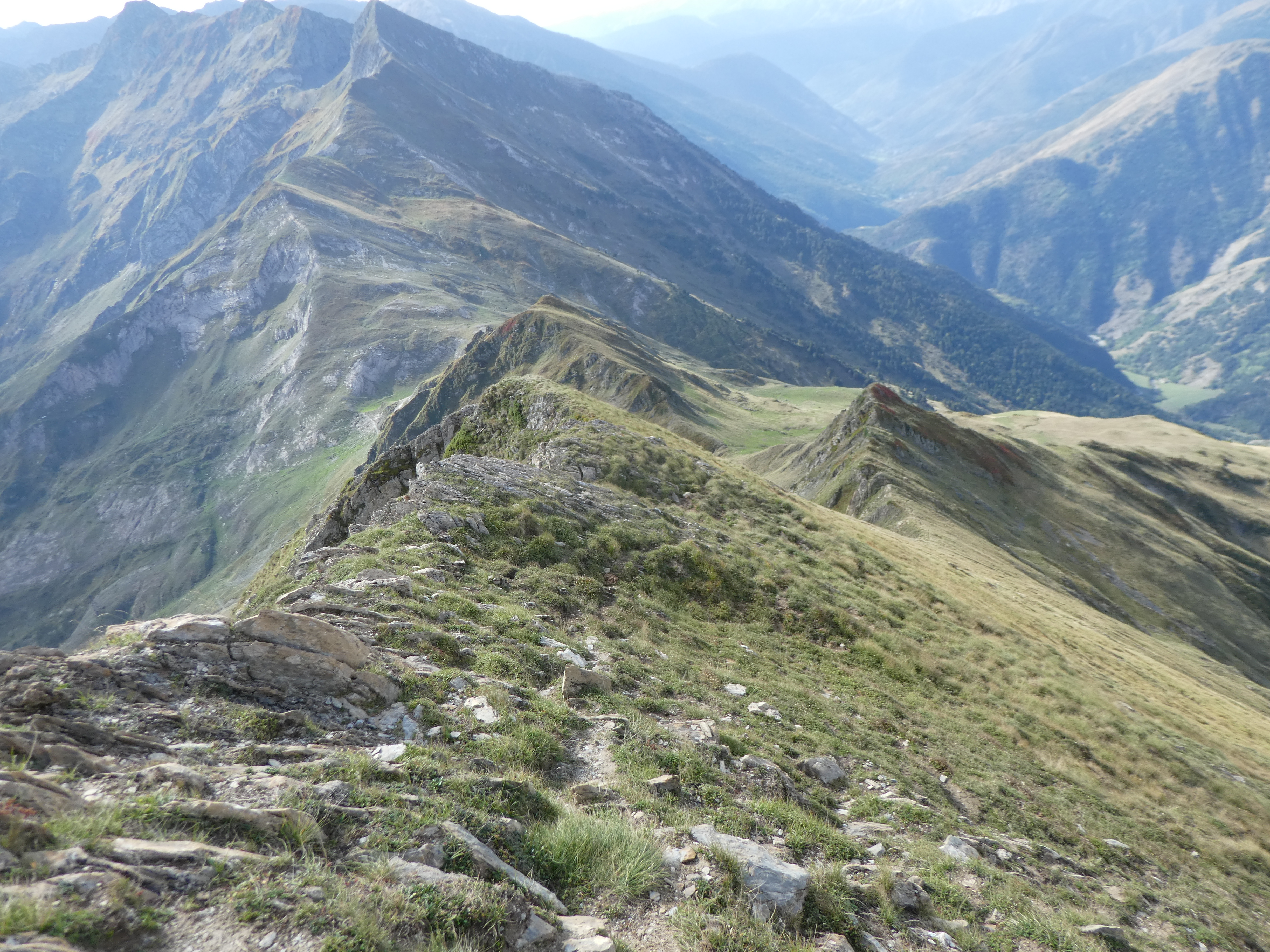 Vue sur la raide descente (assez aérienne) vers le Pic de Portabère