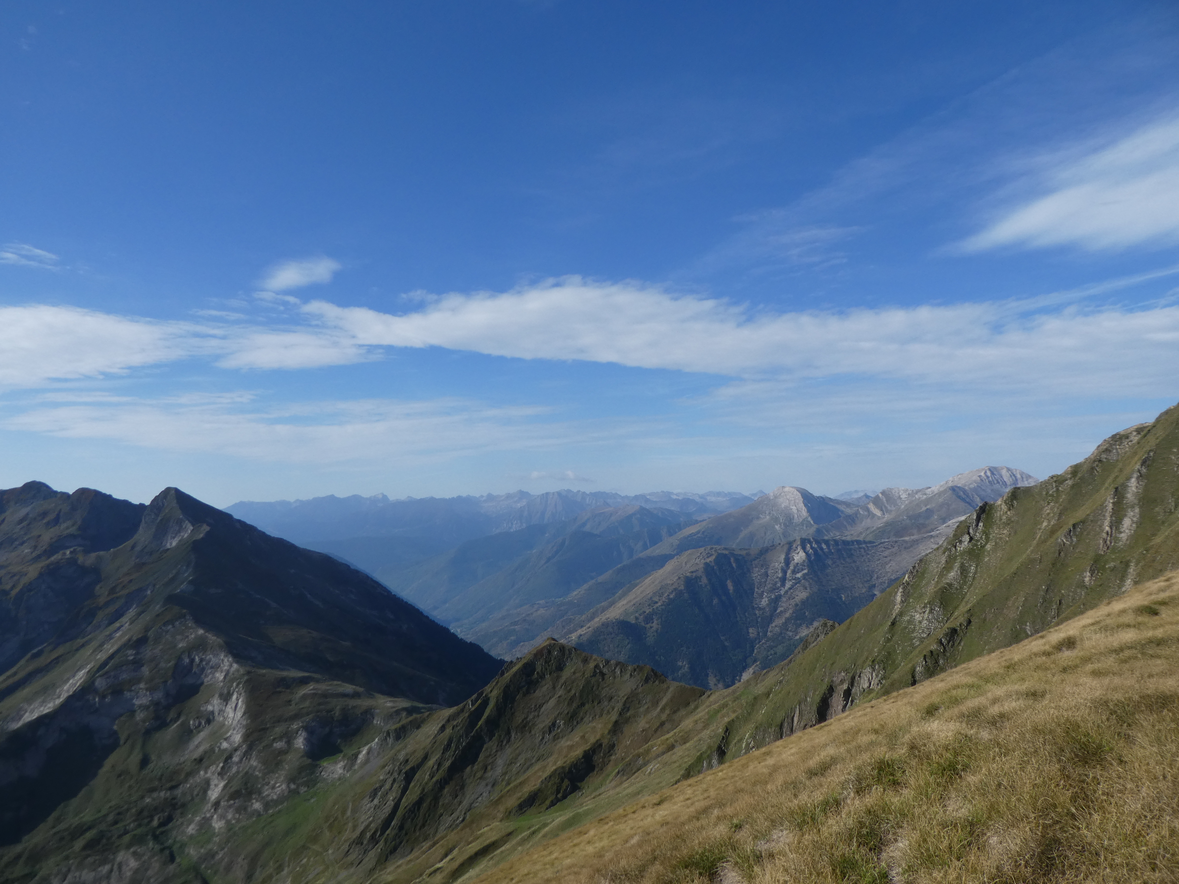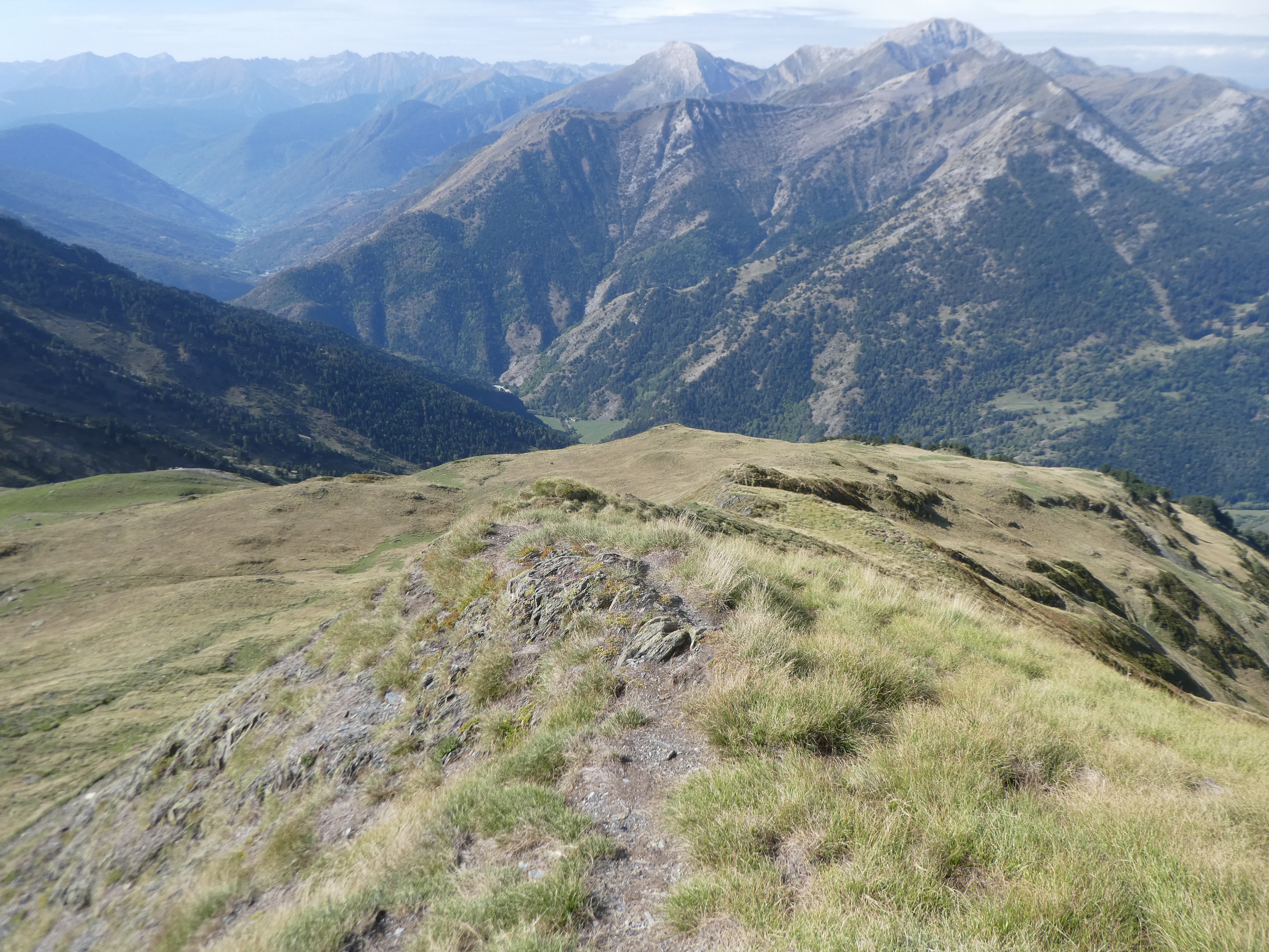 Vue arrière sur le parcours de crête effectué depuis le Lane Formente