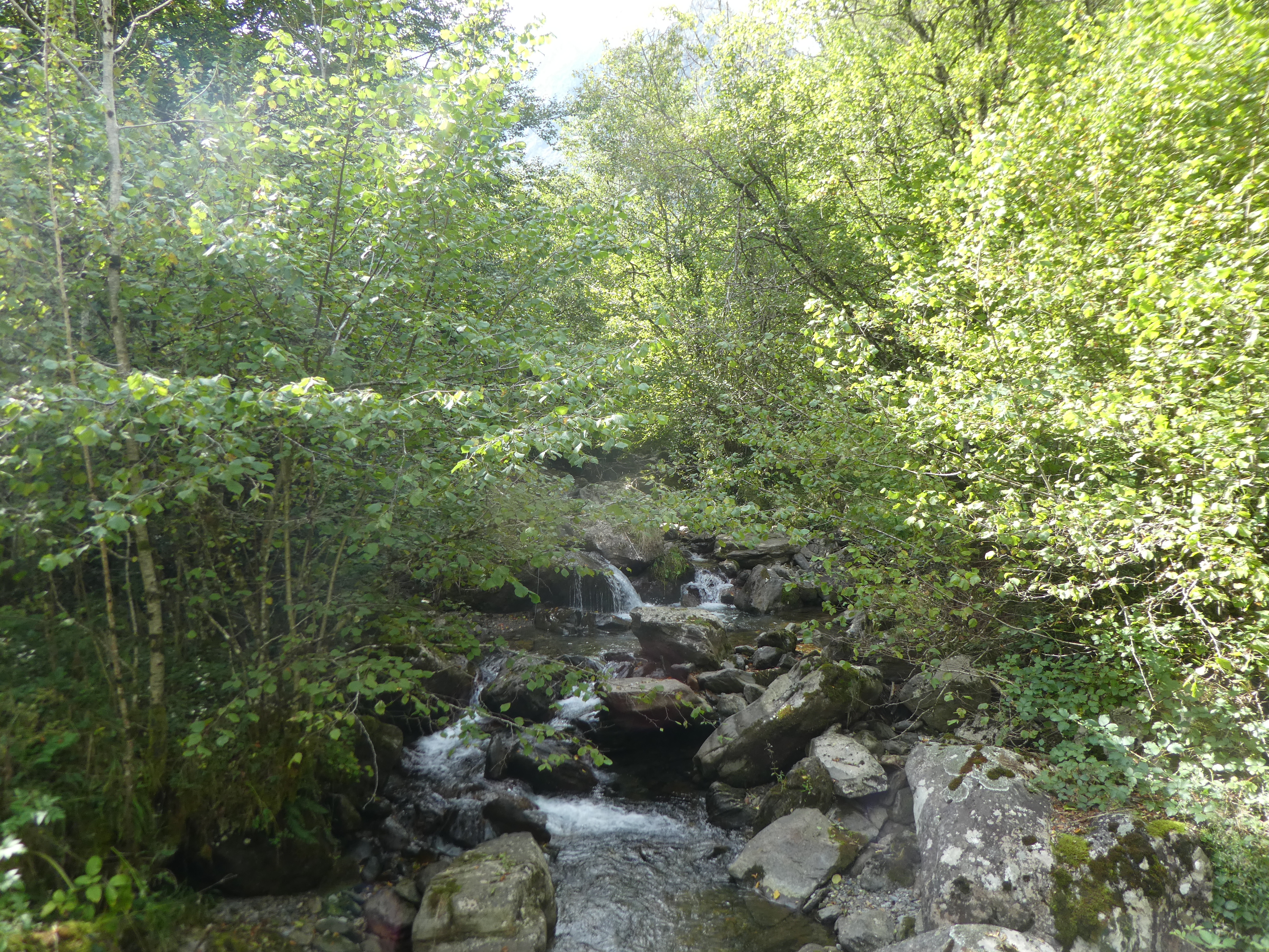 La Plagne (1005 m) : suivre le chemin partant sur la droite et traversant le Salat direction Granges d'Espis, balisé en jaune dorénavant