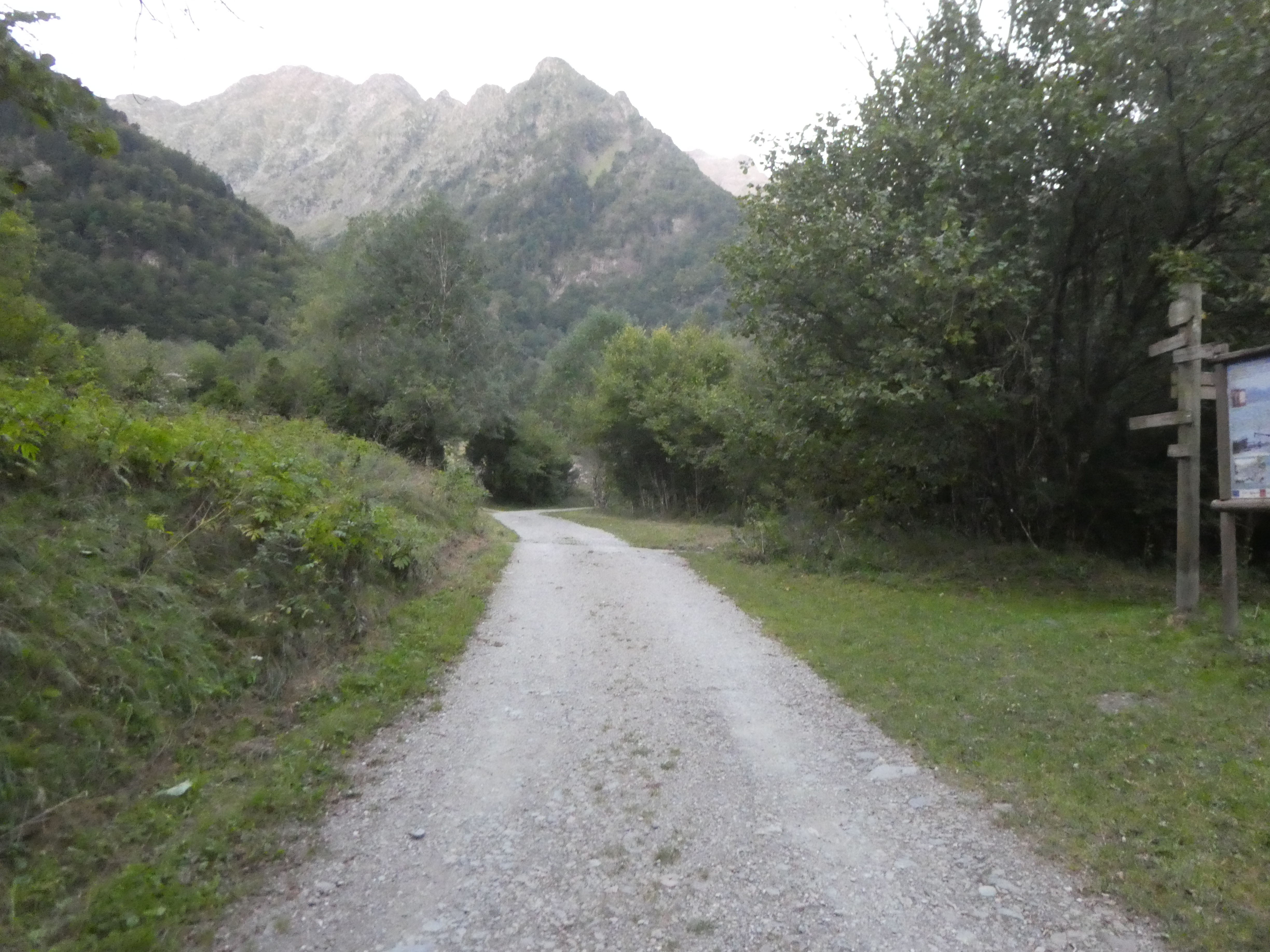 La Plagne (1005 m) : suivre le chemin partant sur la gauche direction Piste Pastorale du Port de Salau, balisé sporadiquement en rouge et blanc dorénavant