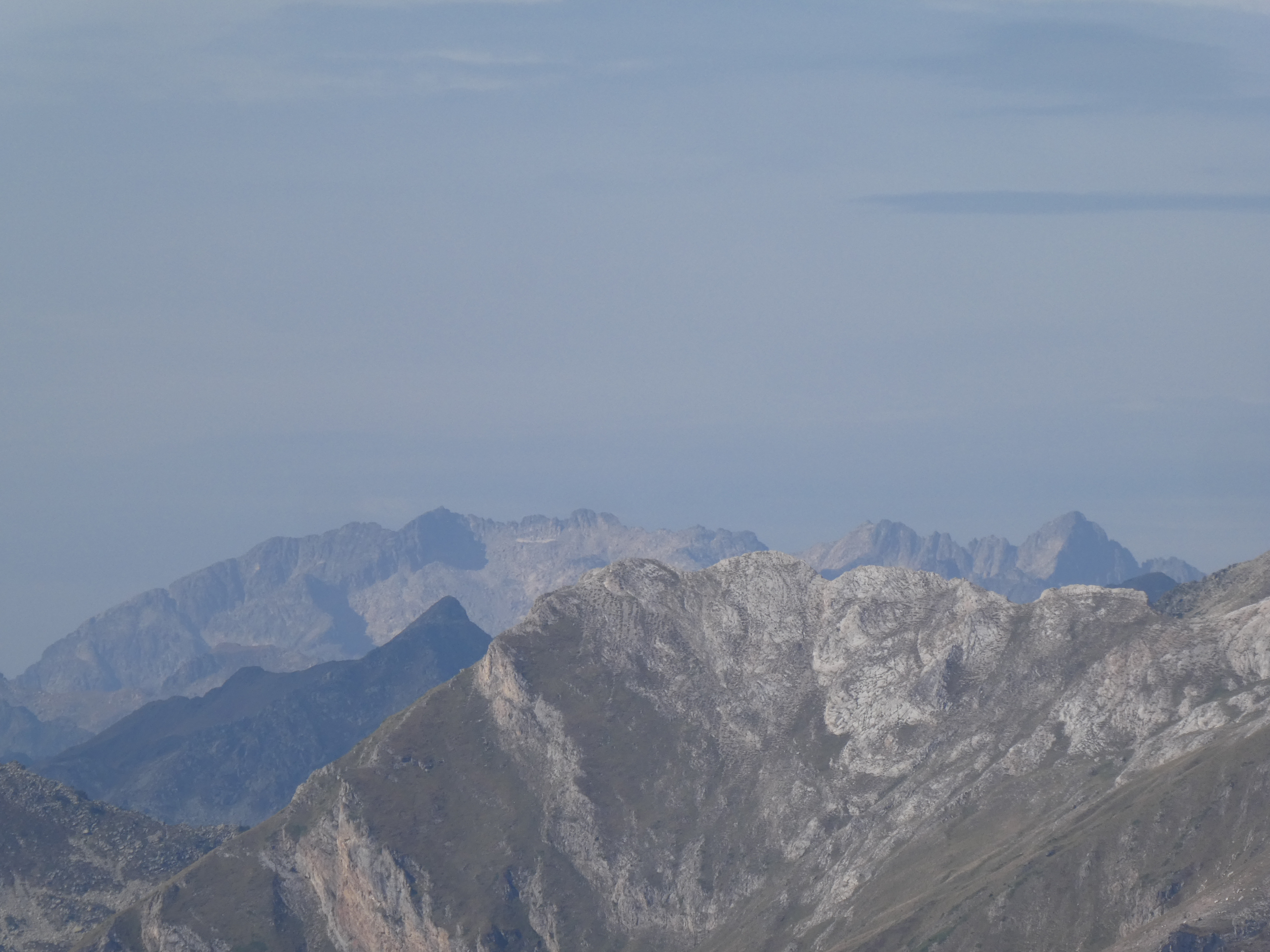 Zoom sur le Muntanyó (2781 m) et le Montorroio (2861 m) à gauche, et le Pui de Linya (2869 m) à droite