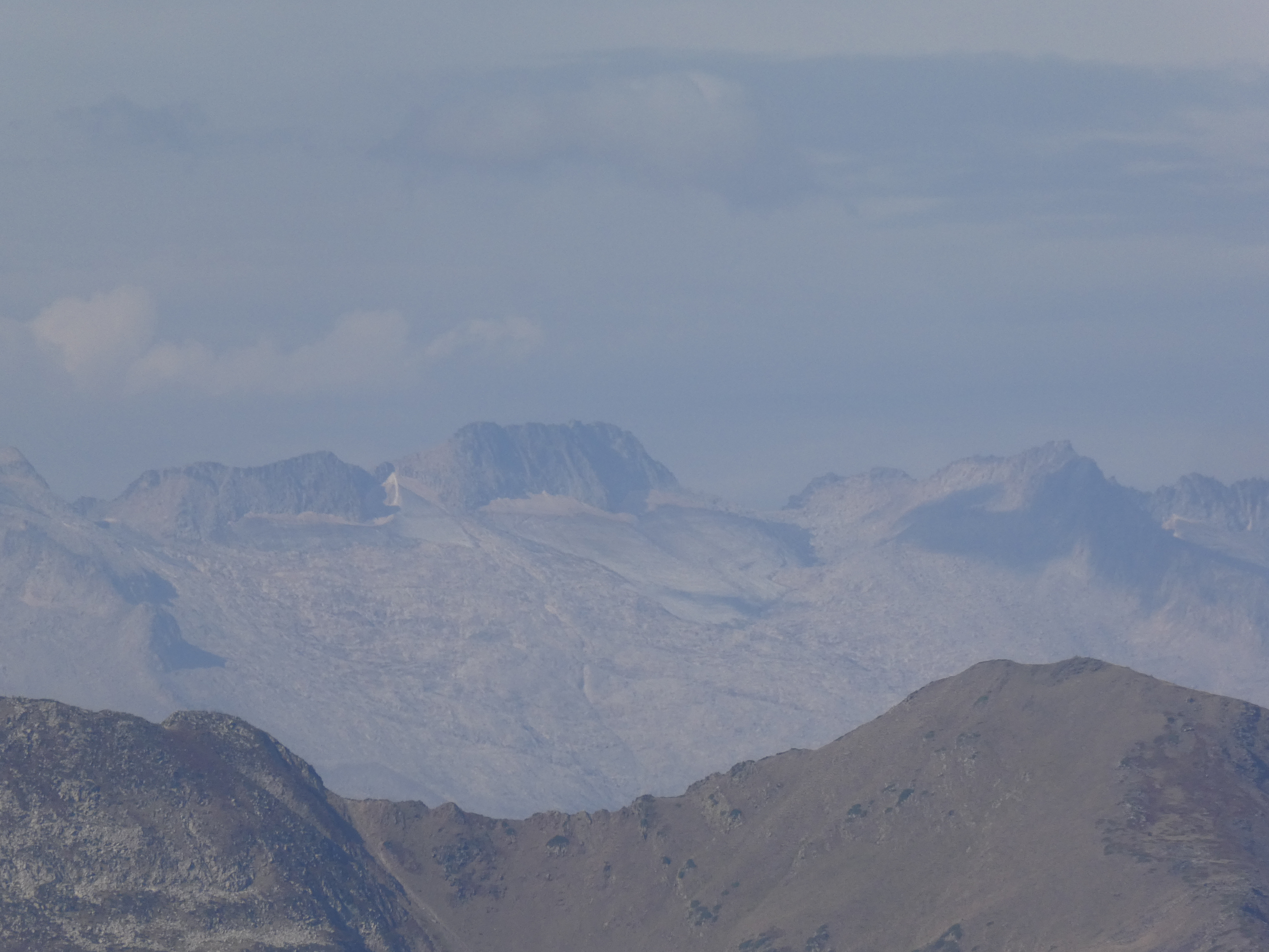 Zoom sur le Pic de Barlonguère (2802 m) au centre-gauche et le Pic des Trois Comtes (2694 m) au centre-droit