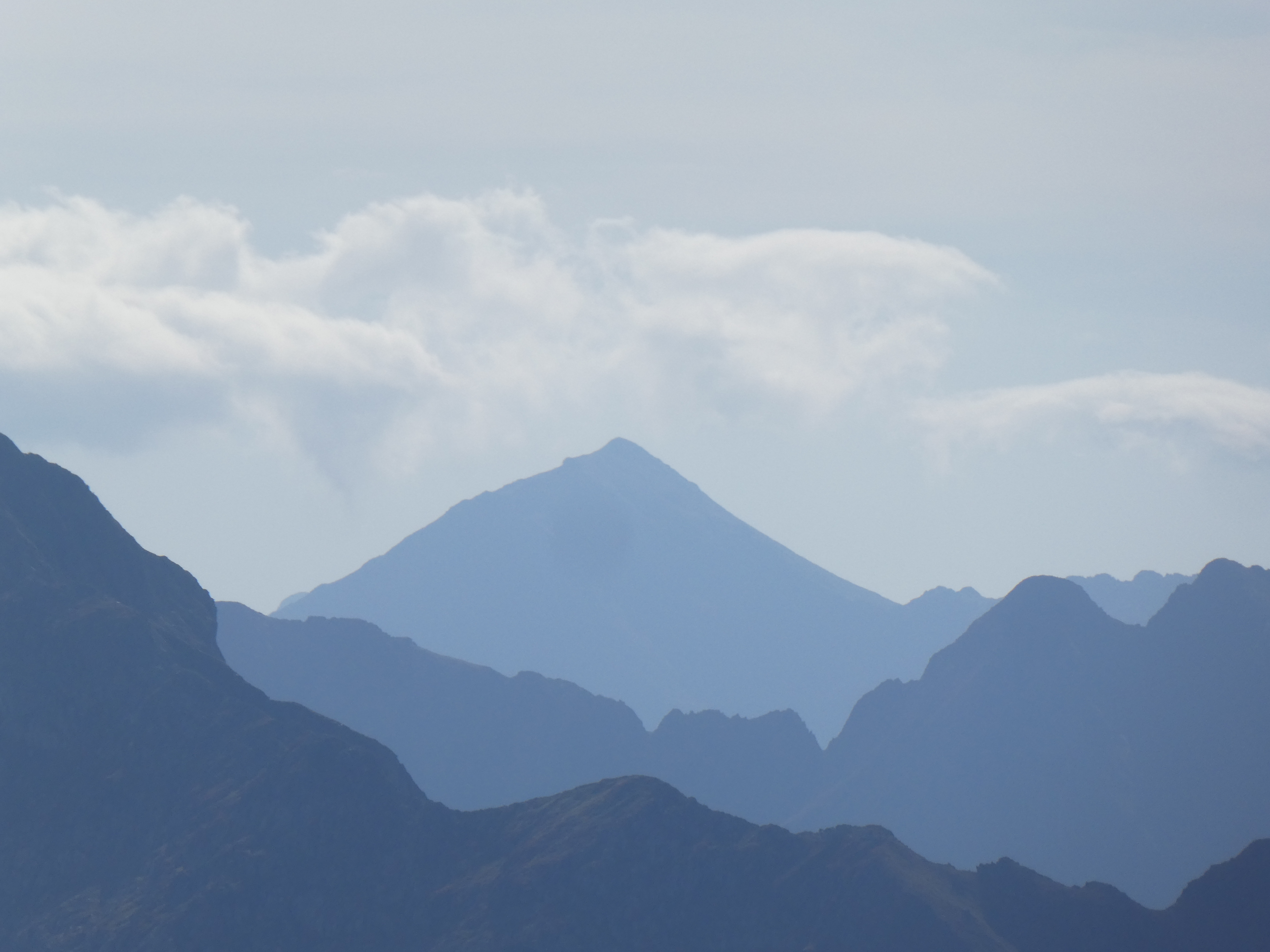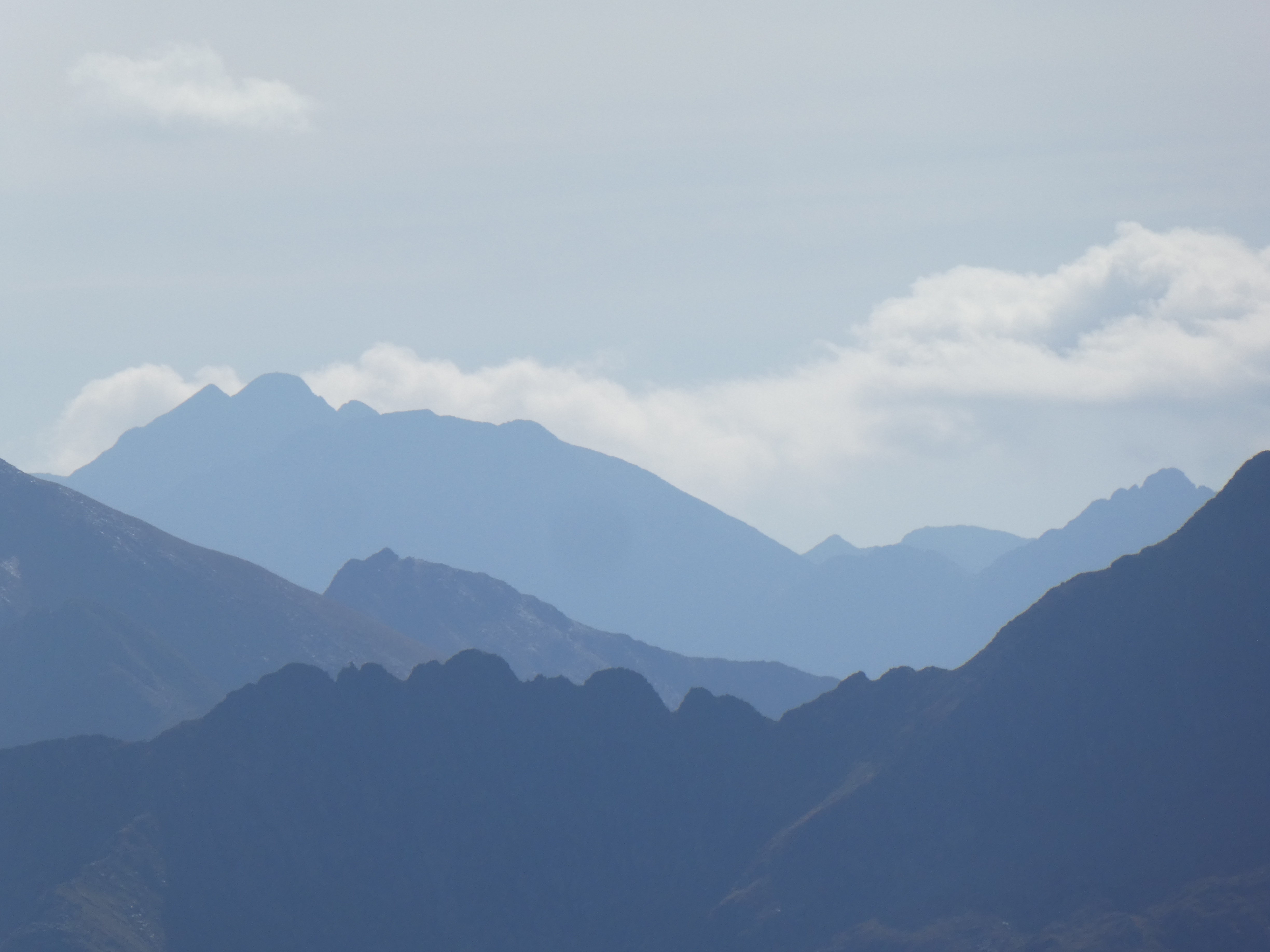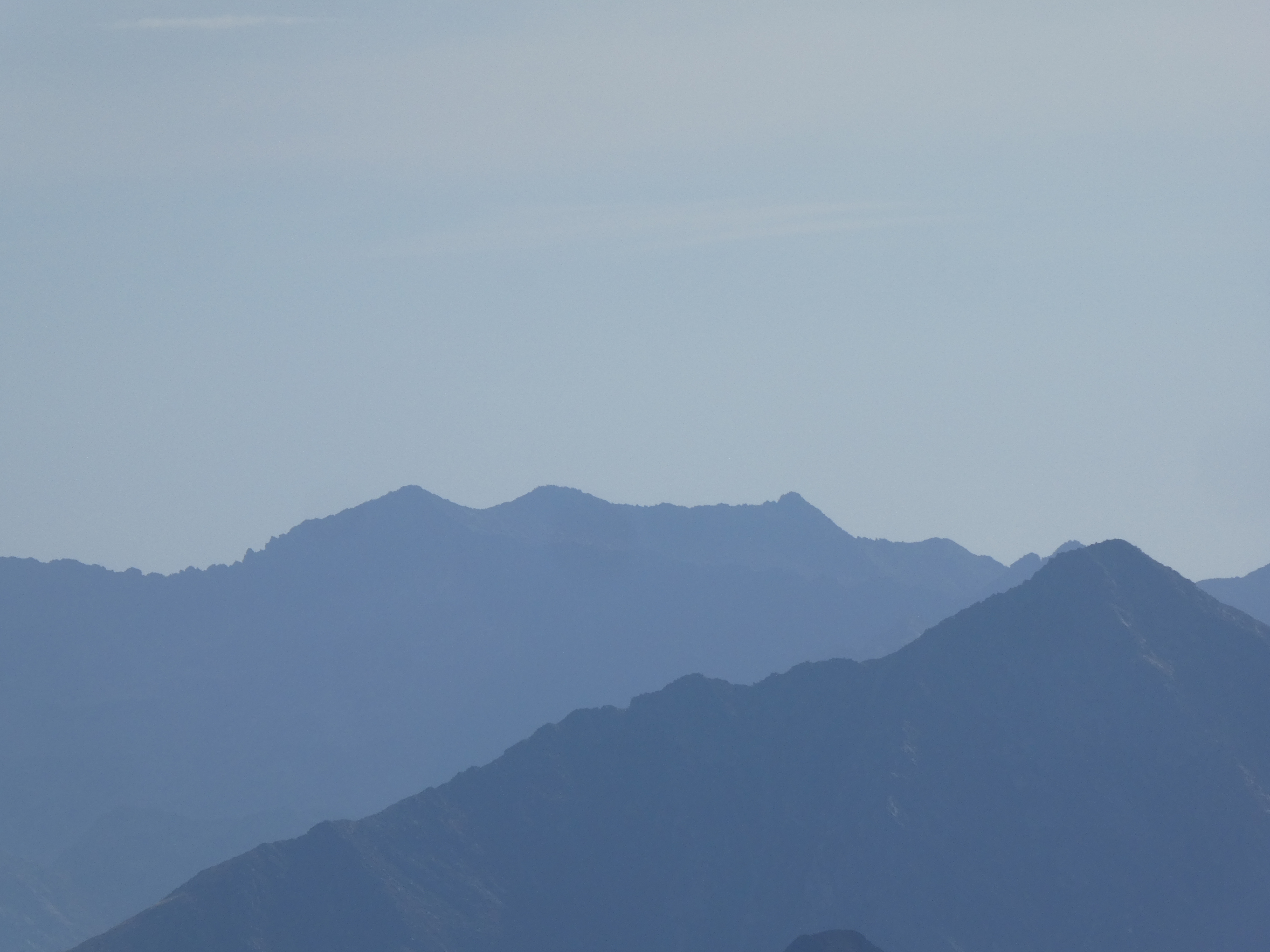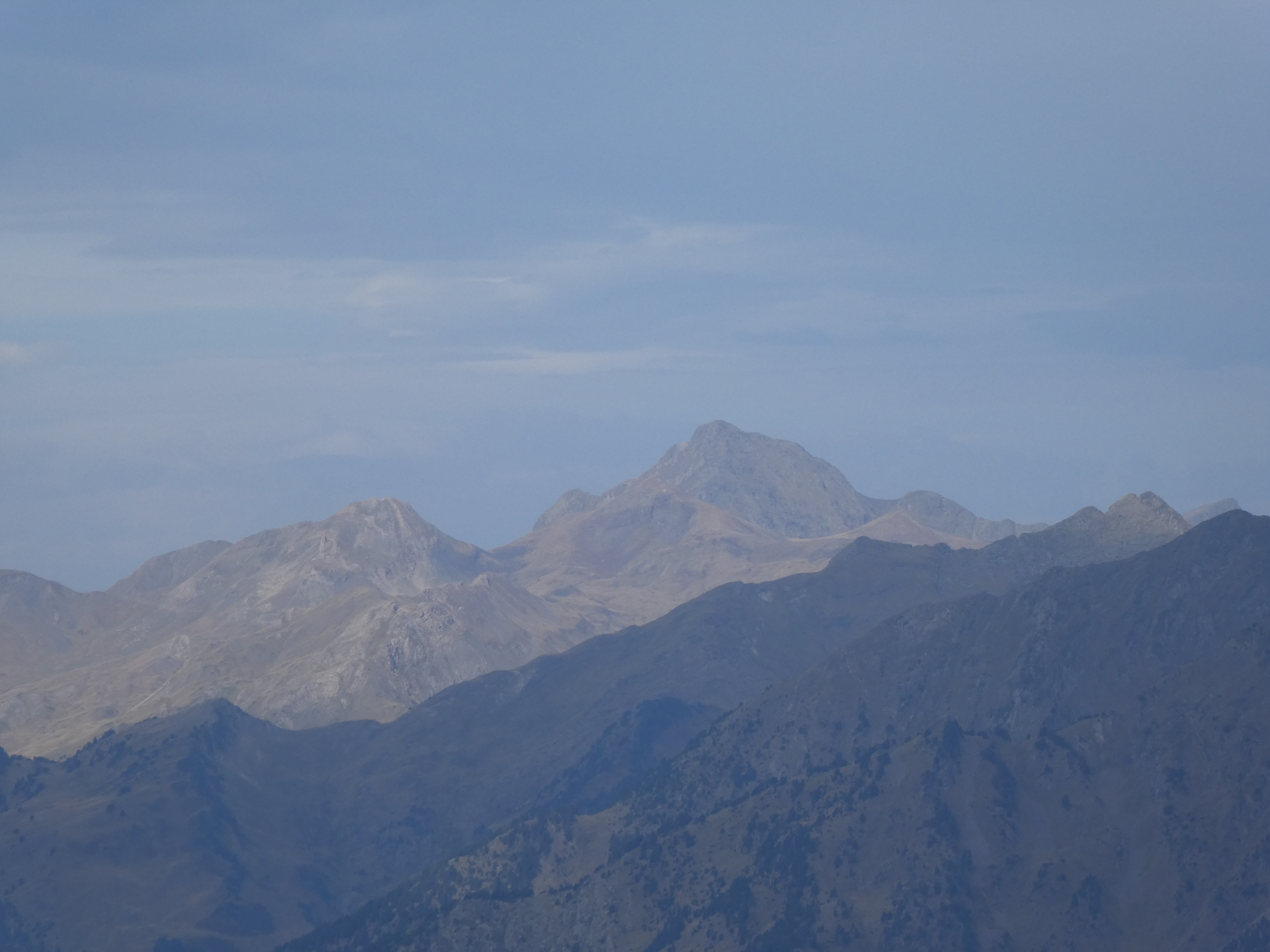 Zoom sur le Mont du Petit Valier (2736 m) au centre-gauche et le Mont Valier (2838 m) au centre-droit