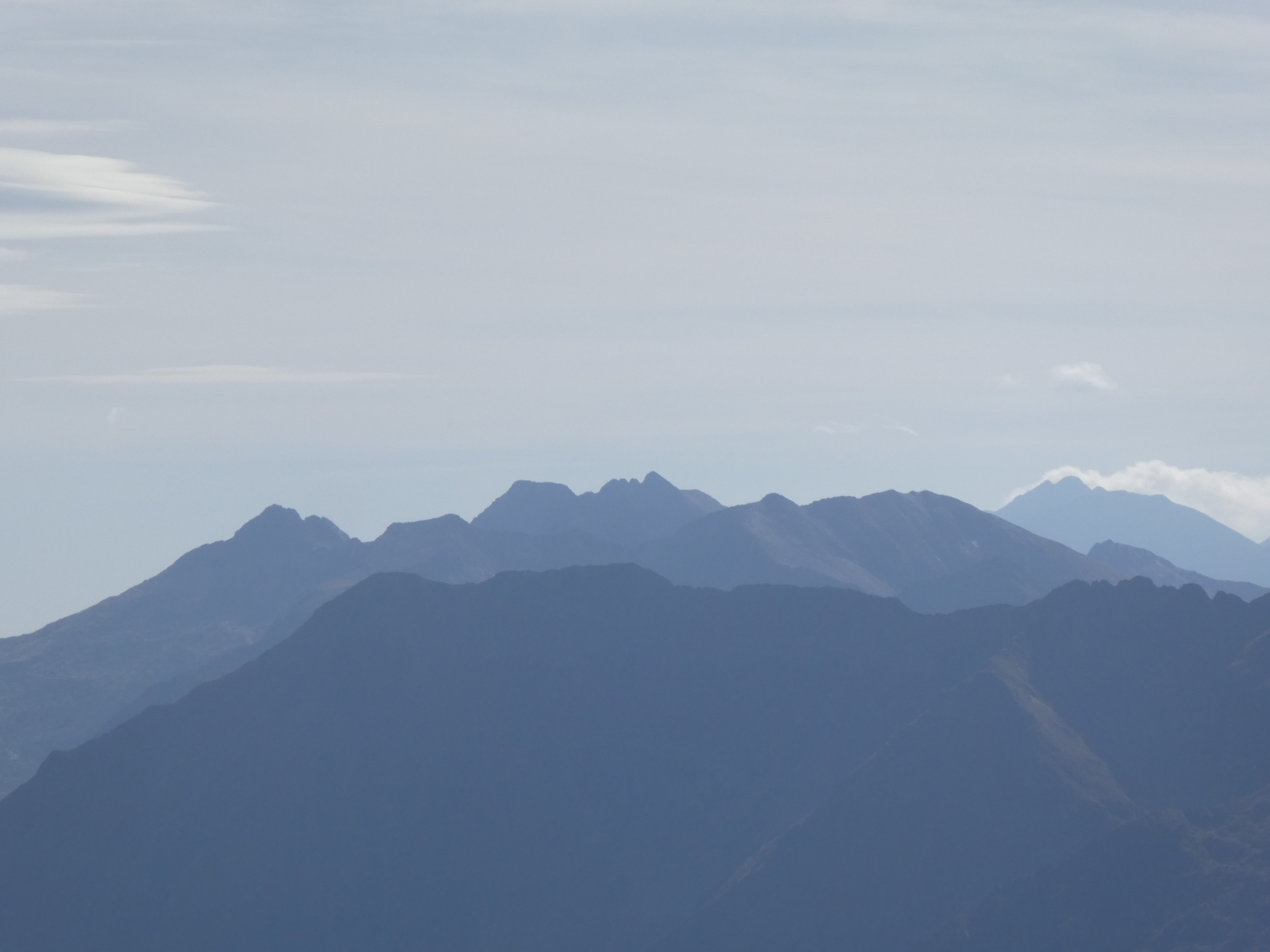 Zoom sur le Pic de Calamane (1363 m) au centre-gauche et le Tuc de la Courate (1415 m) au centre-droit