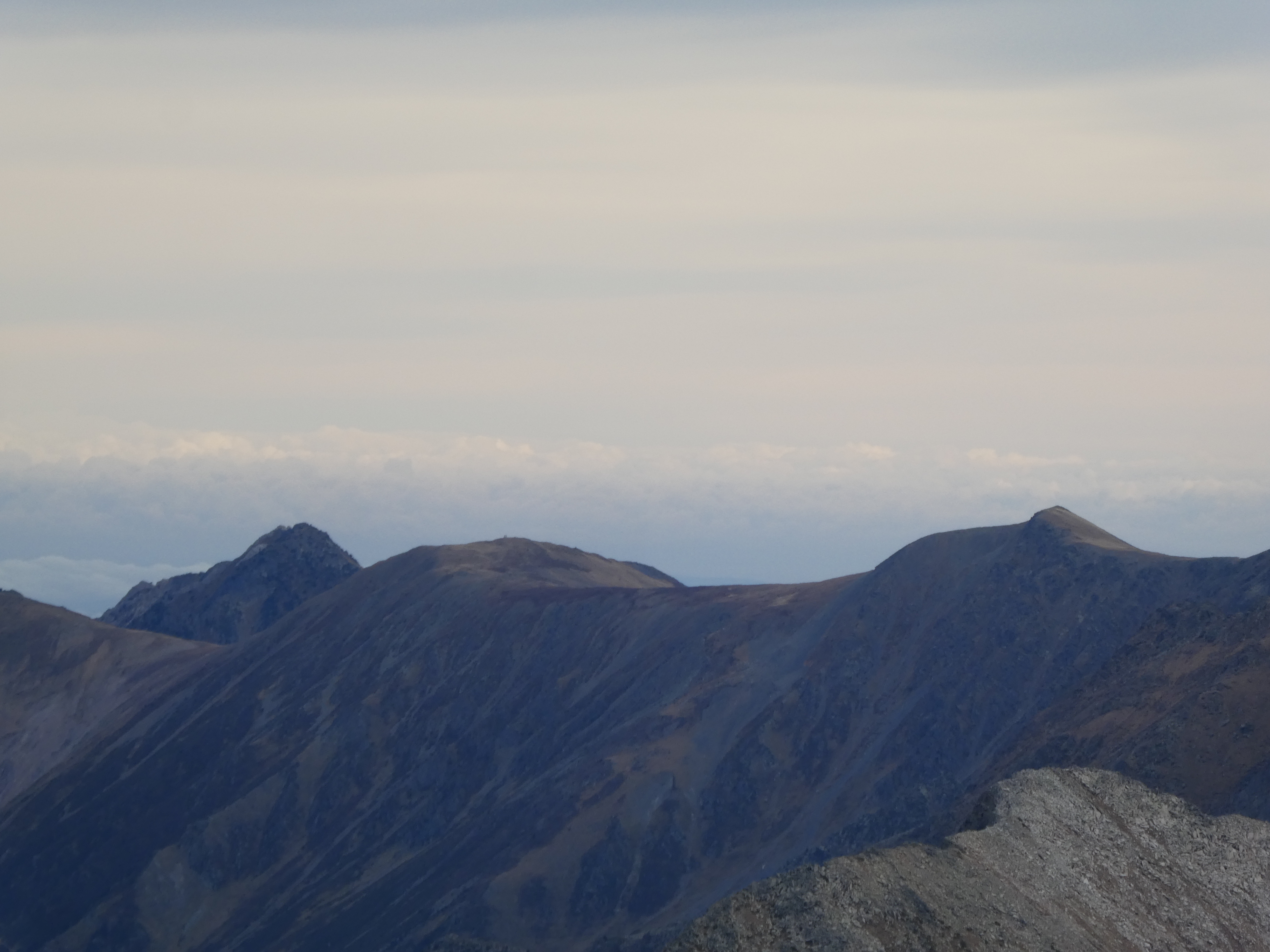 Zoom sur le Pic dels Estanyons (2834 m) au centre-gauche, le Pic Negre d'Envalira (2819 m) au centre et le Pic de mOnturull (2752 m) à droite