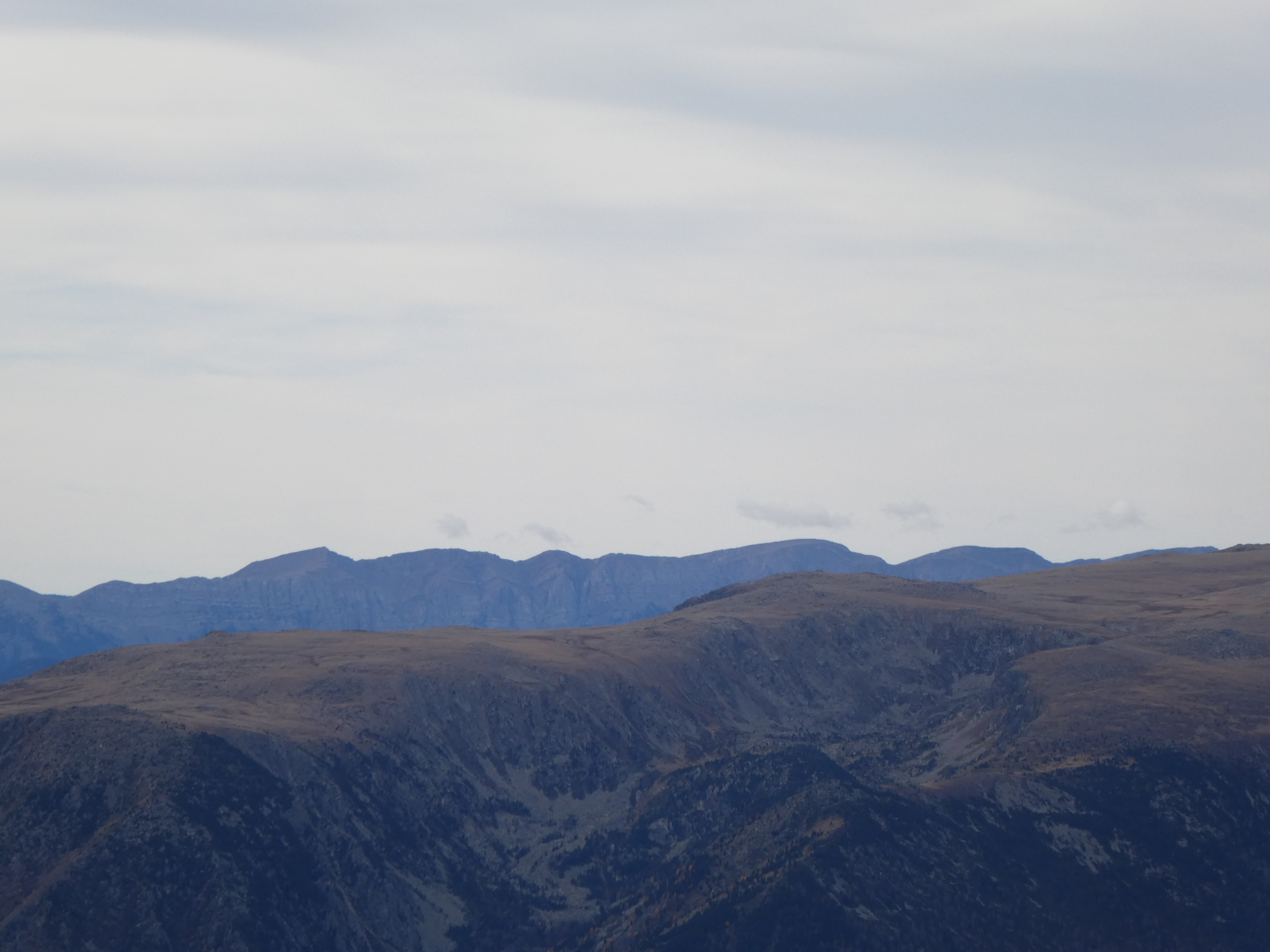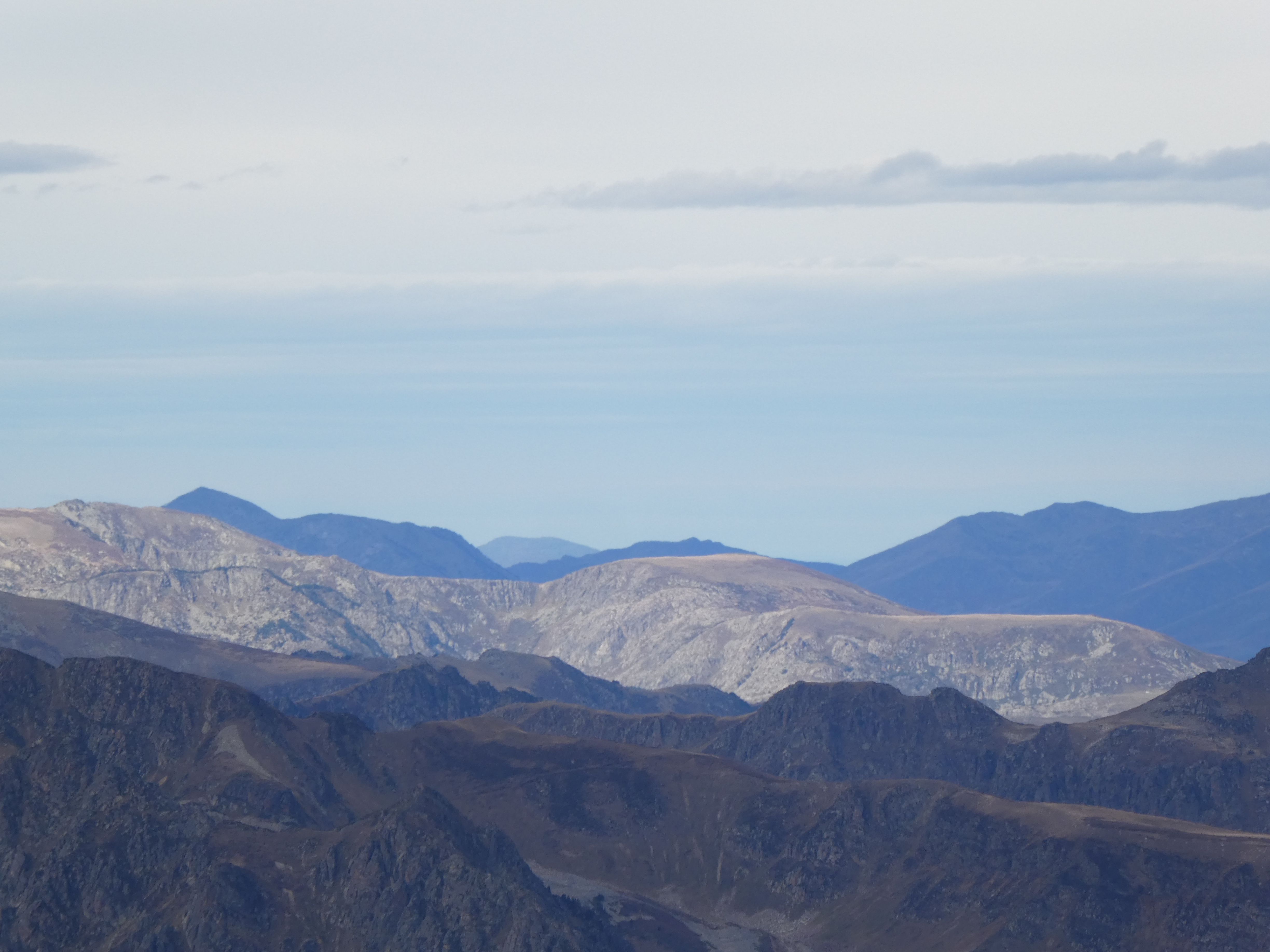 Zoom sur le Puig de la Pelada (2370 m) au centre-gauche et le Puig d'Escotó (2292 m) à droite