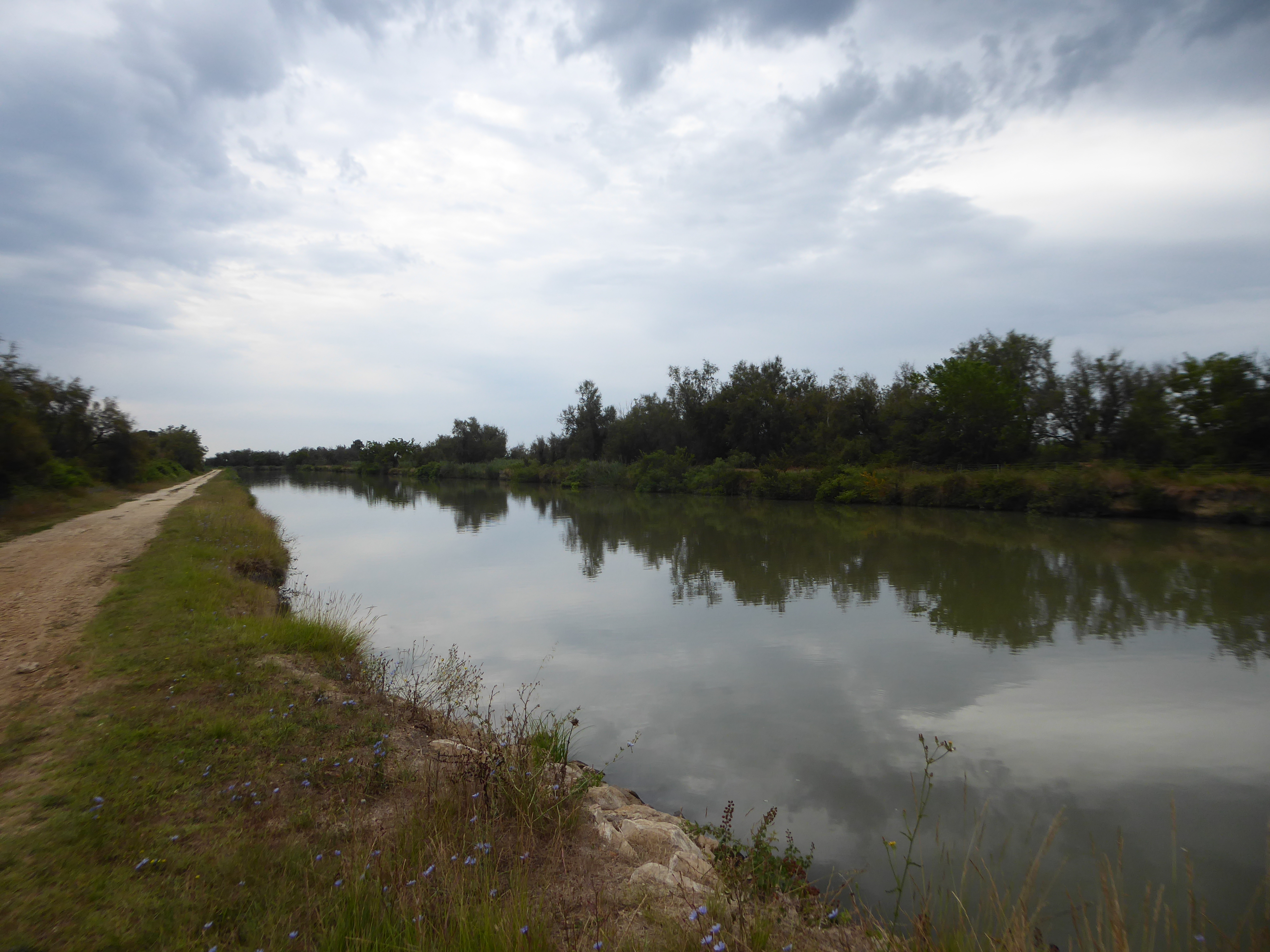 Chemin des Poissonniers (4 m) : suivre la piste partant sur la gauche et longeant le Canal du Rhône à Sète direction Saint-Gilles, balisé en rouge et blanc dorénavant