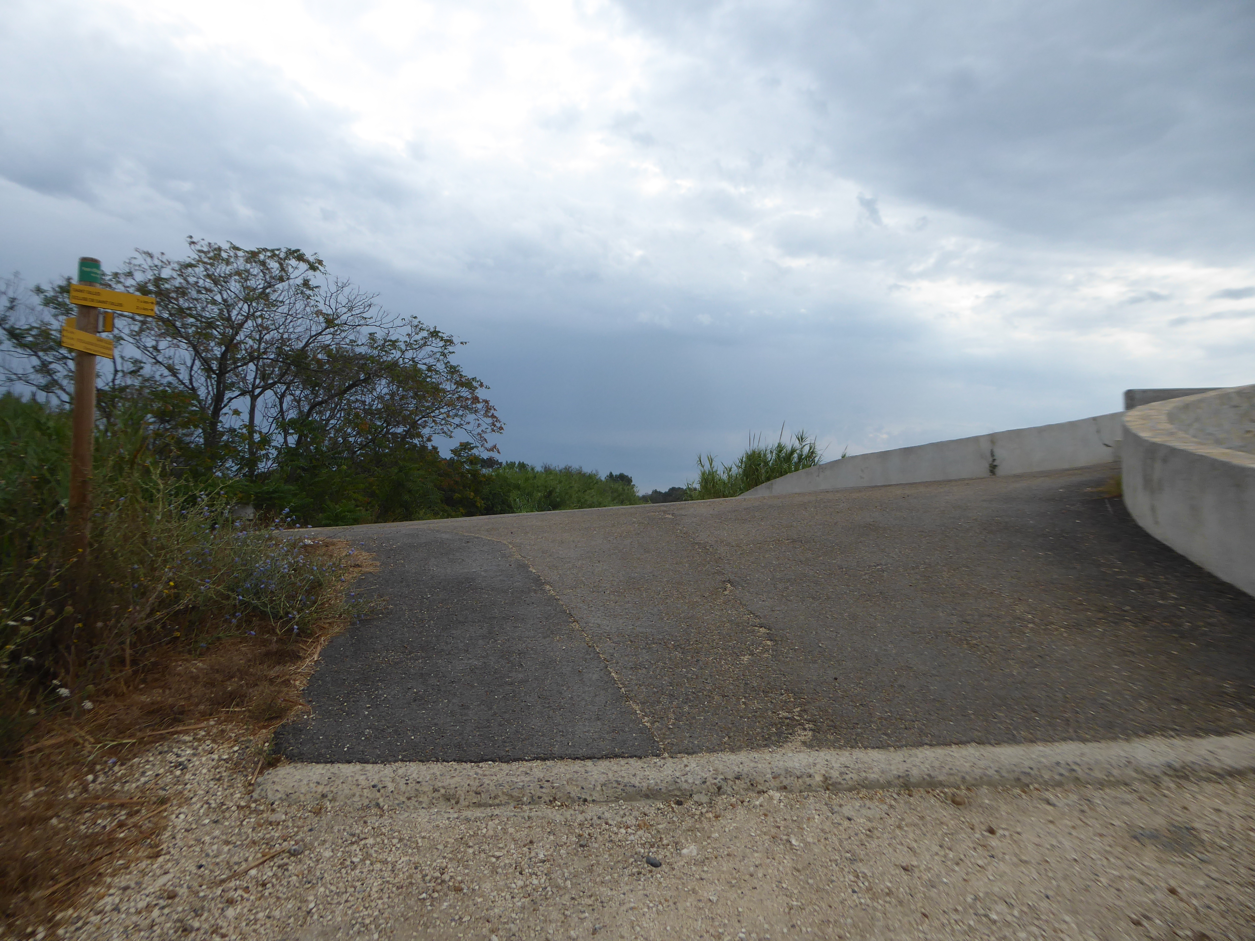 Pont d'Espeyran (4 m) : suivre la route partant sur la gauche direction Saint-Gilles, balisé en rouge et blanc