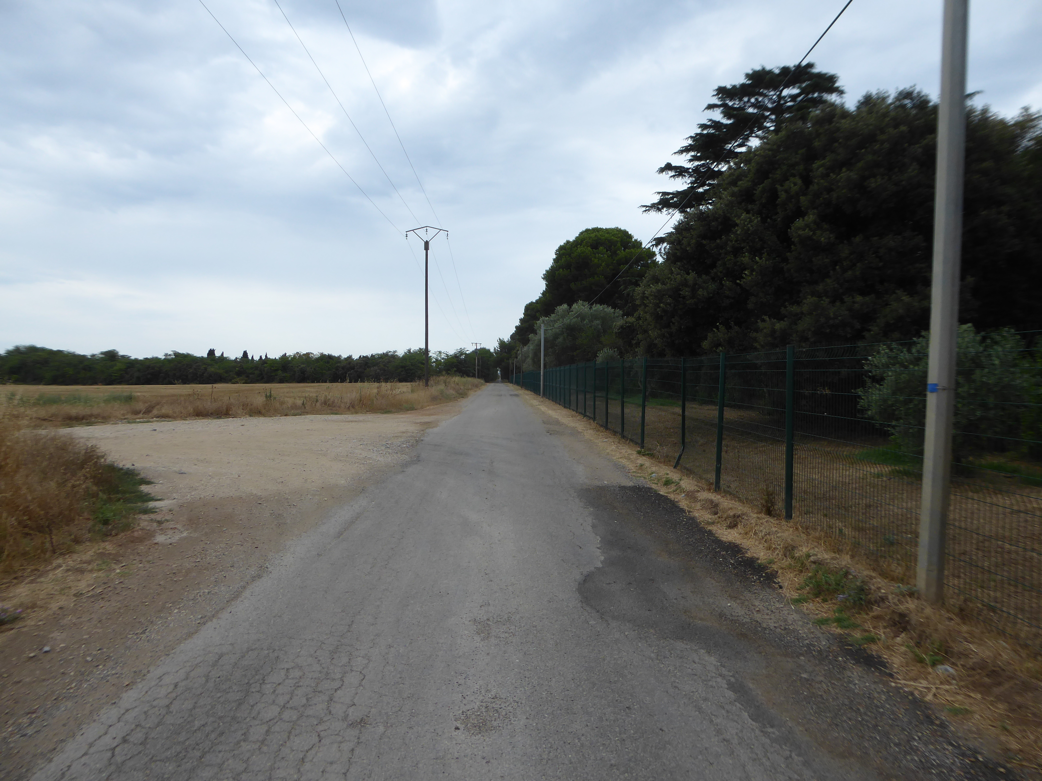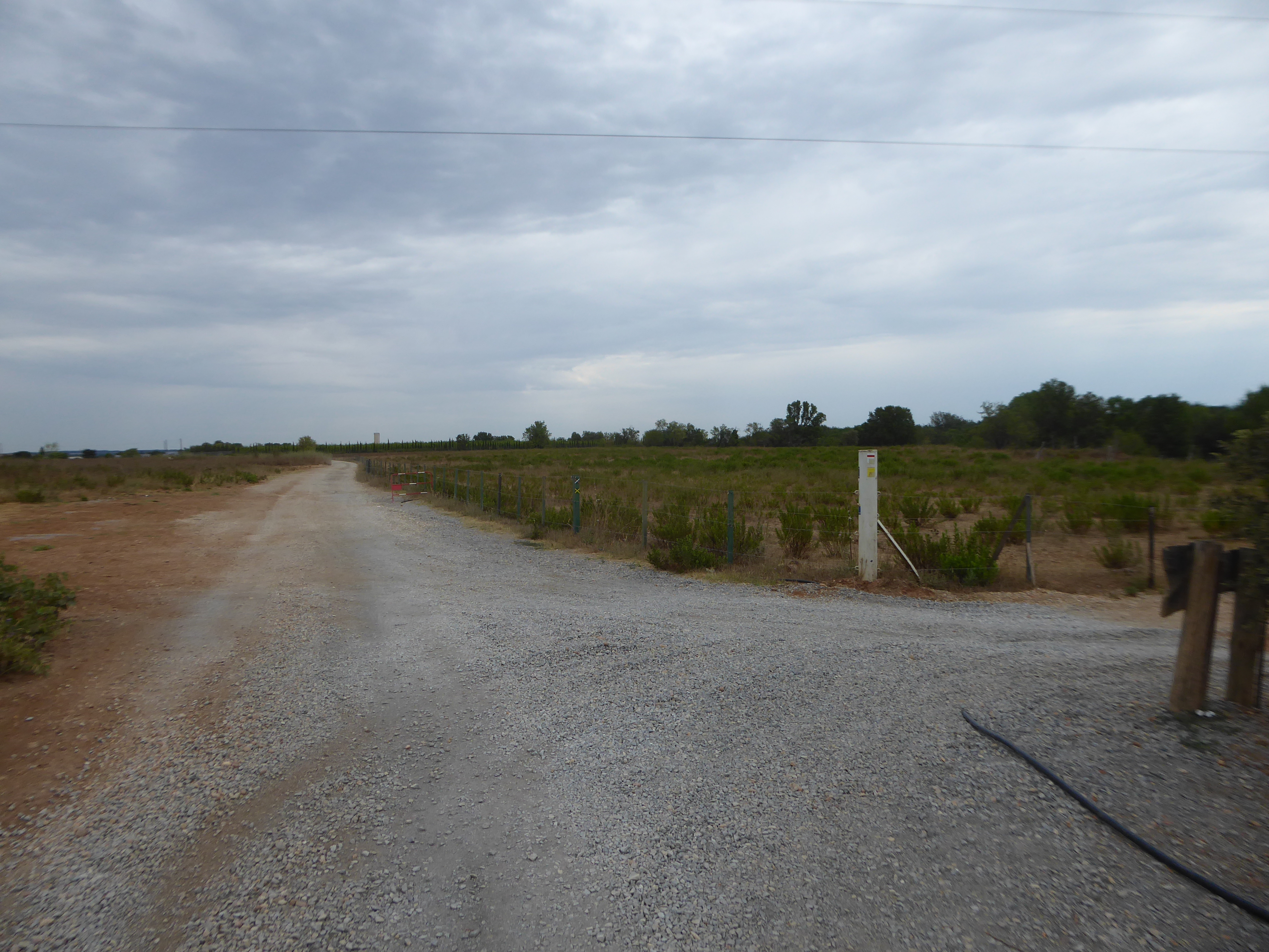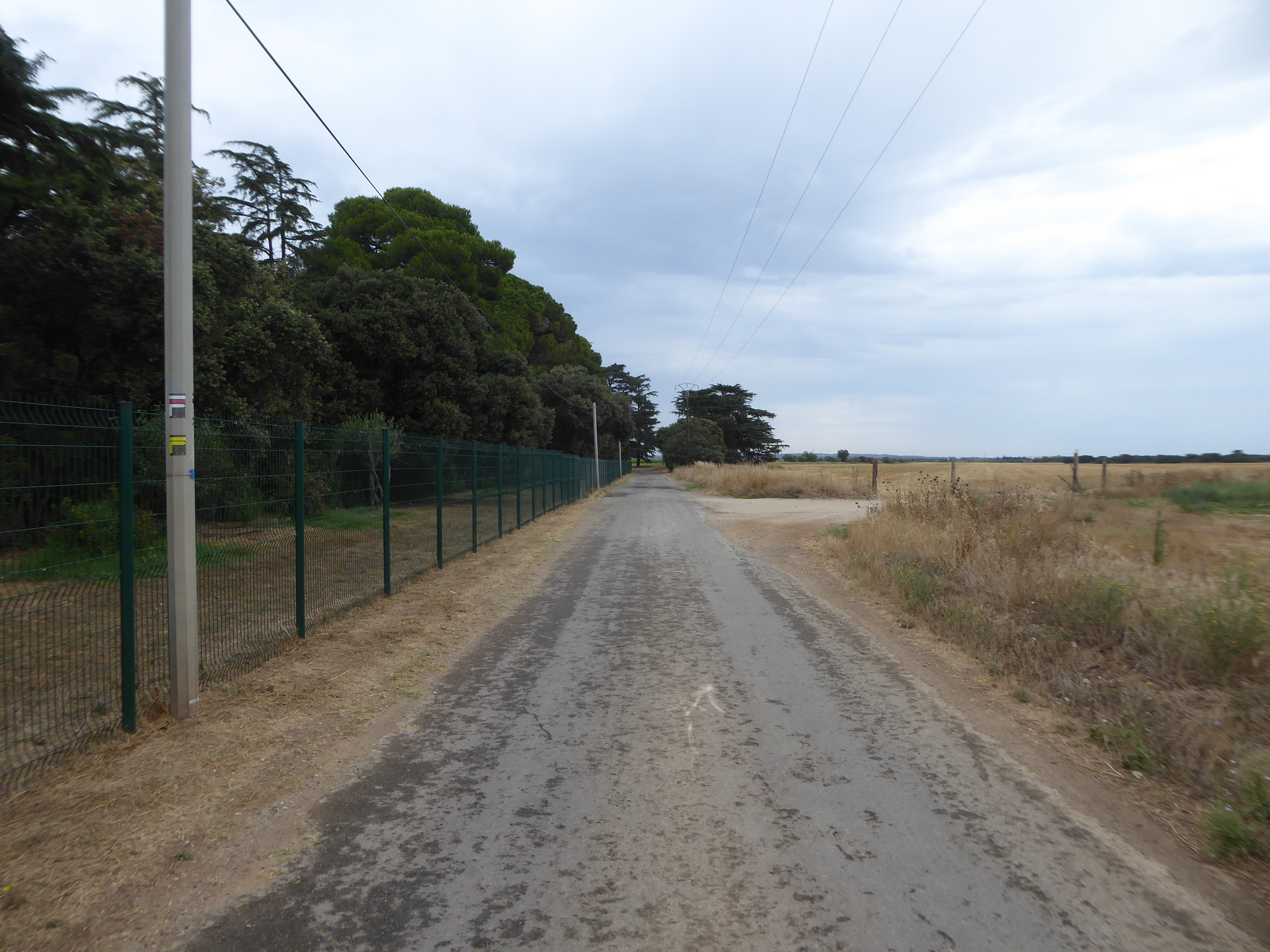 A ce croisement juste avant le Château d'Espeyran, ignorer le GR partant de biais sur la droite mais suivre la route partant tout droit sur quelques dizaines de mètres direction Château d'Espeyran, aucun balisage dorénavant