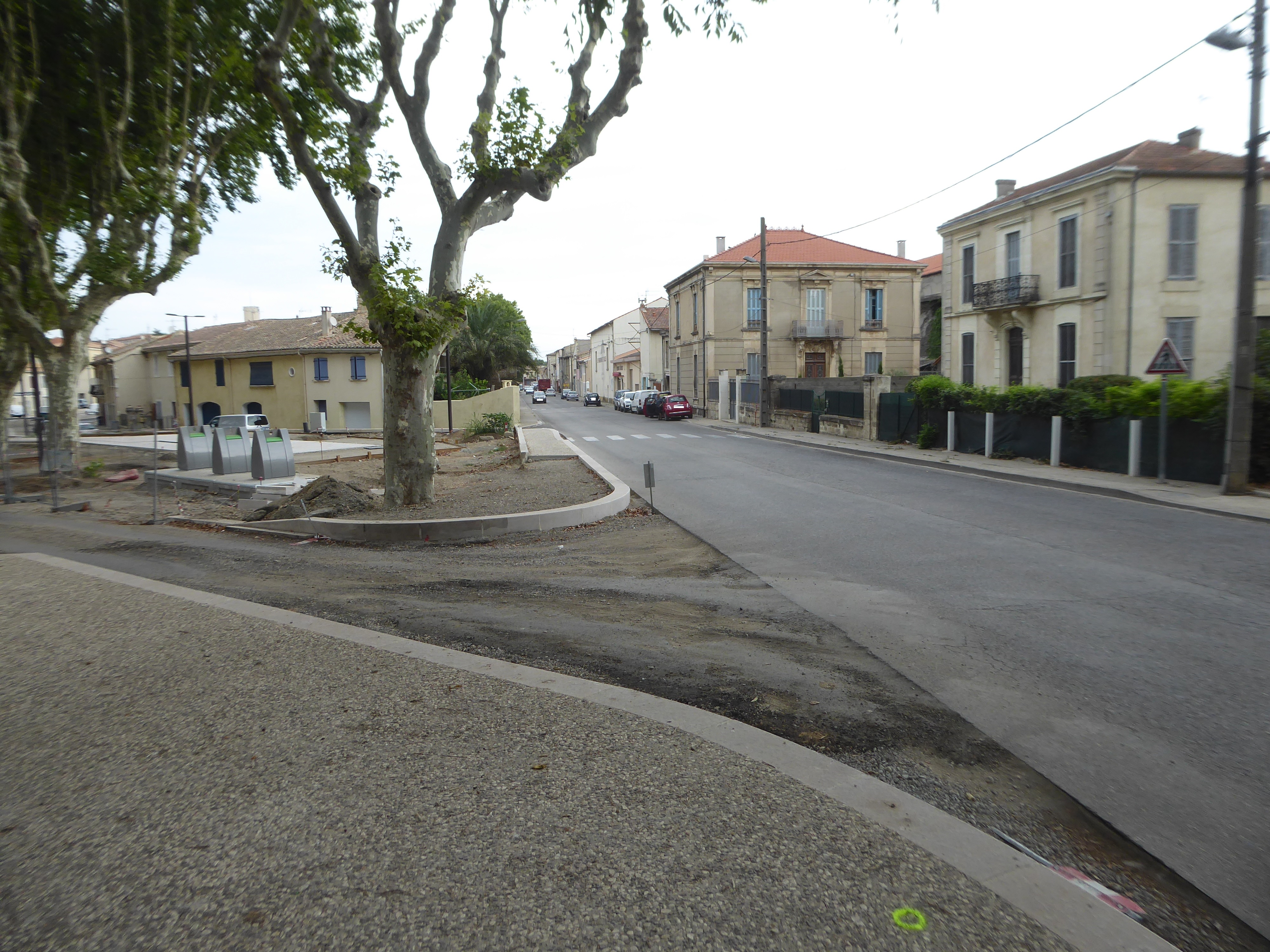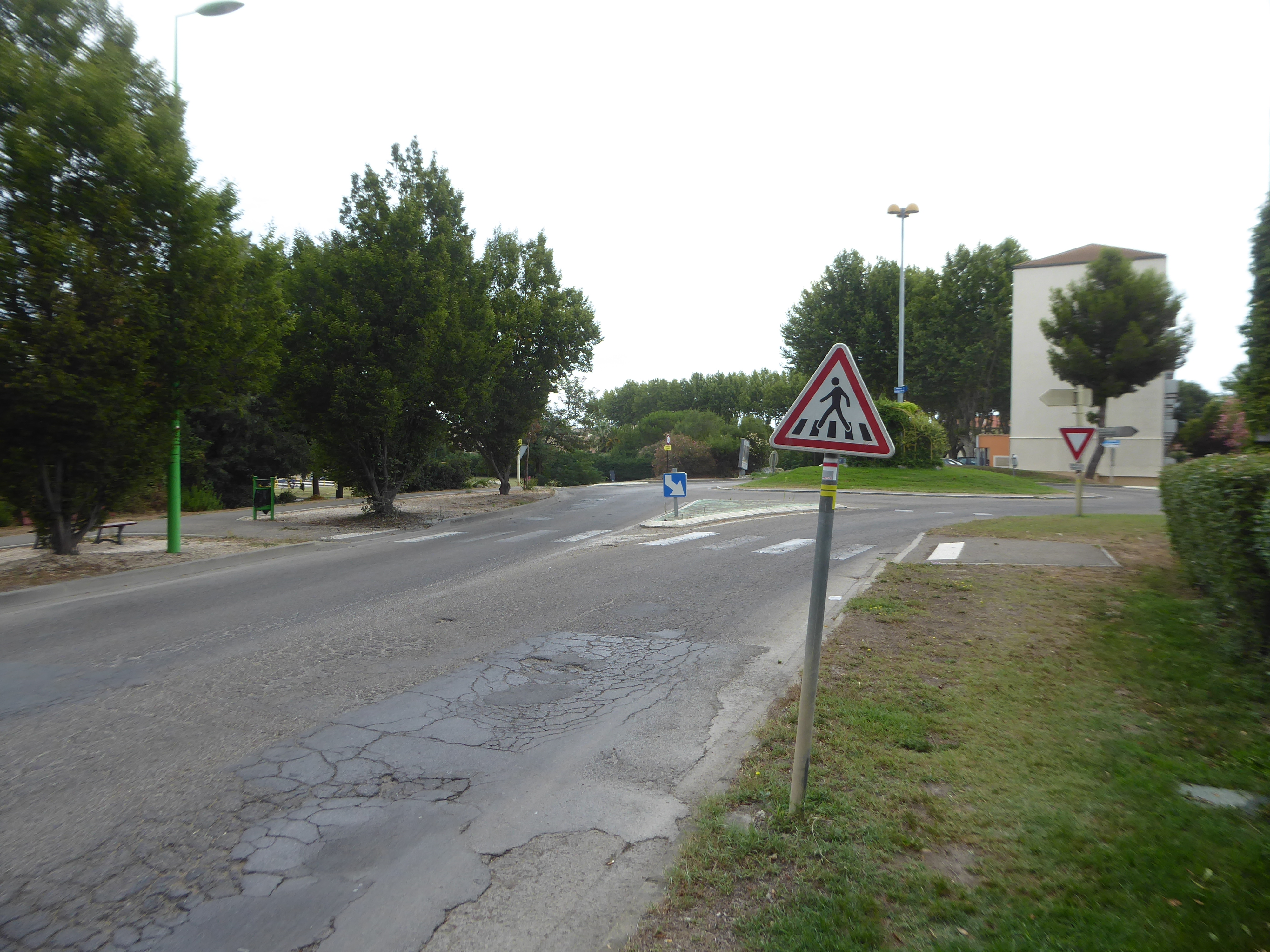 A cette intersection marquée par les panneaux directionnels "Vauvert / Montpellier / Générac" (400 mètres après la précédente), suivre la rue partant de biais sur la gauche direction Château d'Espeyran, balisé en rouge et blanc