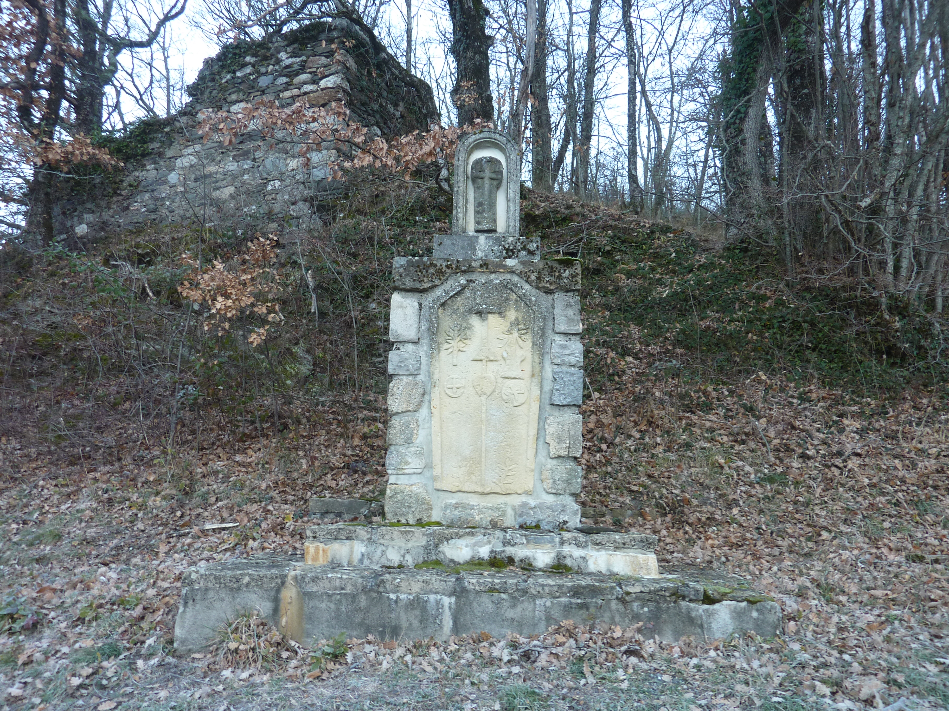 Oratoire de Saint-Guirallet (613 m) : suivre le chemin montant sur la gauche direction Saint-Guiral, balisé en rouge et blanc, et en jaune