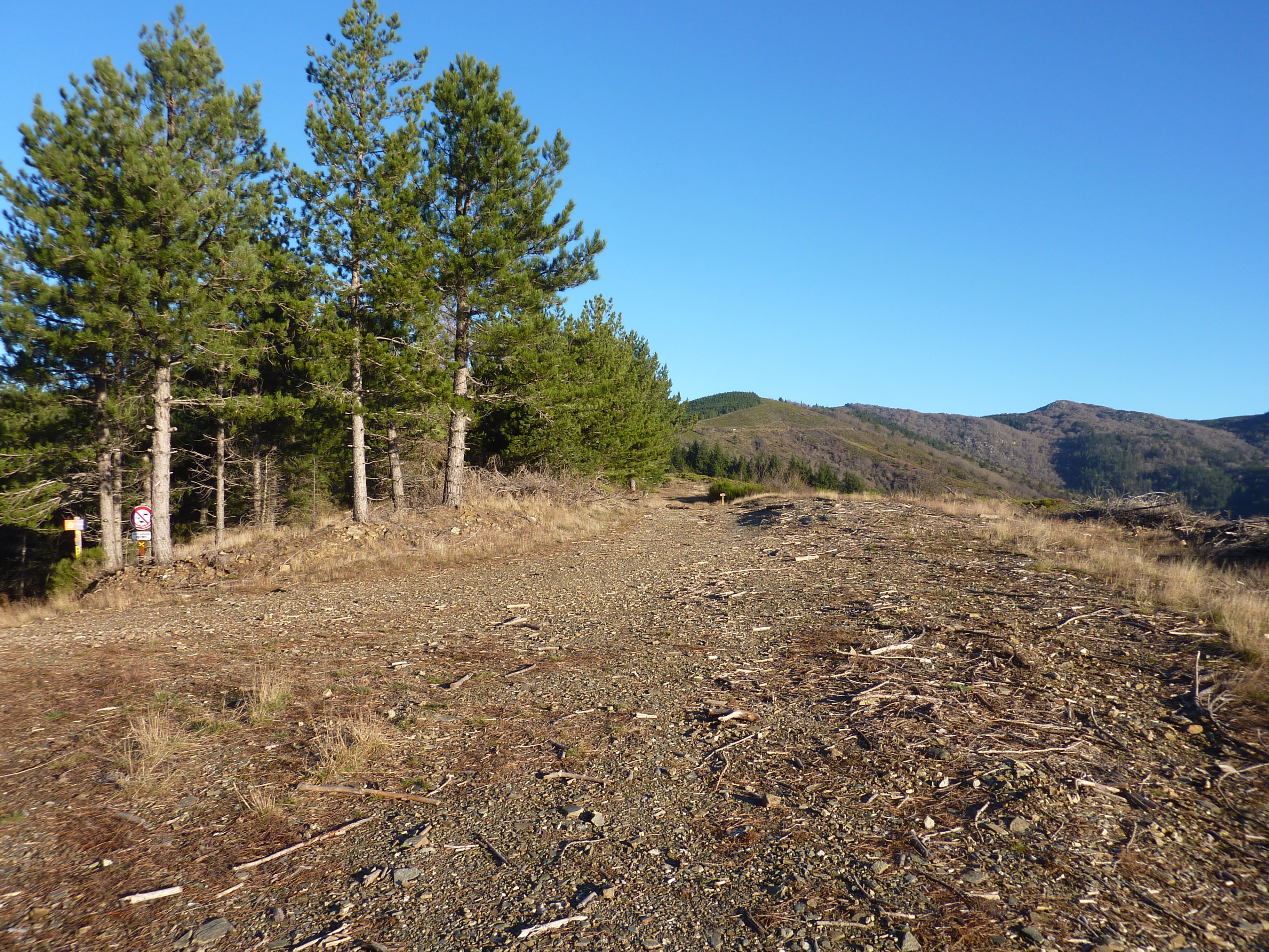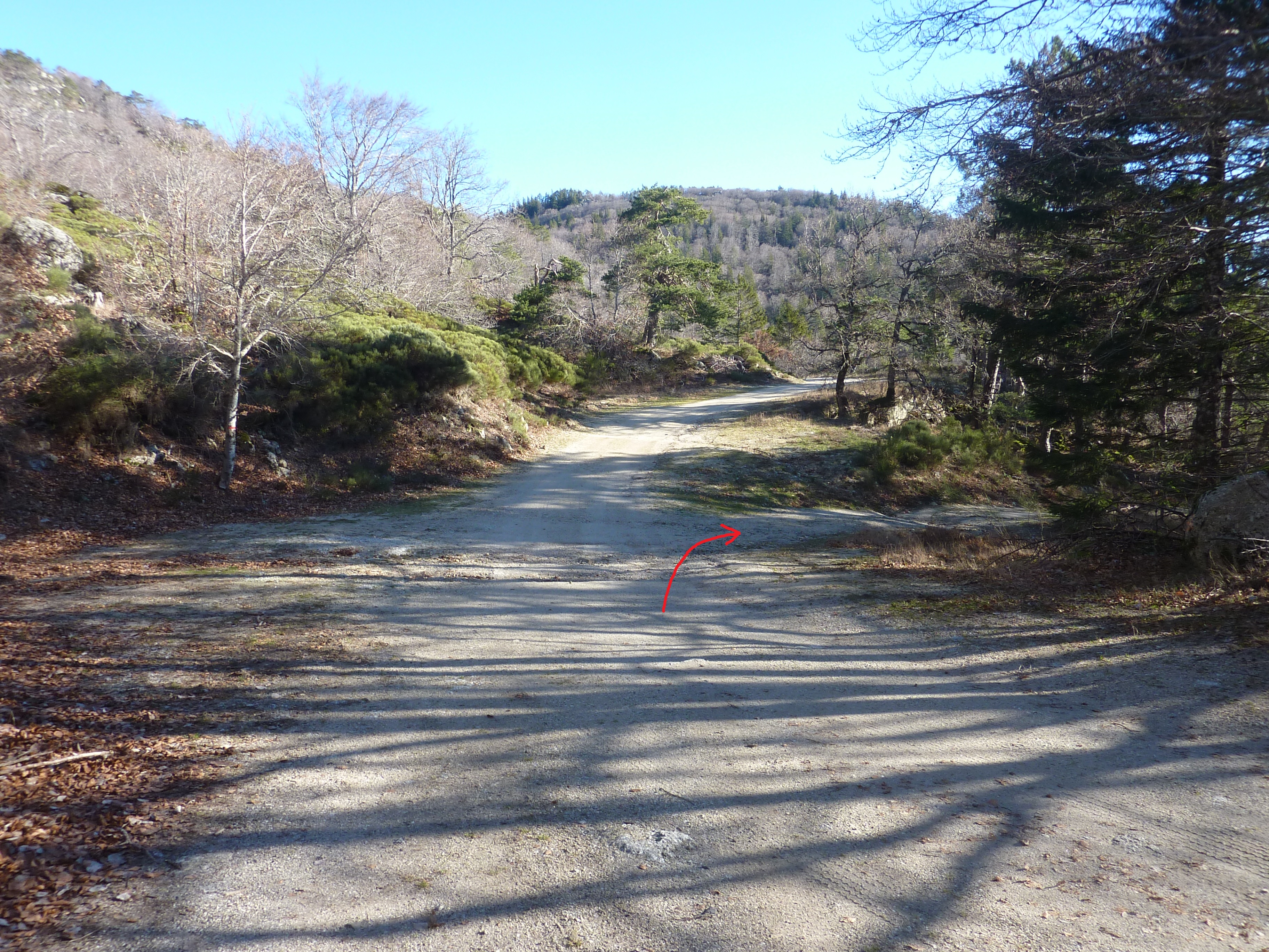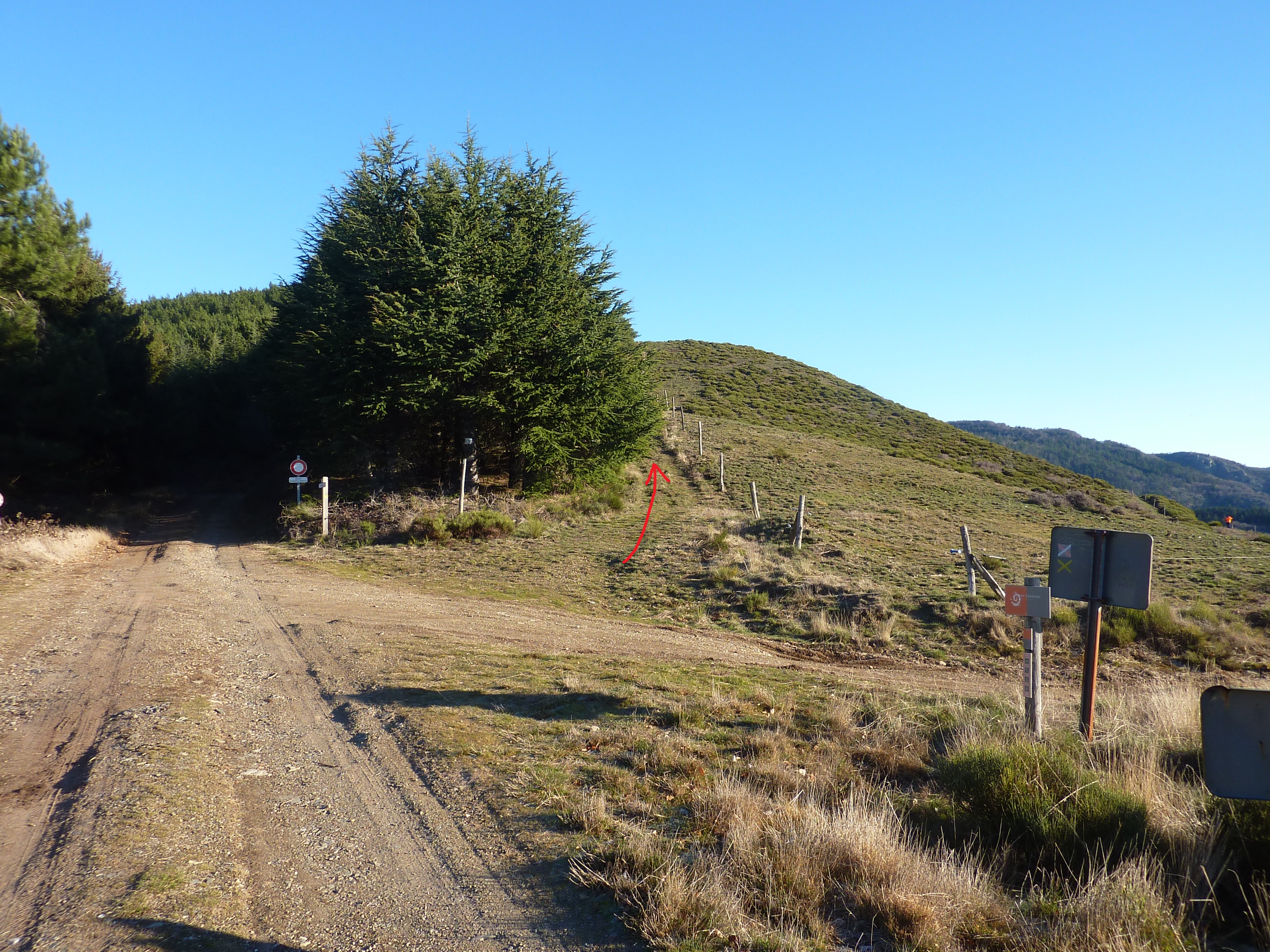 Col des Airettes (957 m) : sortie du Parc National des Cévennes : suivre la piste partant légèrement sur la droite direction Alzon, aucun balisage dorénavant