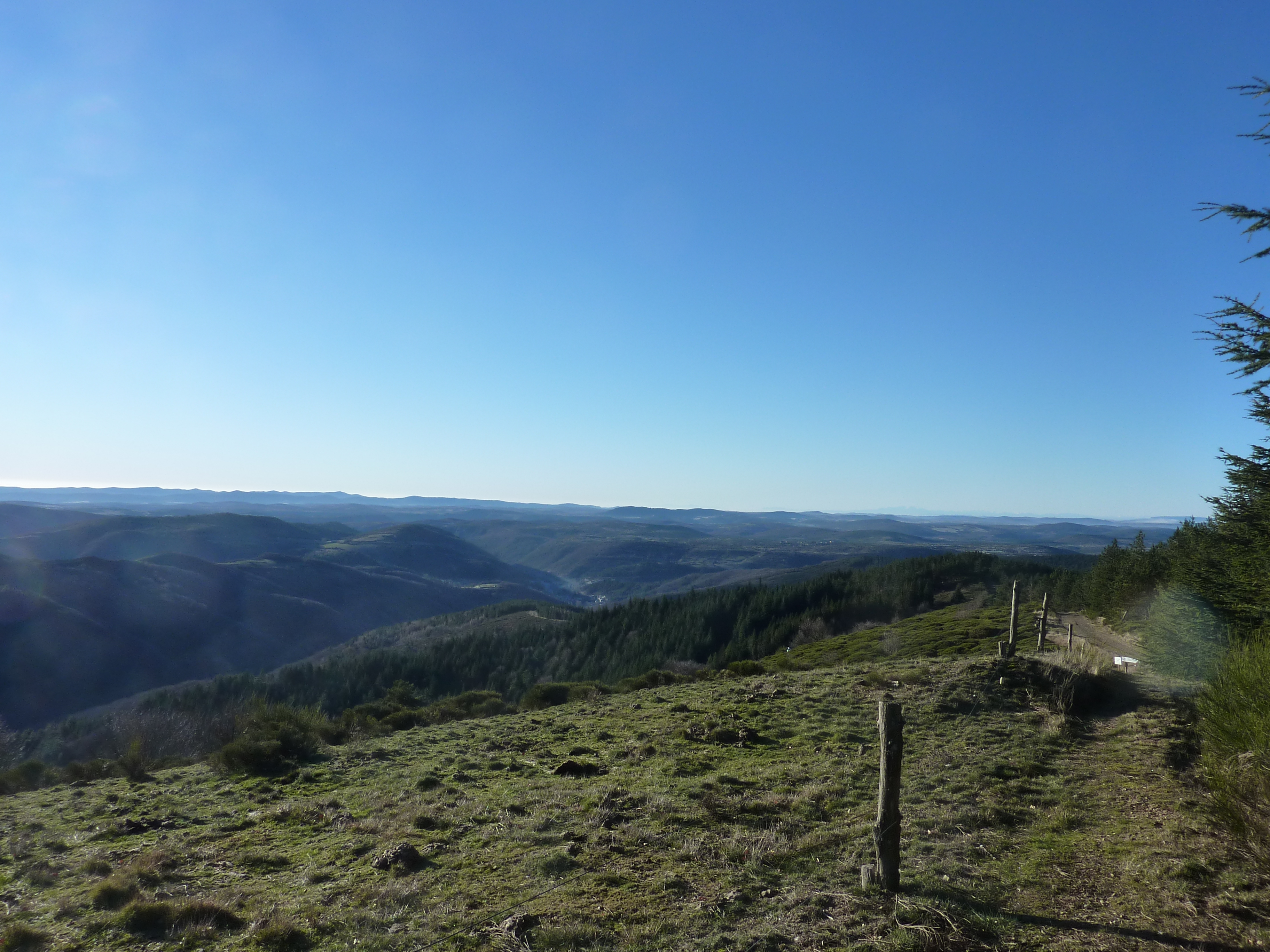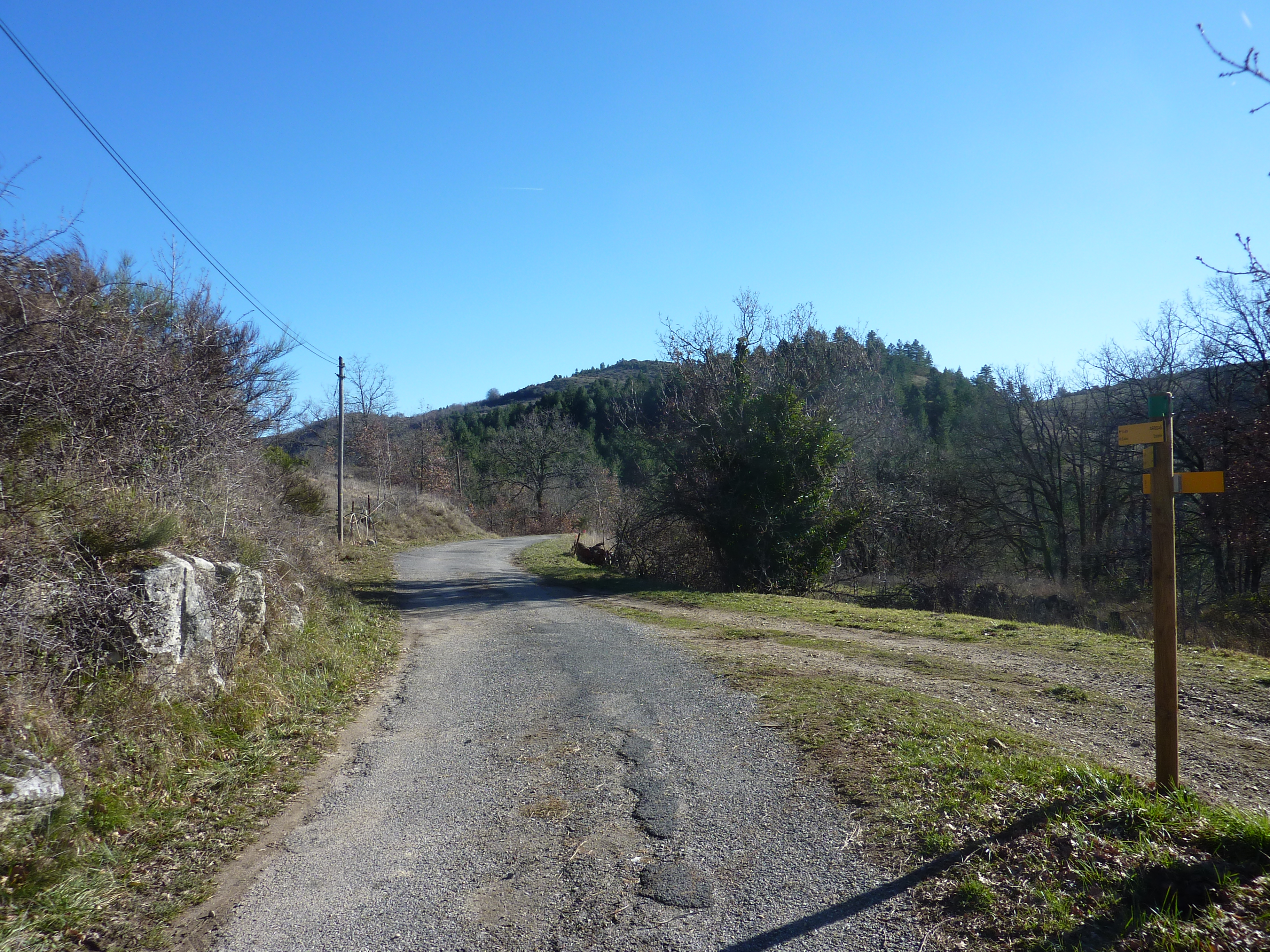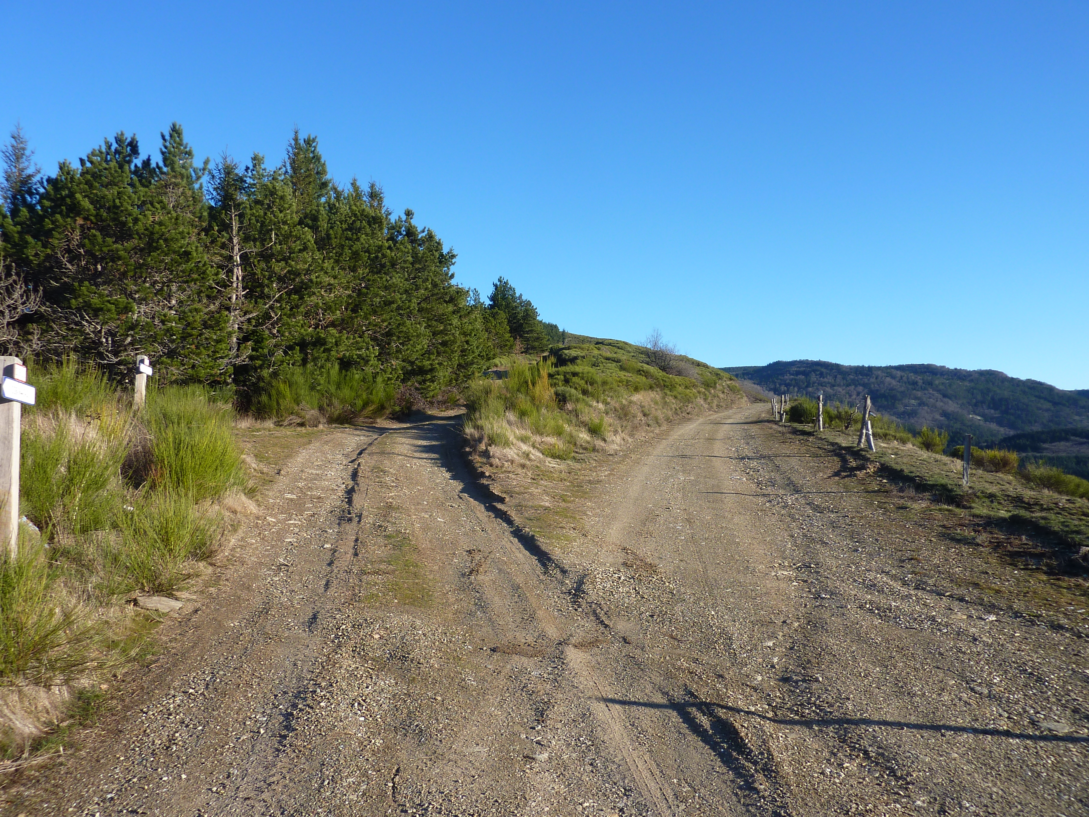 Peyrebesse (1140 m) : suivre la large piste descendant en quasi demi-tour sur la droite direction Alzon, balisé en jaune