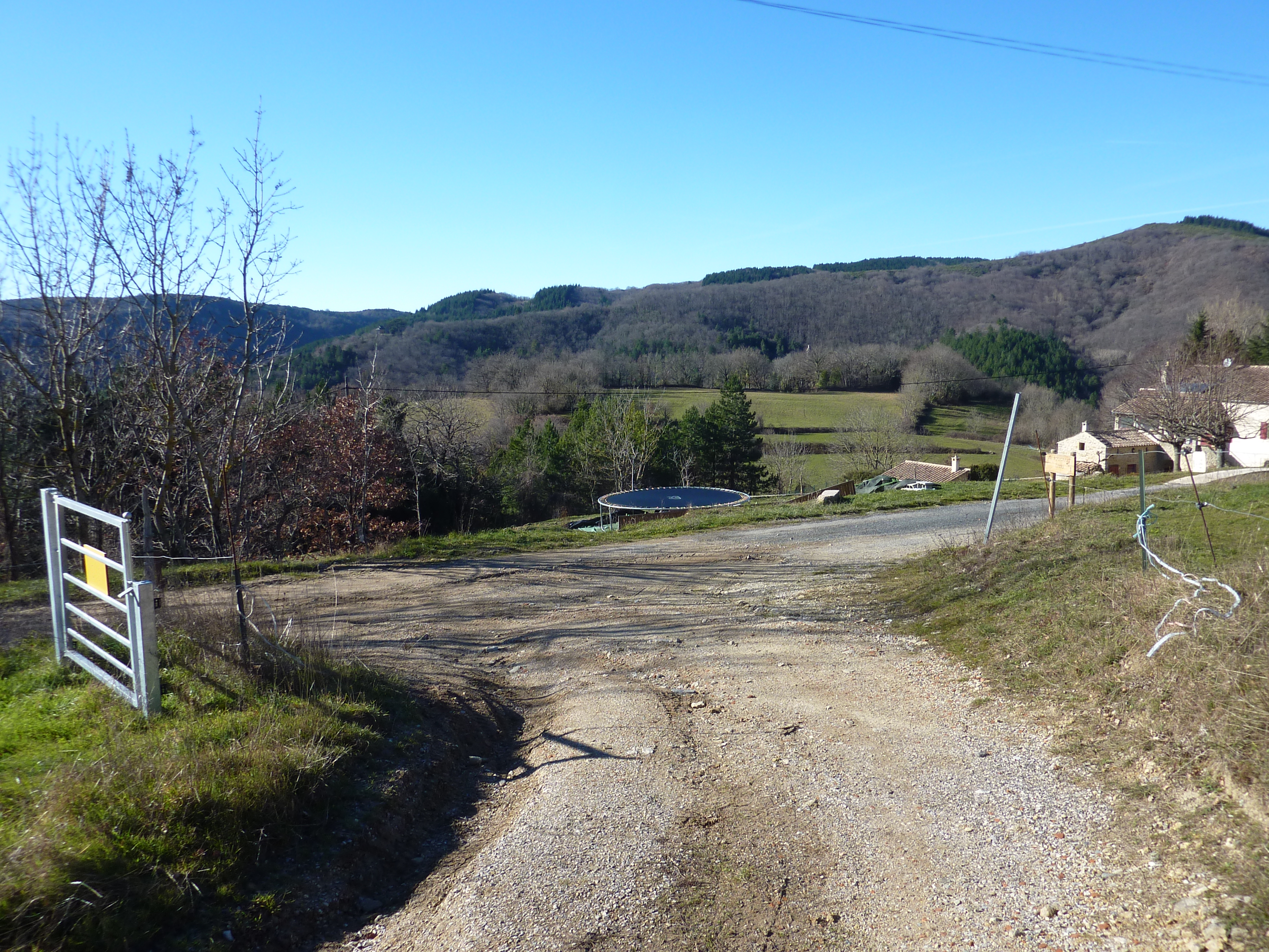 Nougarède (900 m) : suivre le chemin descendant très raidement sur la gauche direction Alzon, balisé en jaune