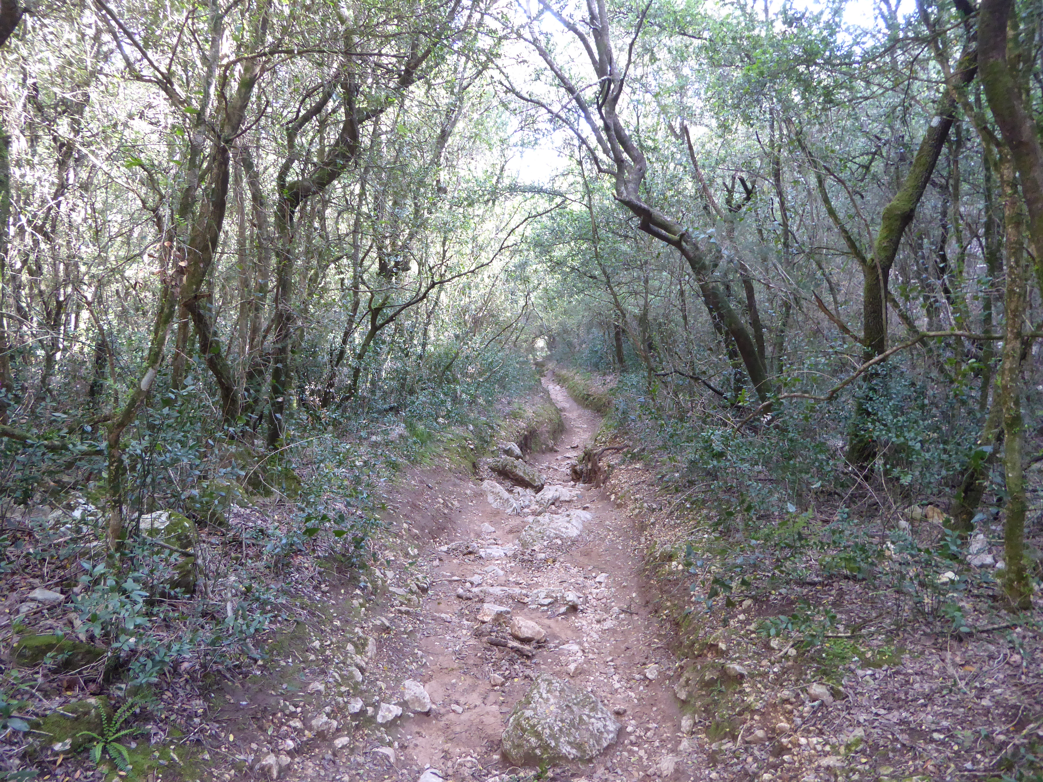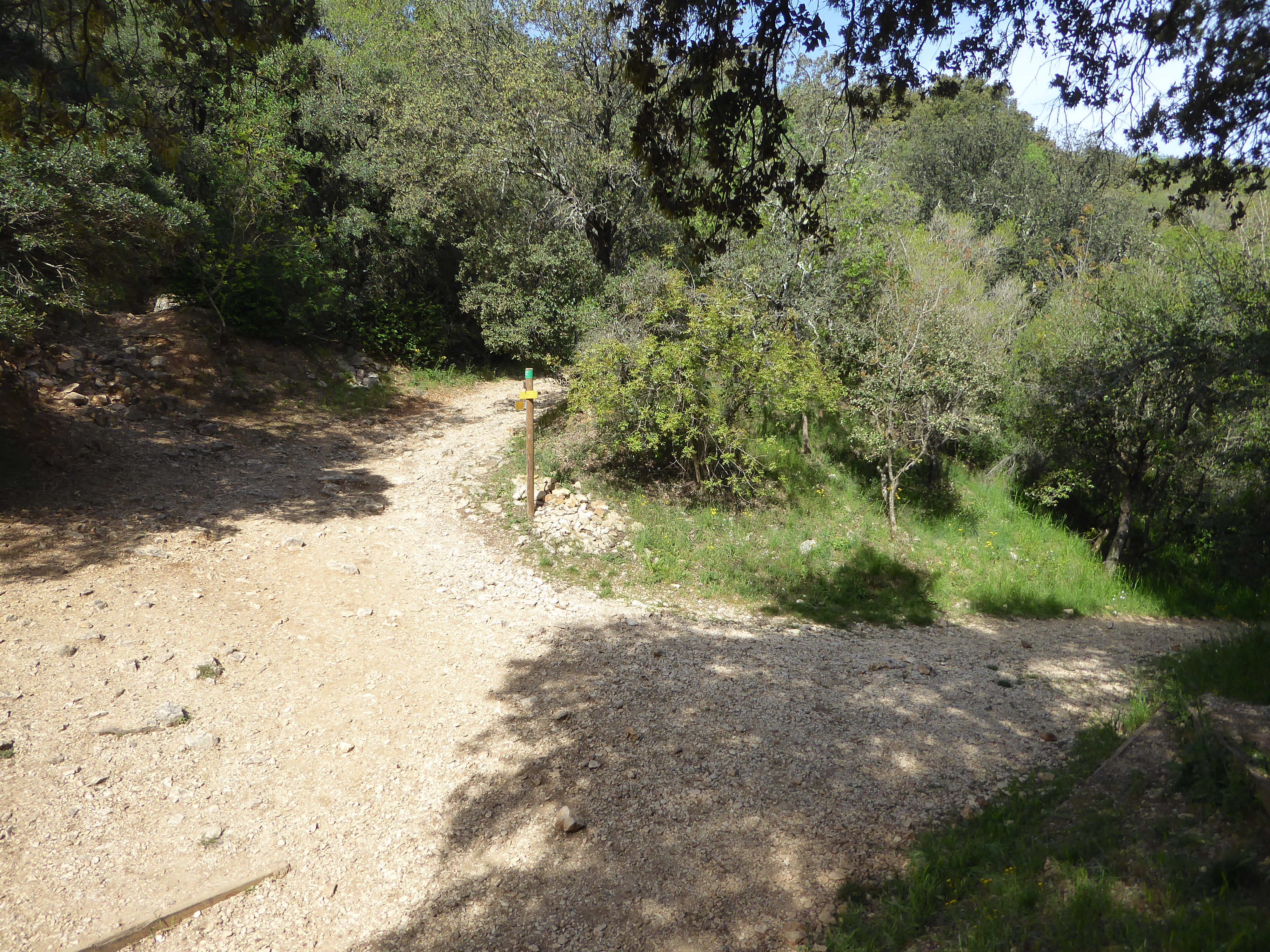Le Sablas (121 m) : suivre le chemin descendant légèrement sur la droite direction Pont du Gard, balisé en jaune dorénavant