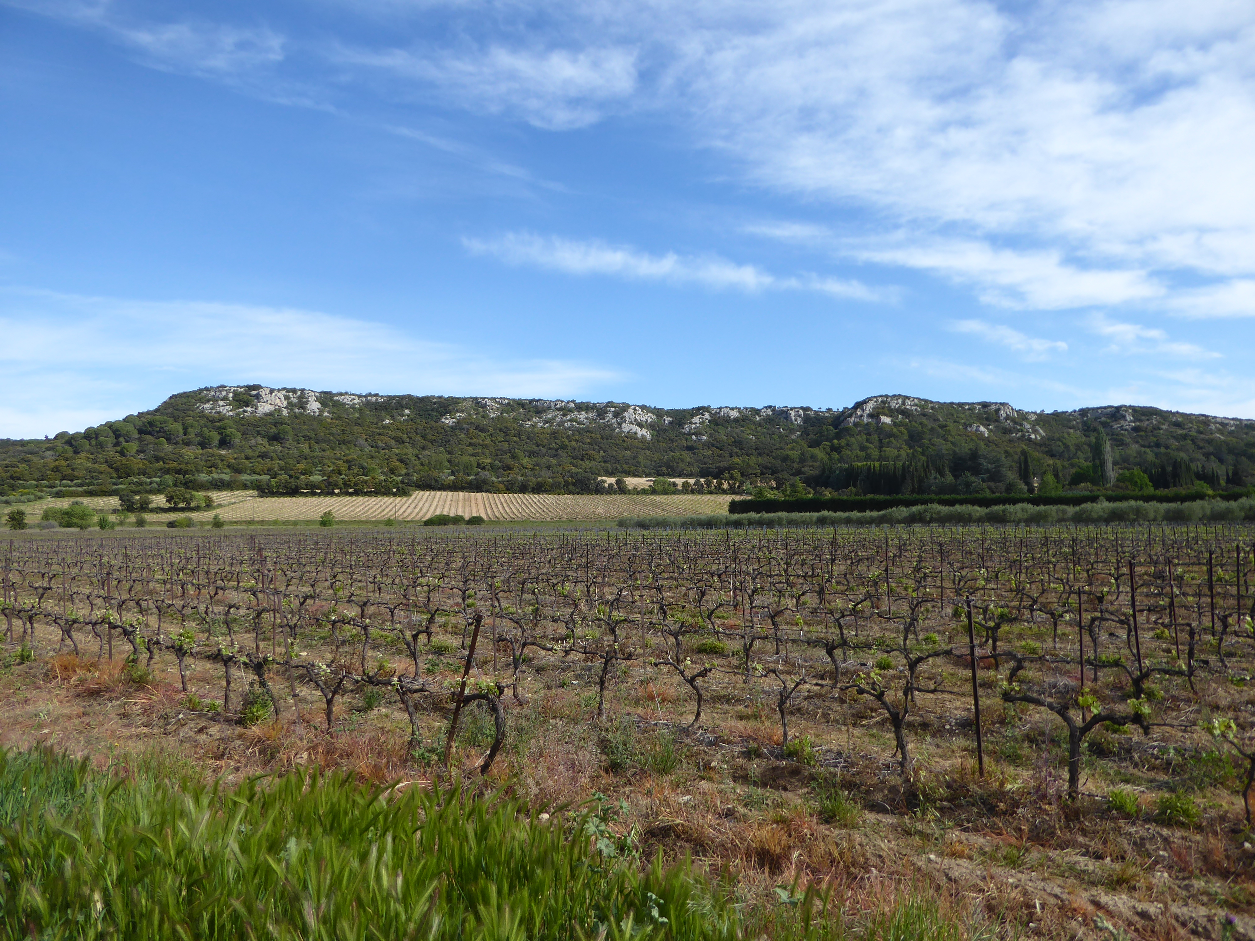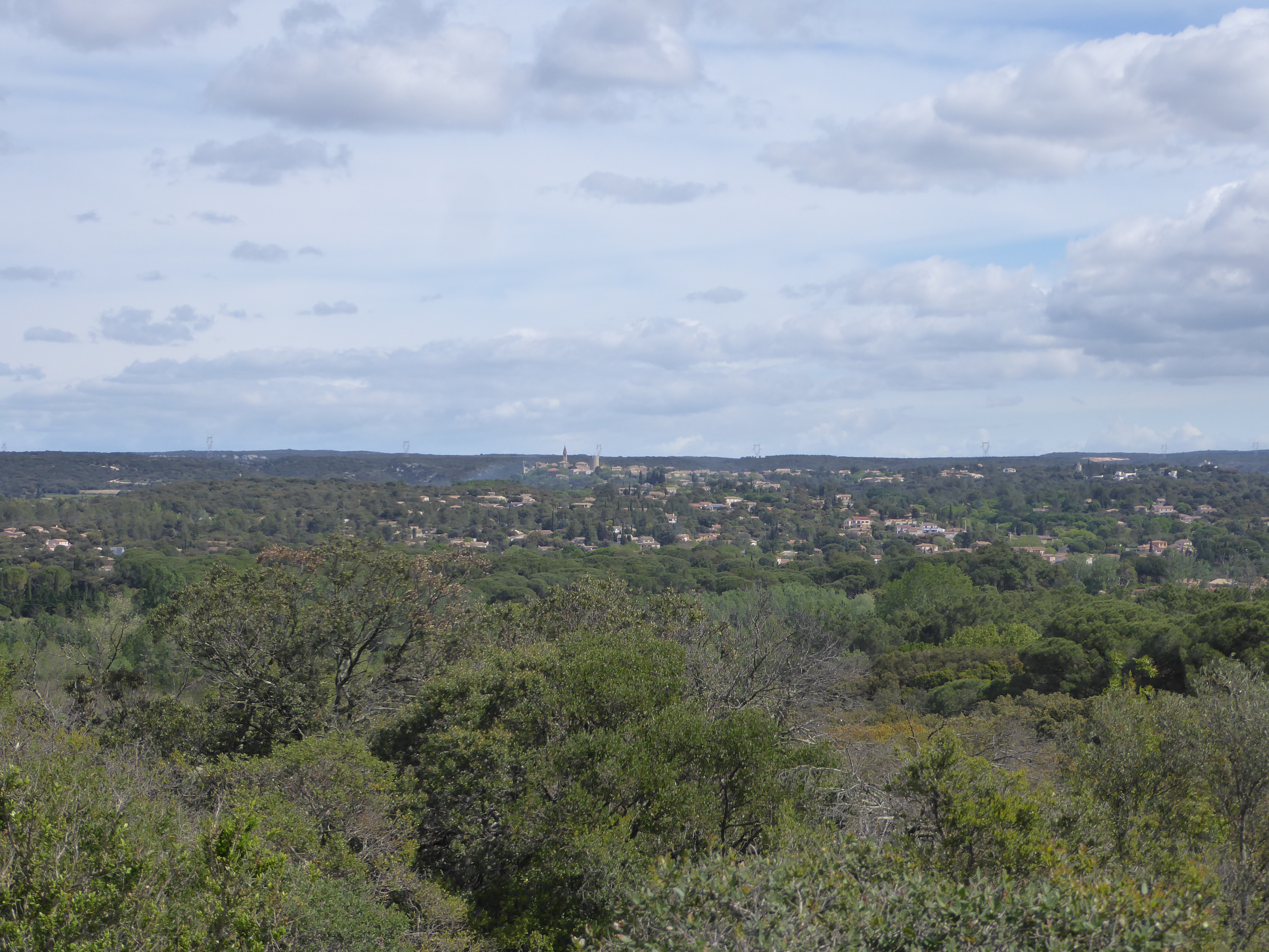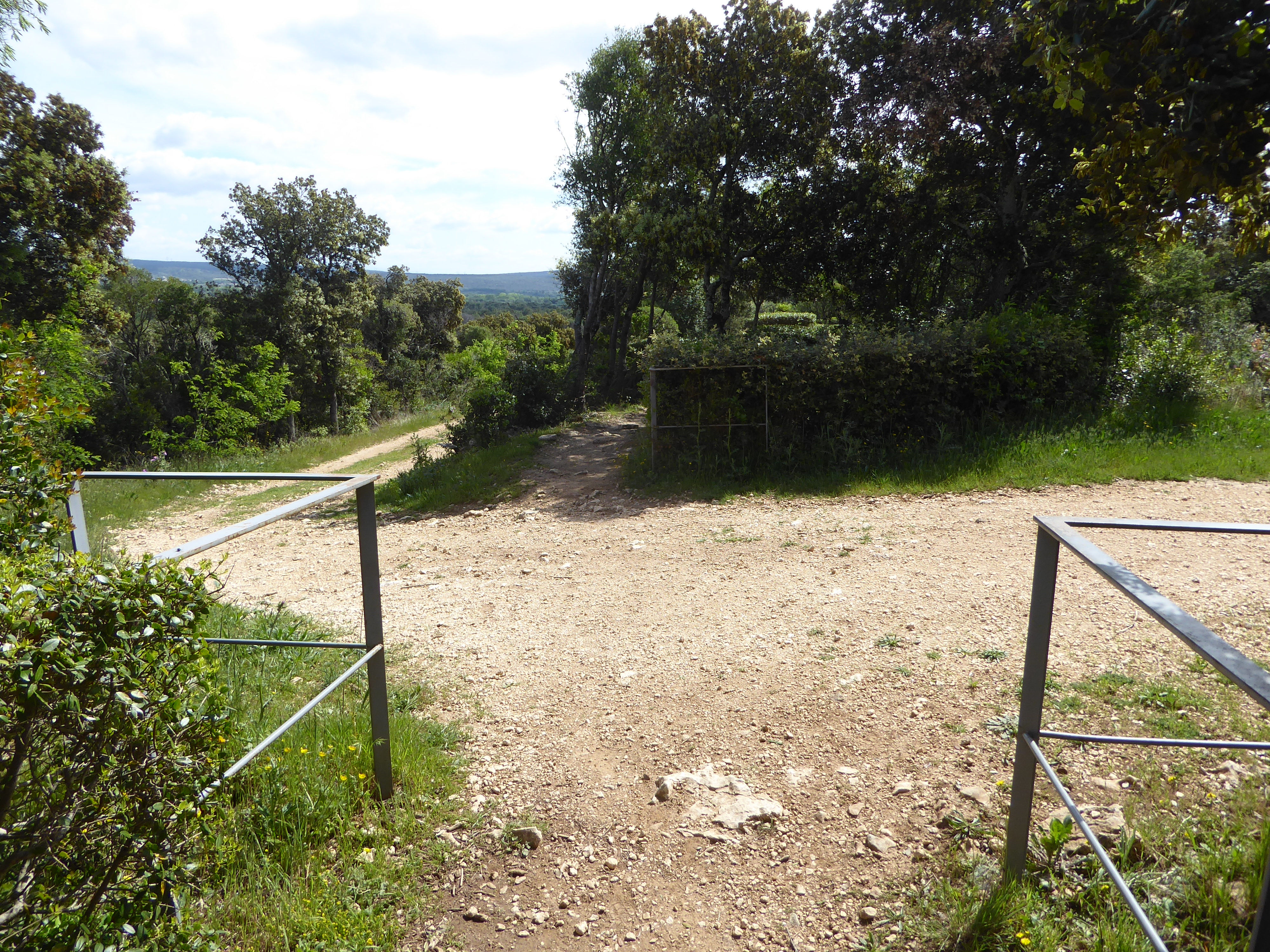 Le Sablas (121 m) : suivre le chemin descendant tout droit direction Saint-Bonnet-du-Gard, balisé en rouge et blanc dorénavant