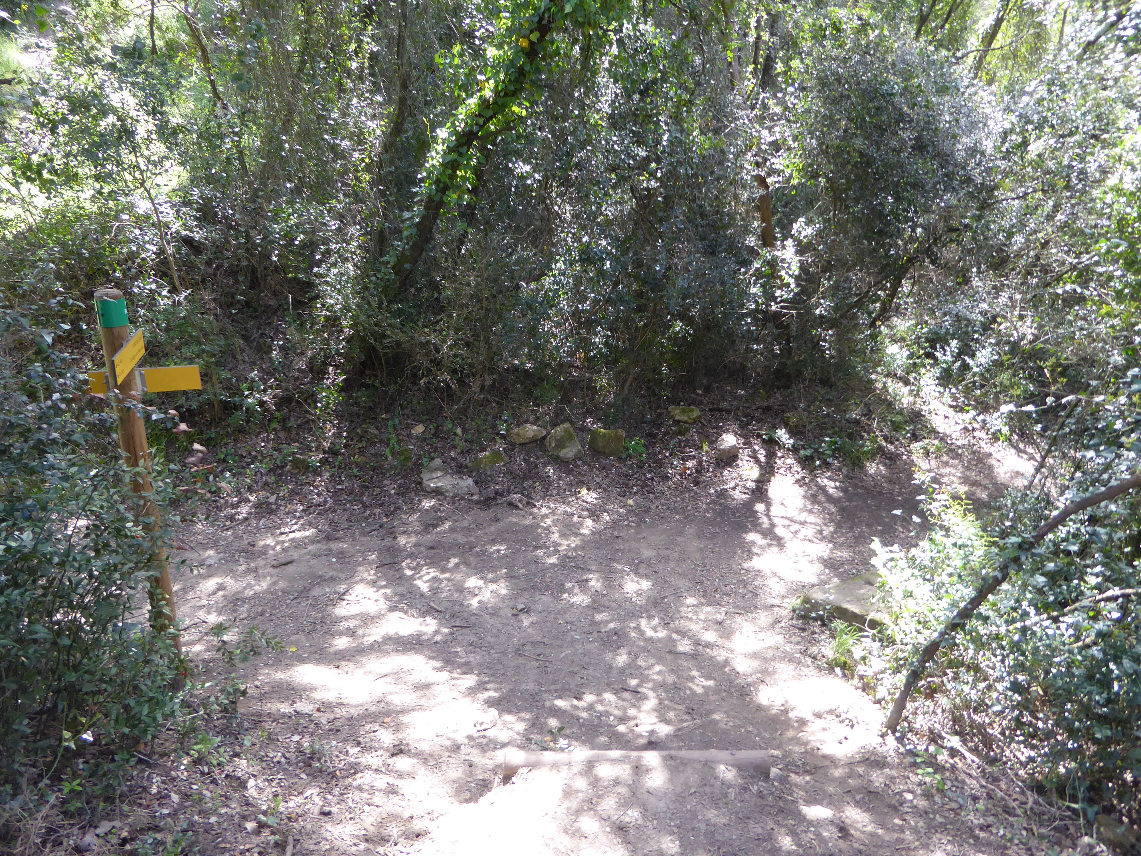 A ce croisement avec une piste (250 mètres après le Pont de Roussière), suivre le chemin partant tout droit direction Pont du Gard, balisé en jaune