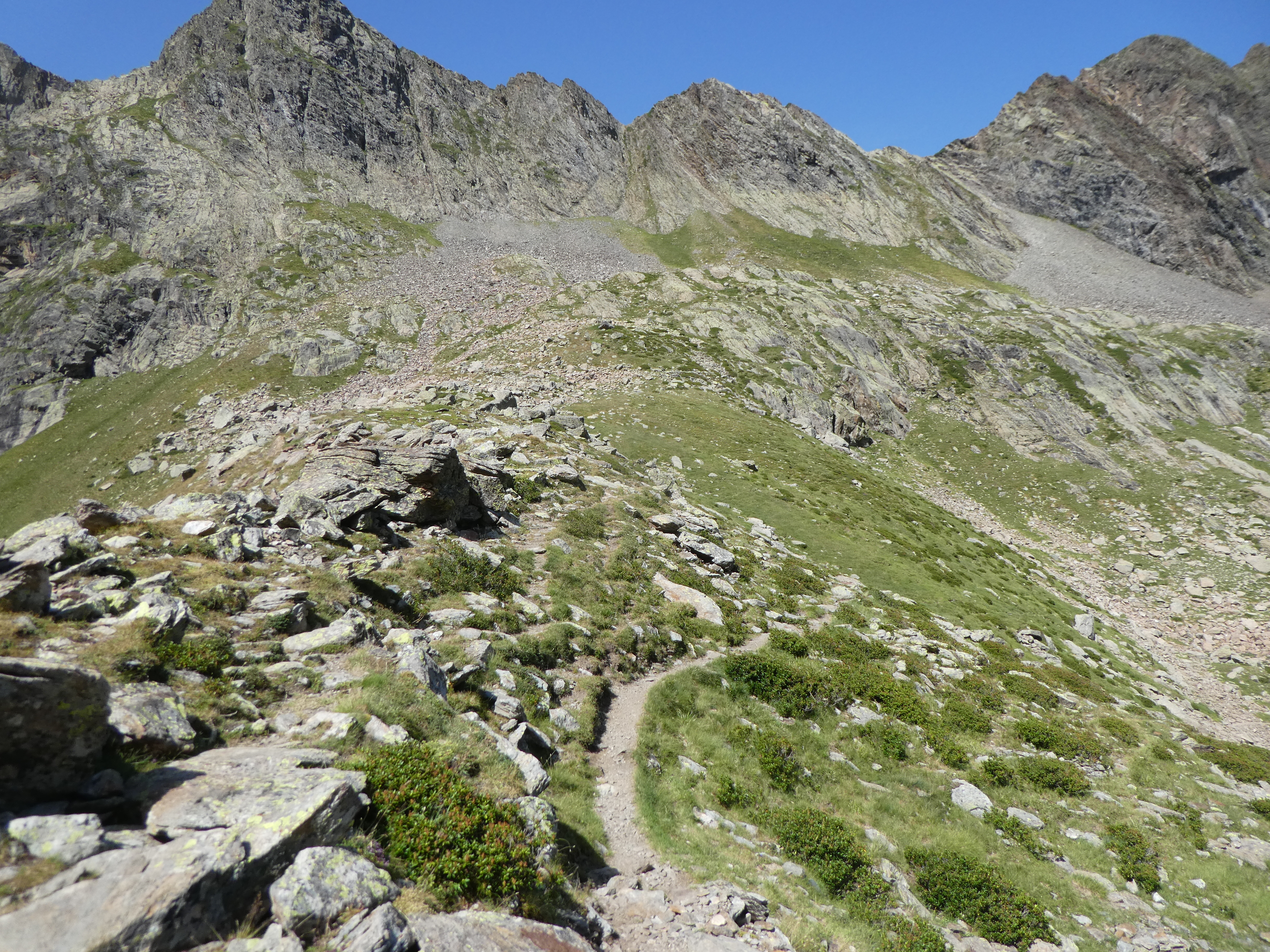 Le sentier de descente vers les Lacs de Nère (chemin bien cairné jusqu'au Couret d'Esquierry)