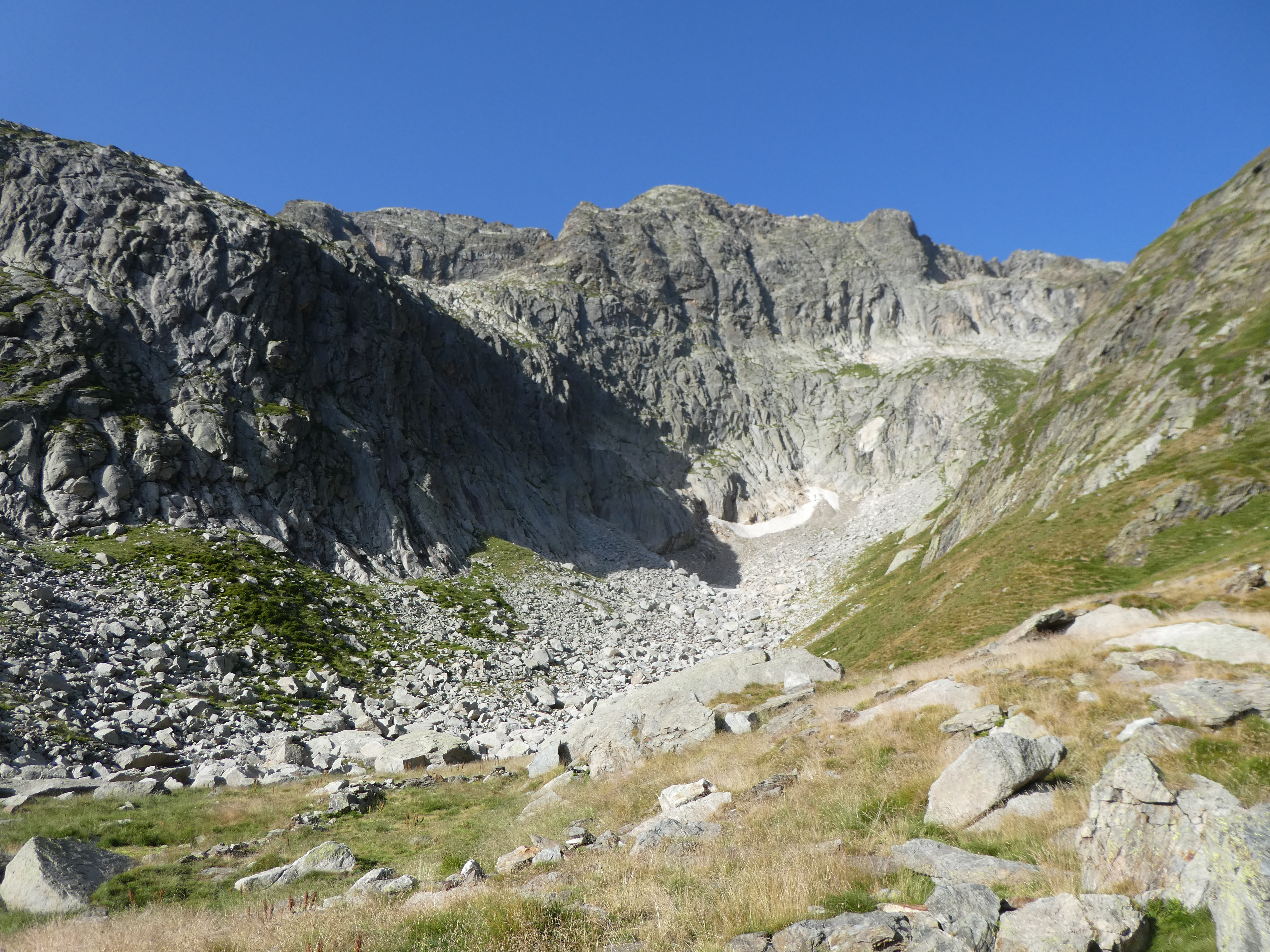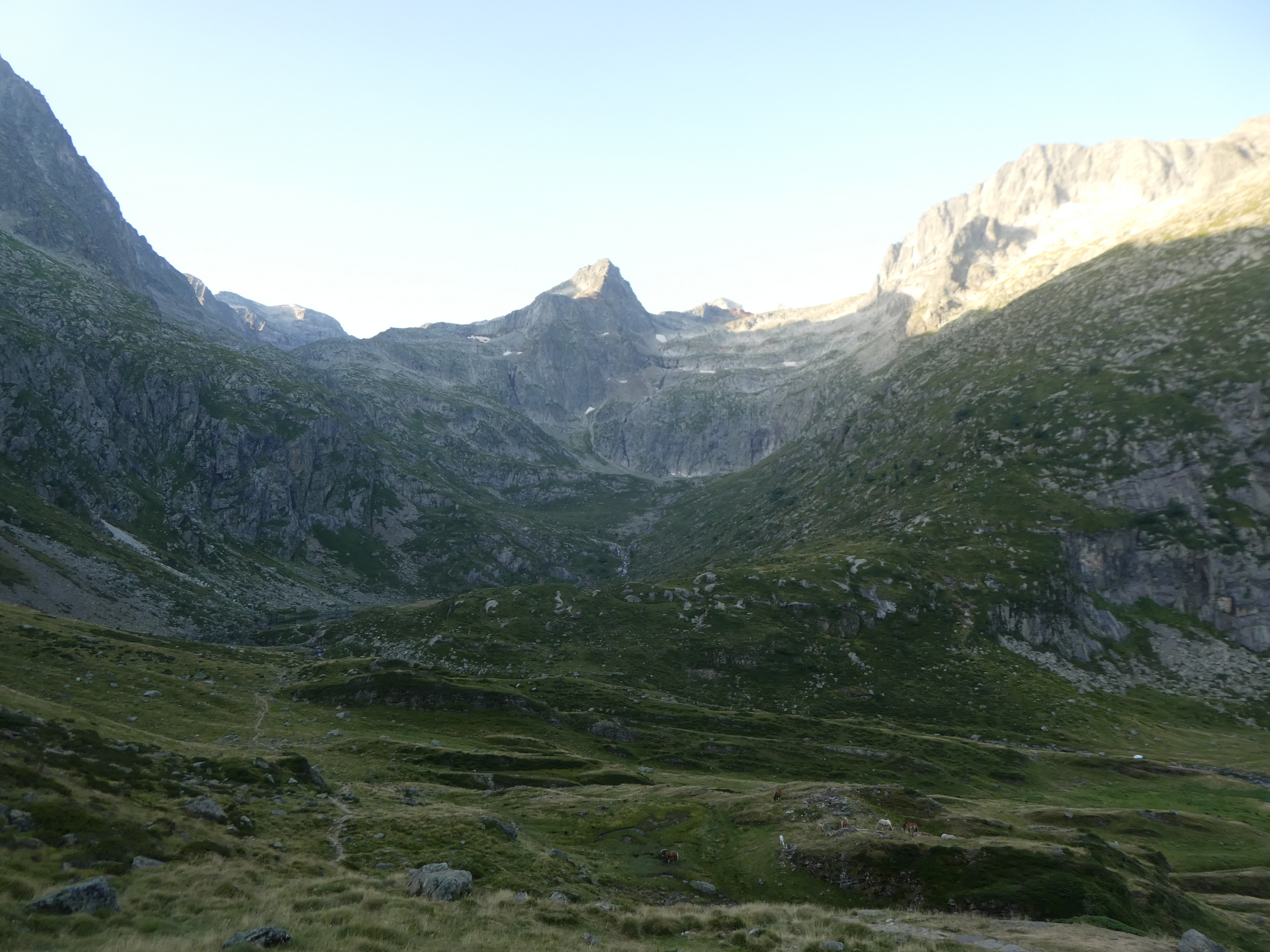 Vue sur la descente effectuée depuis le lac du Cirque de Hourgade