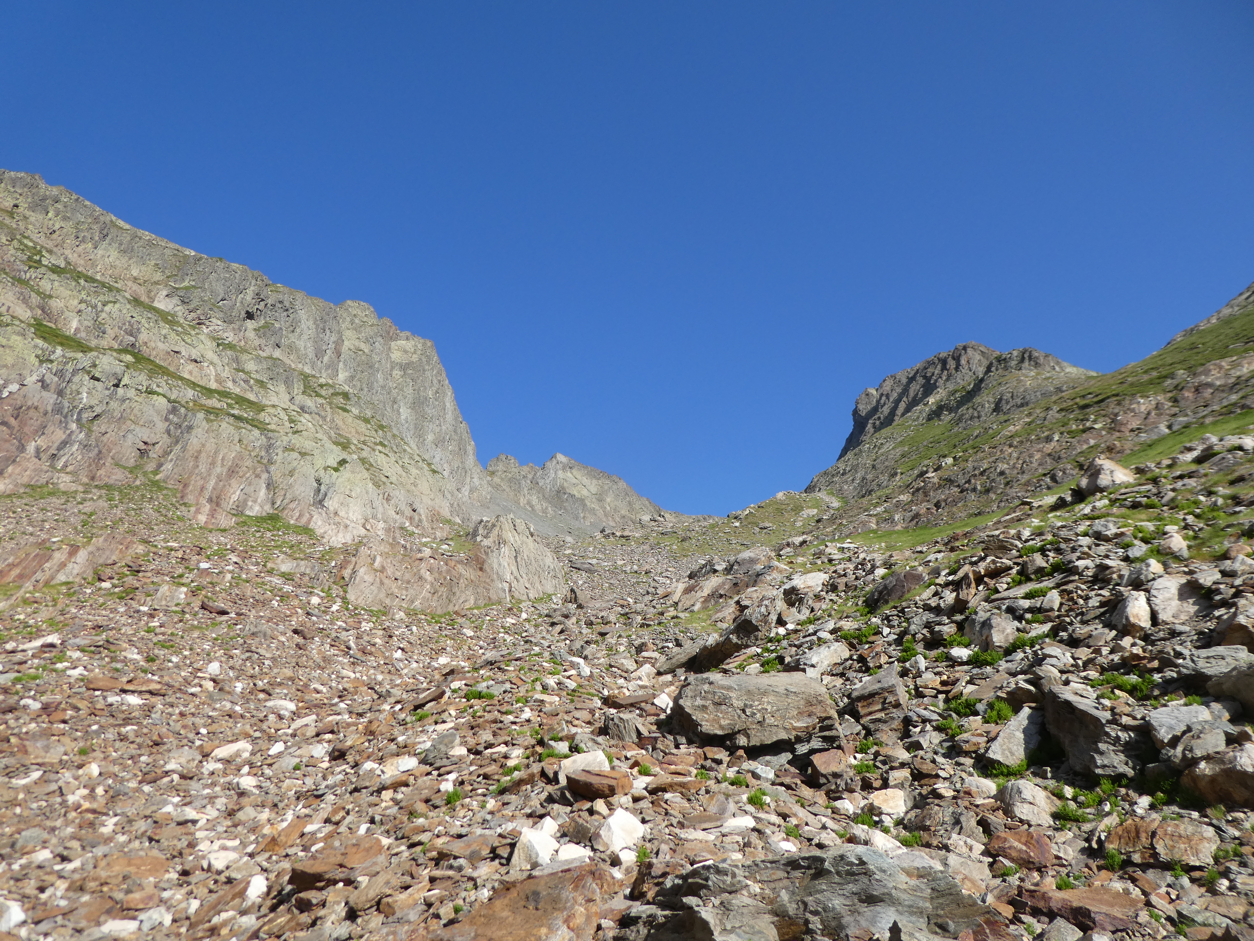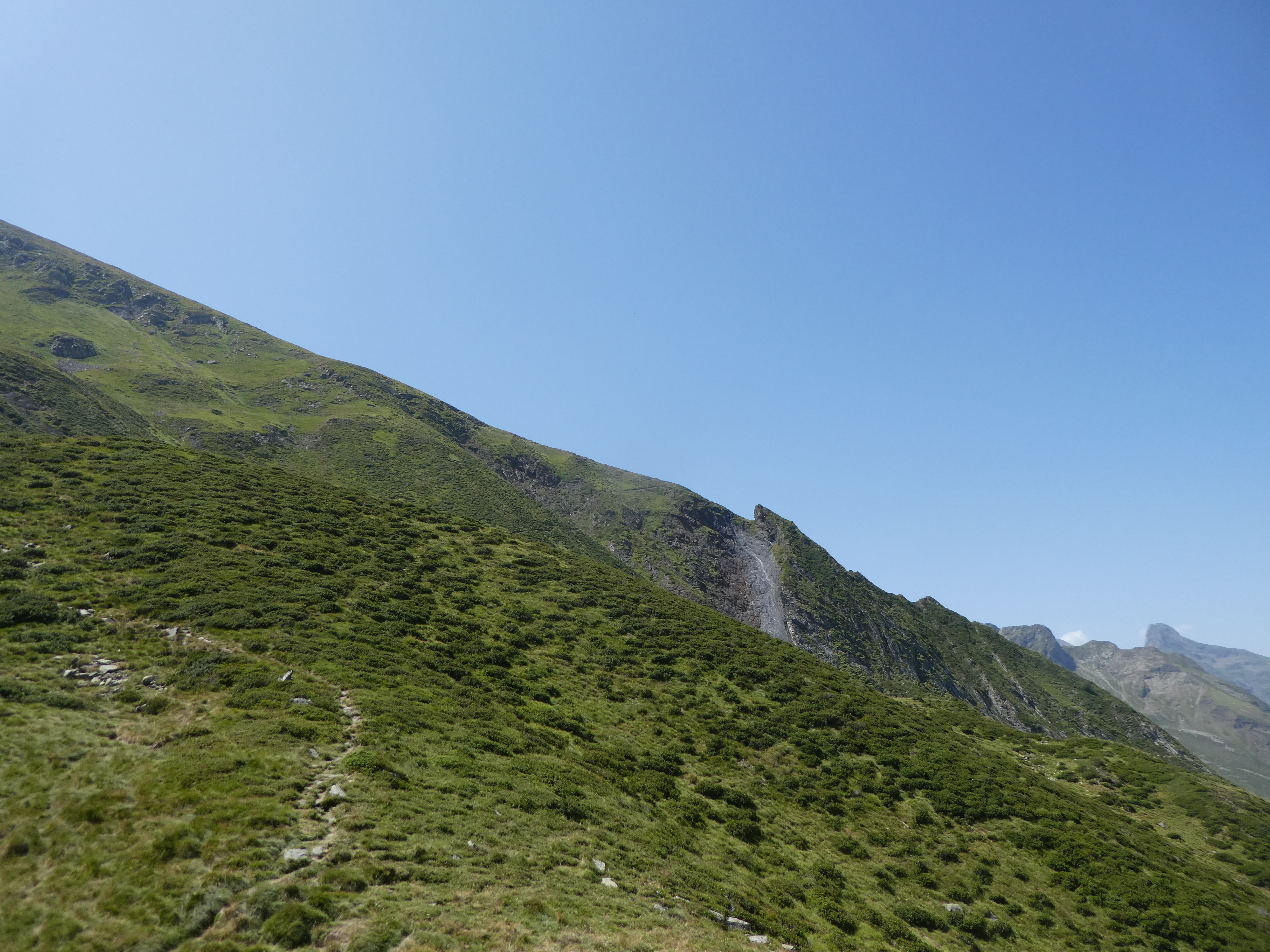 L'objectif est de rejoindre le sentier de montée vers le petit couloir rocheux du Pic de Hourgade