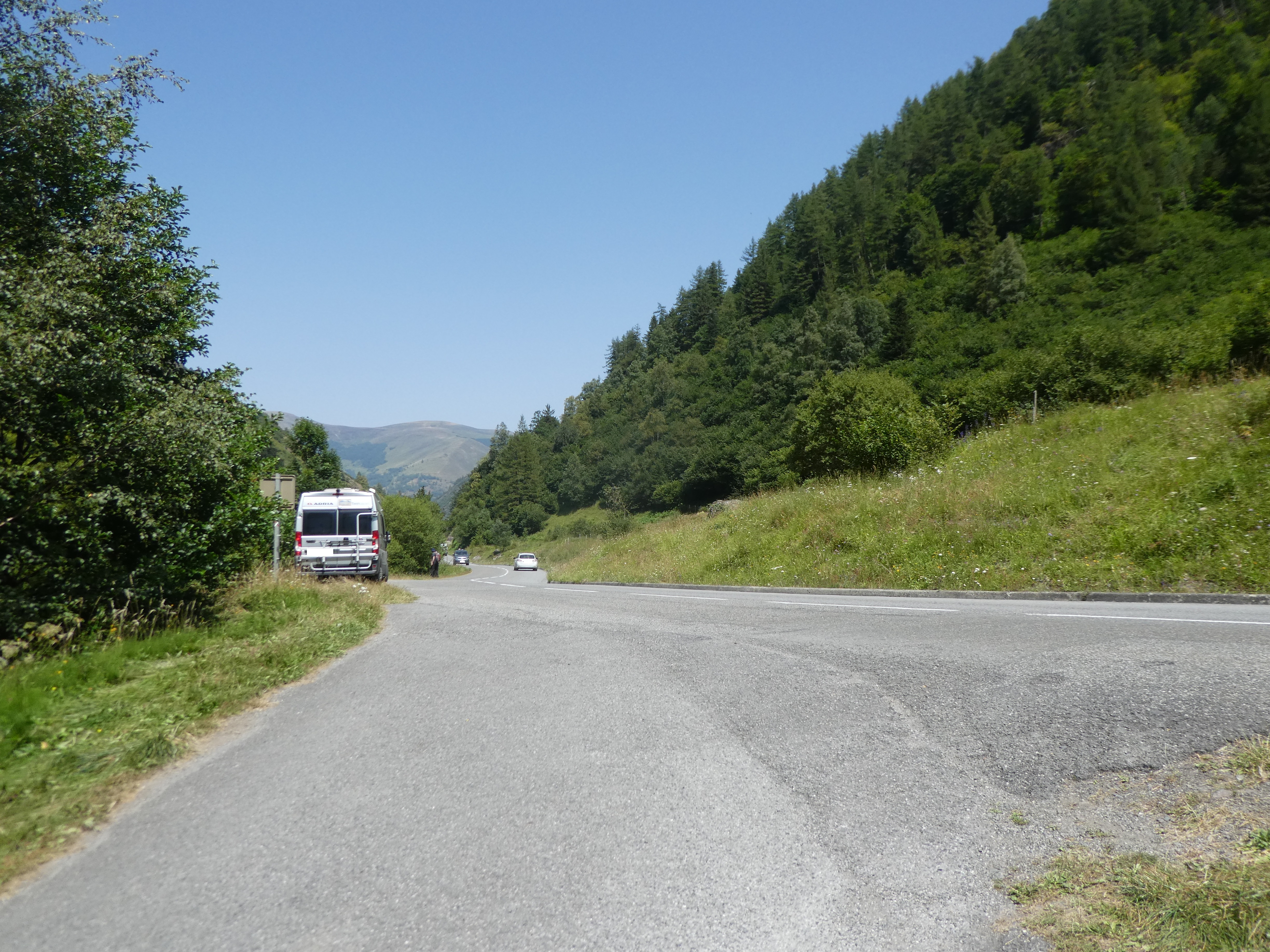 A cette intersection avec la D76 (150 mètres après le lieu-dit "le Pont d'Astau"), suivre cette dernière partant en quasi demi-tour sur la droite direction les Granges d'Astau, balisé en rouge et blanc