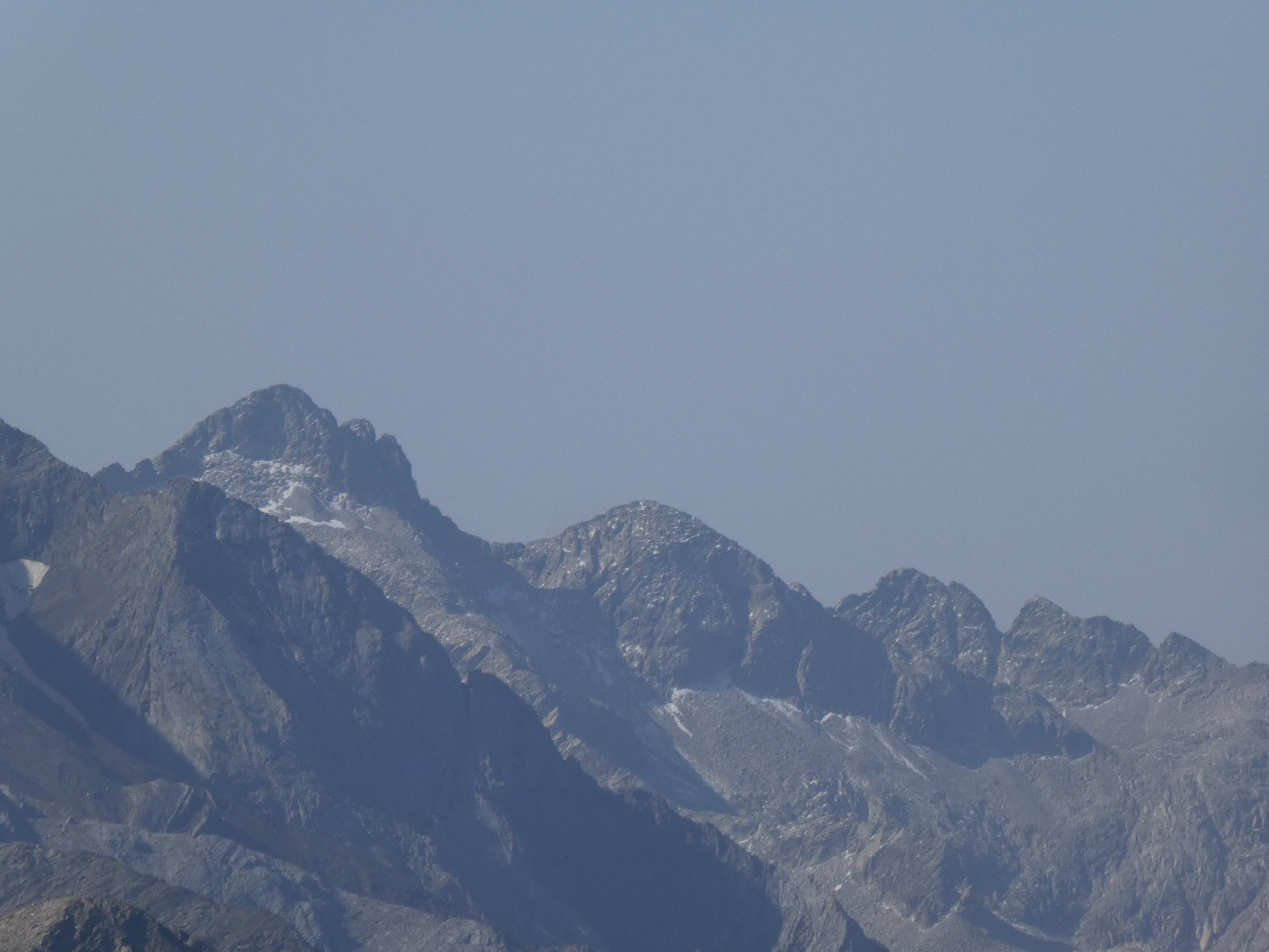 Zoom sur le Grand Quayrat (3060 m) à gauche, le Pic de Maupas (3109 m) au centre et le Pic Lézat (3107 m) à droite