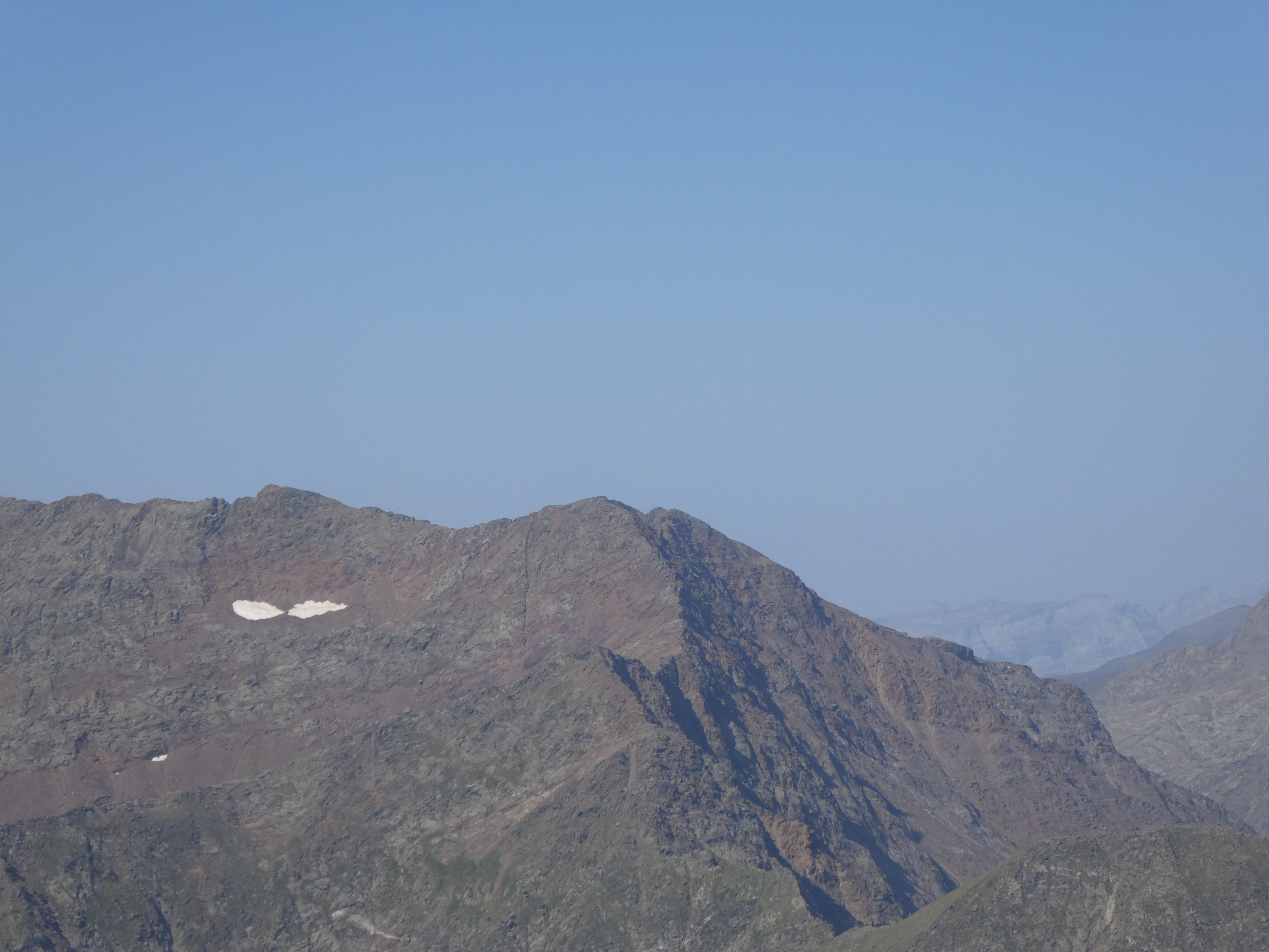 Zoom sur le Pic d'Aulon (2738 m) au centre-gauche et l'Arbizon (2831 m) au centre-droit