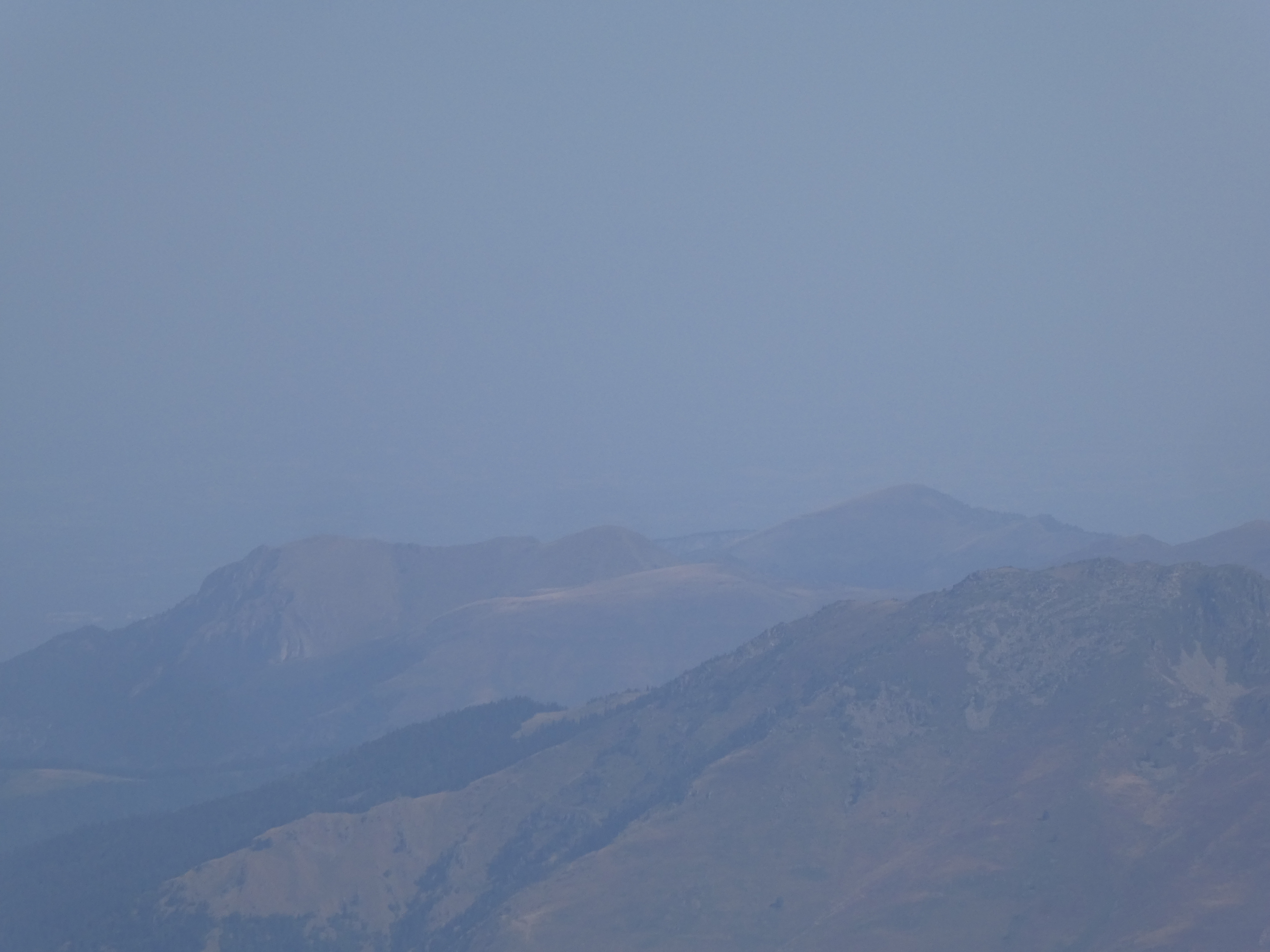 Zoom sur le Pic de Burat (2154 m) au centre-gauche, le Pic de la Hage (2165 m) au centre et le Pic de Bacabnère (2193 m) au centre-droit