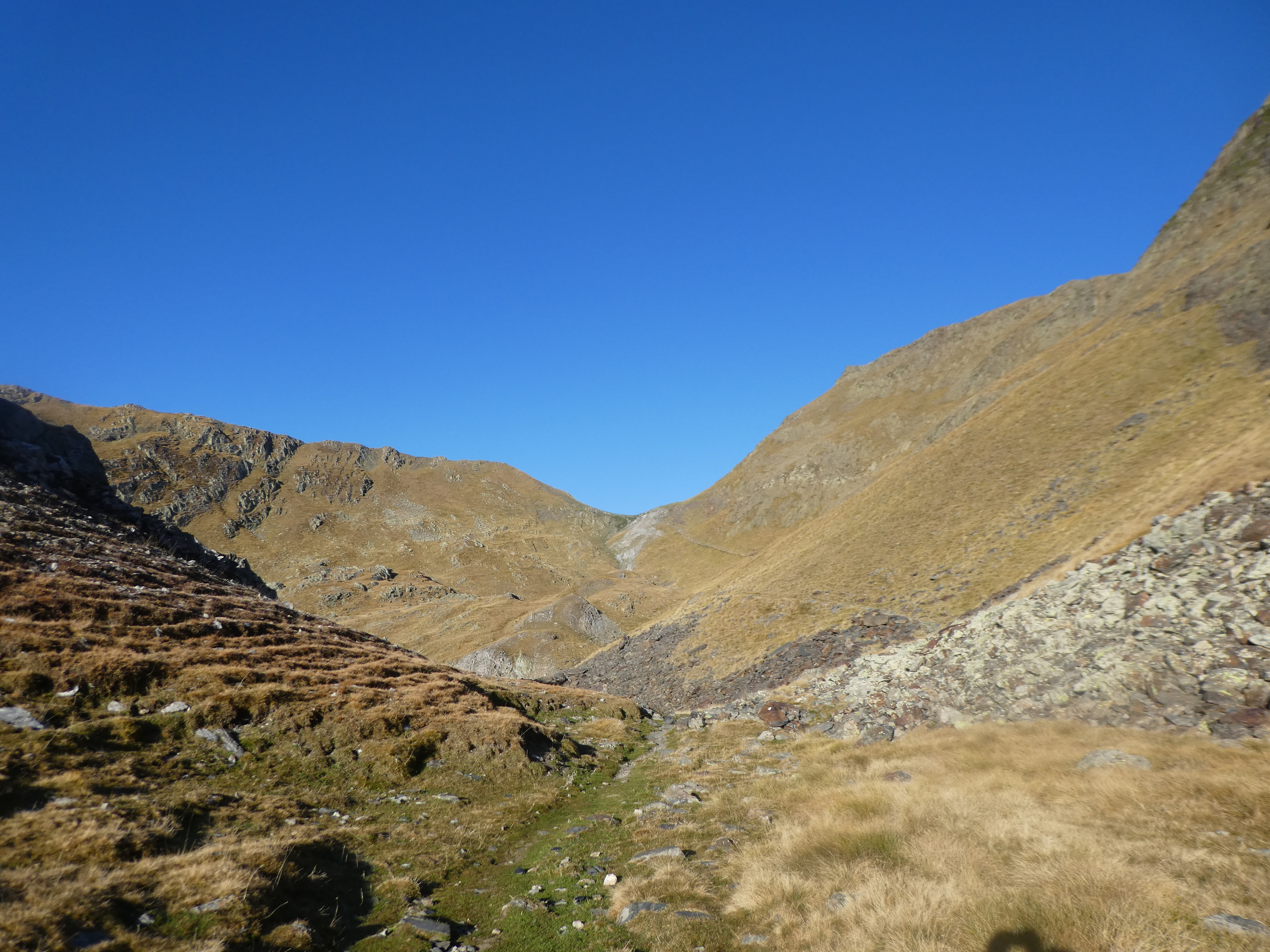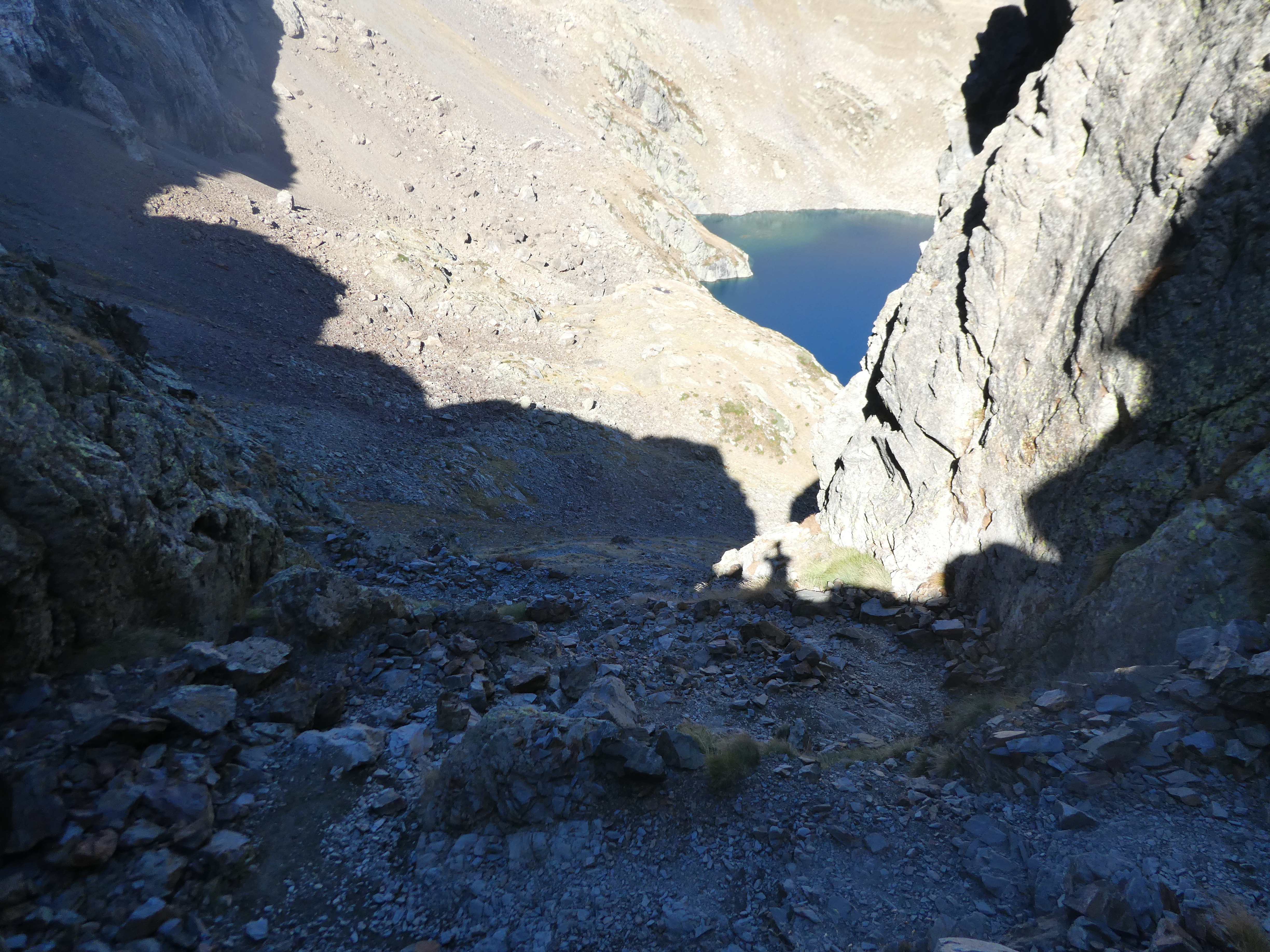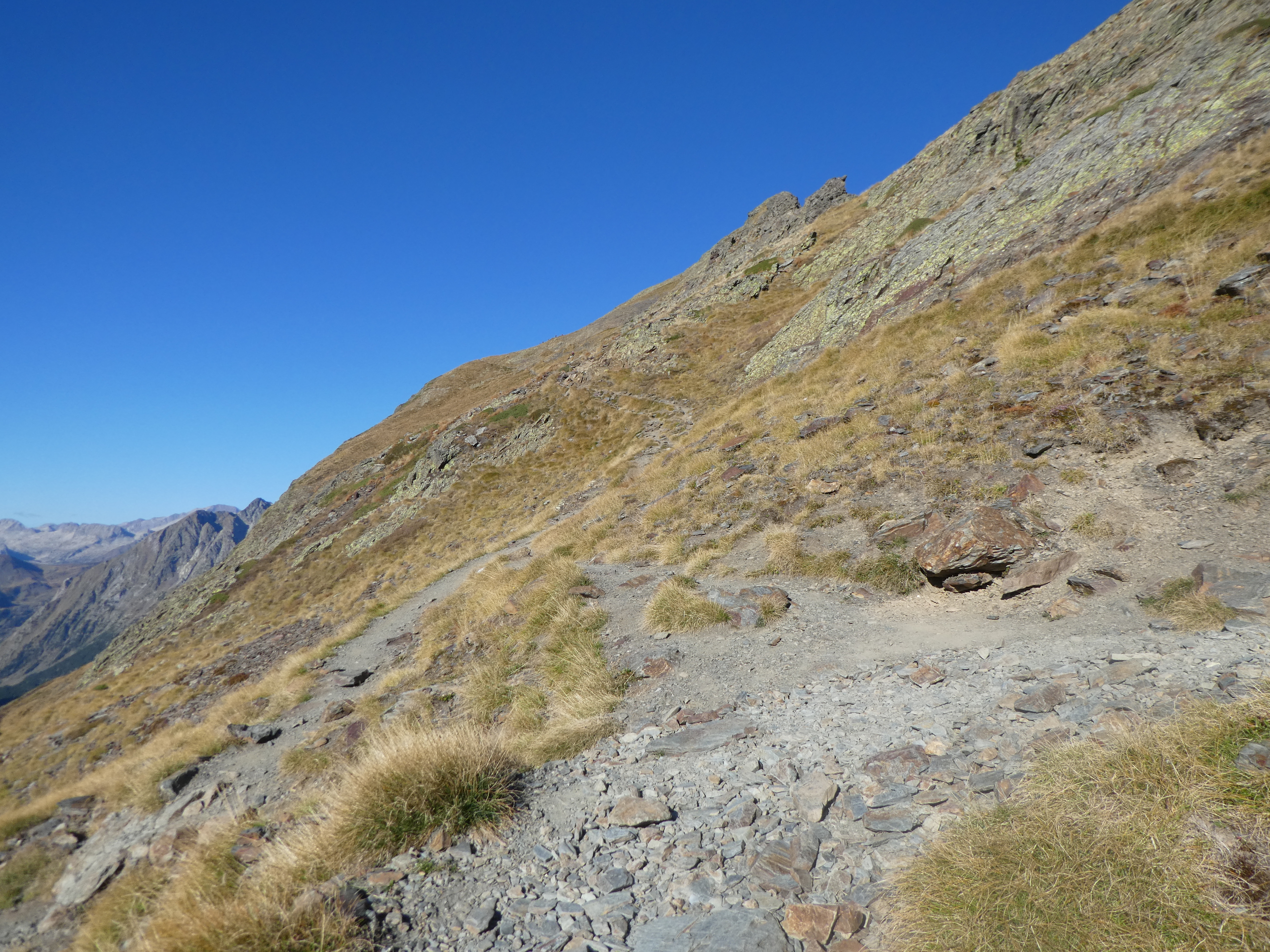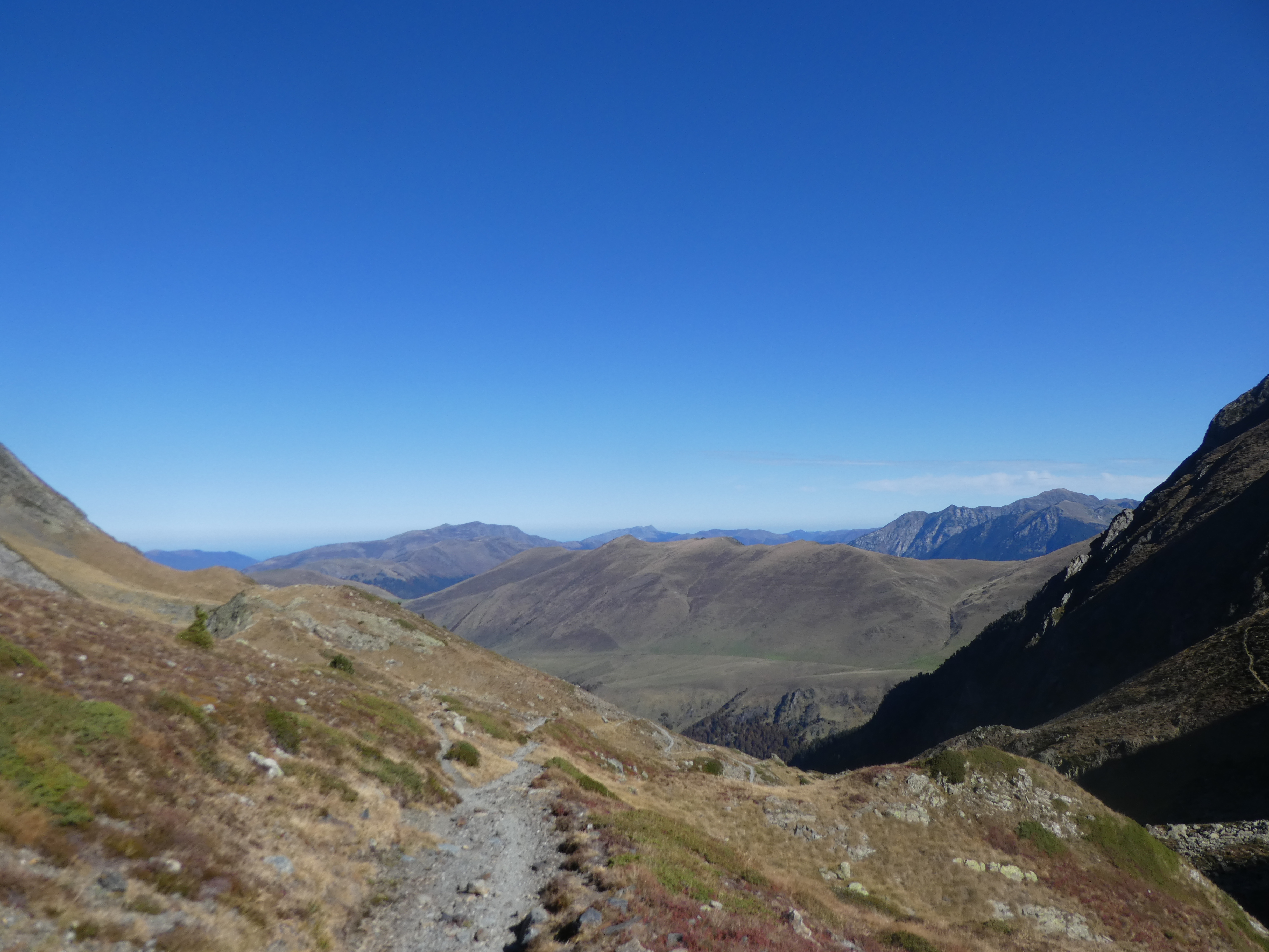 Vue arrière sur la descente effectuée depuis le Pòrt dera Picada (pour ceux qui font la boucle dans l'autre sens -sens classique-, voici les 150 mètres de dénivelé positifs à réaliser pour le retour)