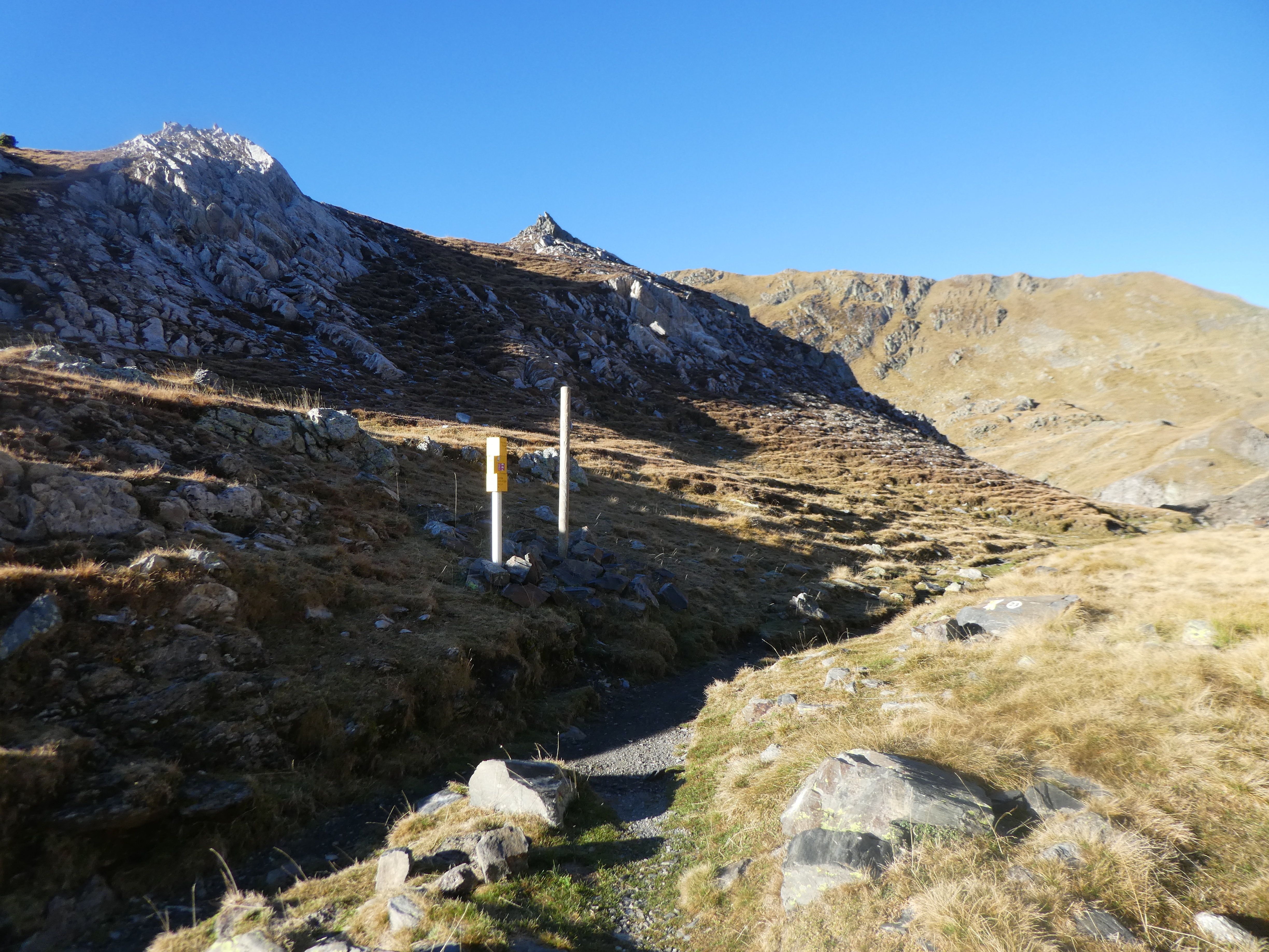 Pòrt dera Picada ou Puerto de la Picada (2478 m) : frontière entre la Catalogne et l'Aragon : suivre le chemin partant tout droit direction Puerto de Benasque, balisé en jaune (entrée dans la comarque de la Ribagorza)