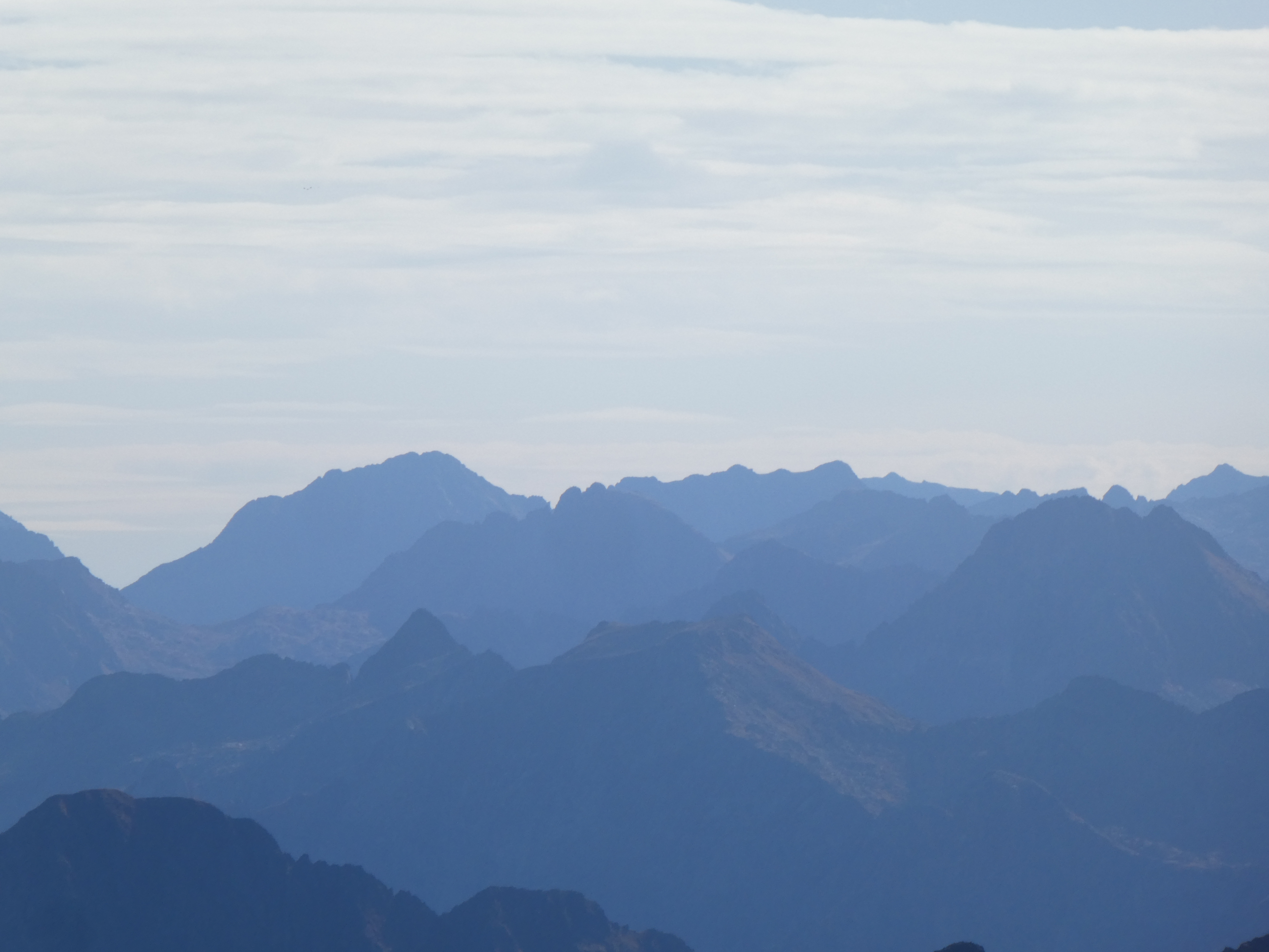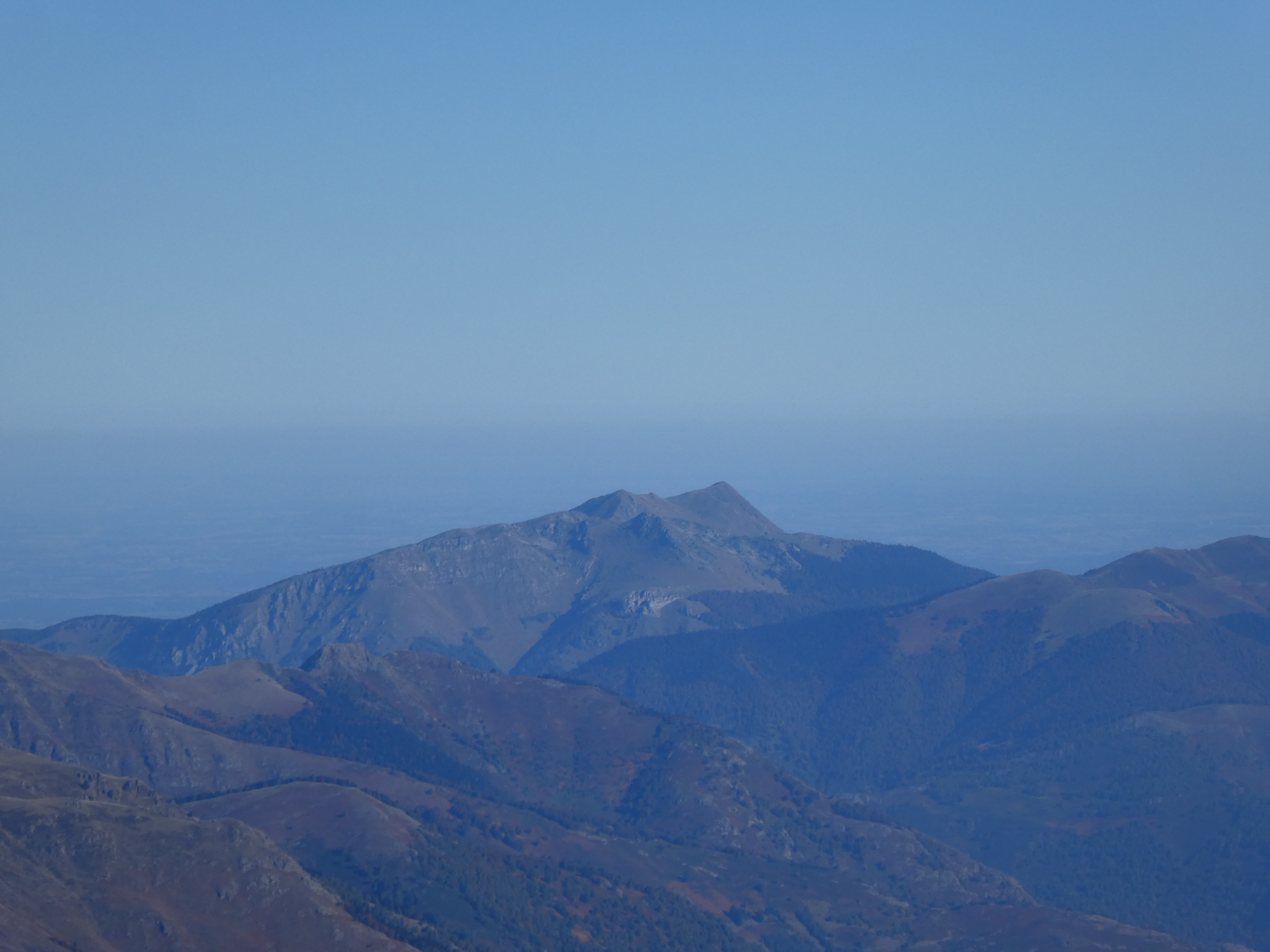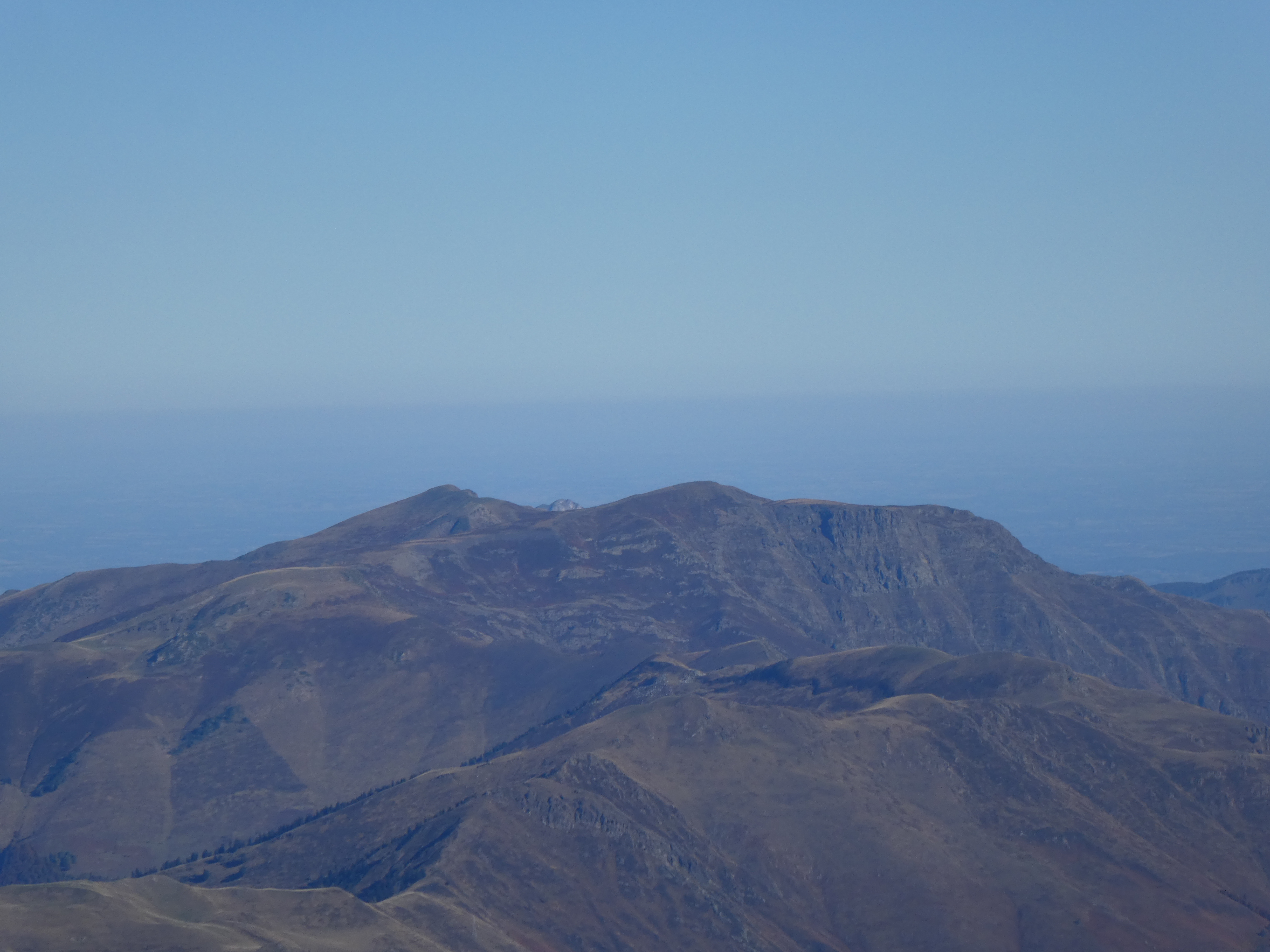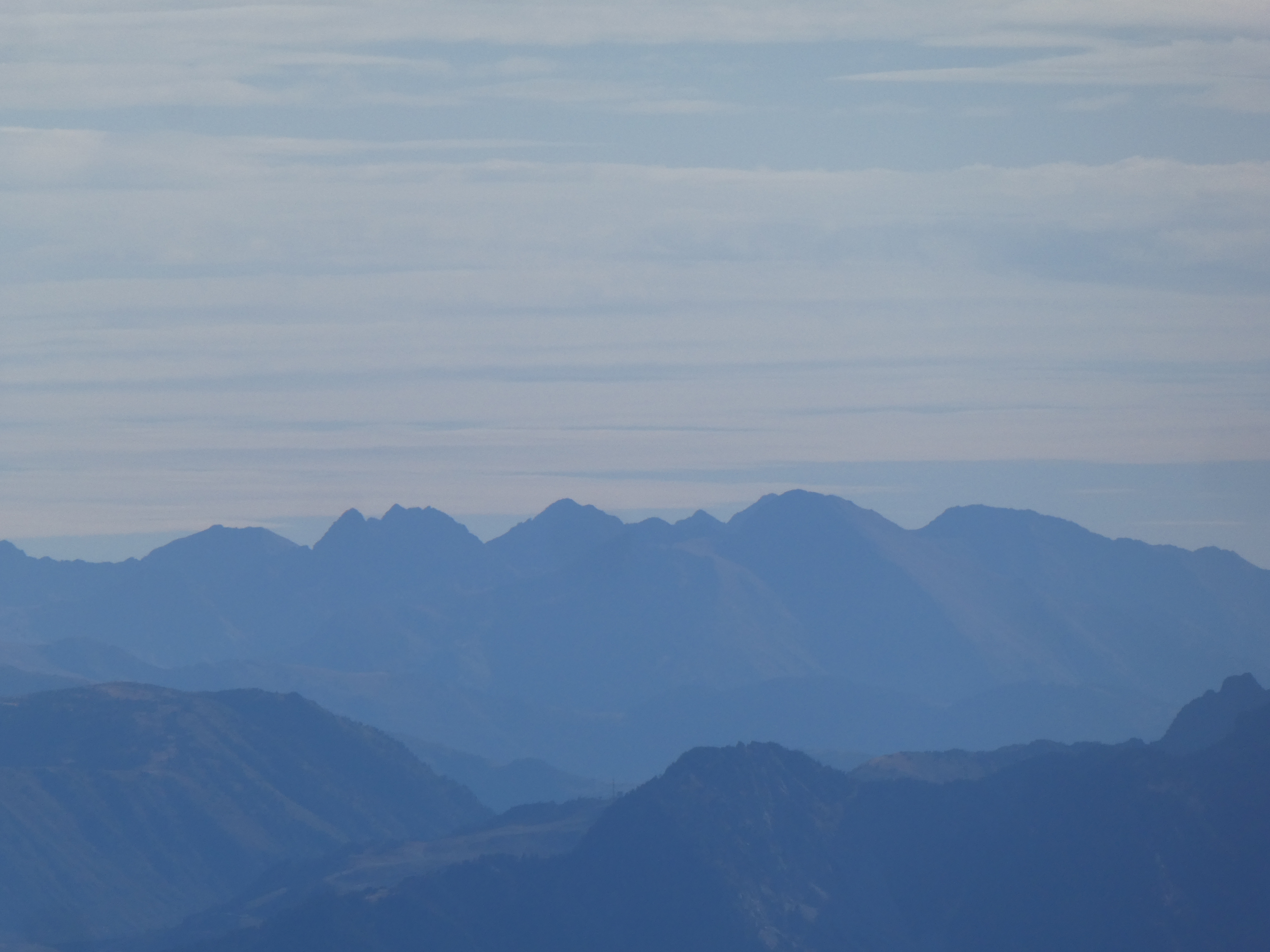 Zoom sur le Pic de Douly (1635 m) à gauche, le Pic de Pouy Usclat (1755 m) au centre et le Mont Las (1729 m) à droite