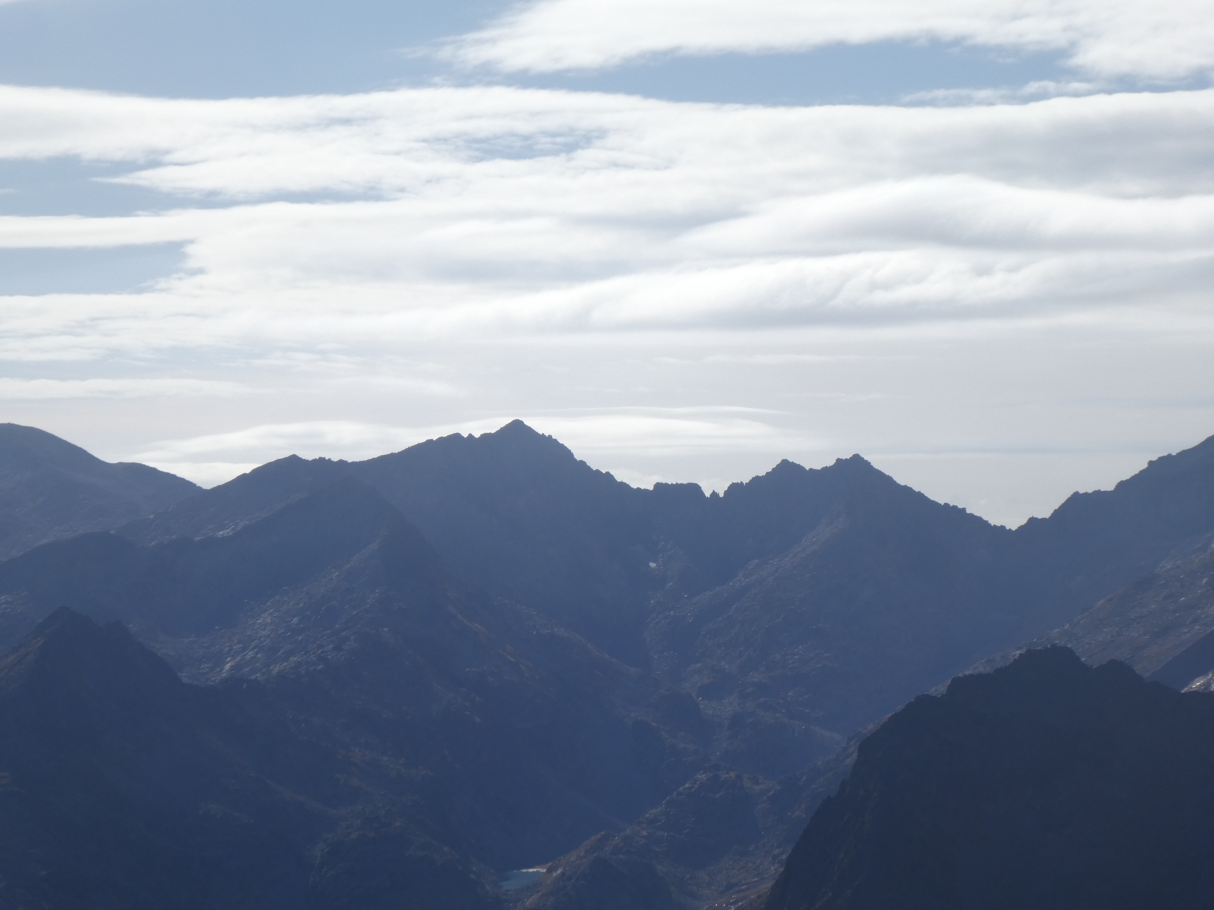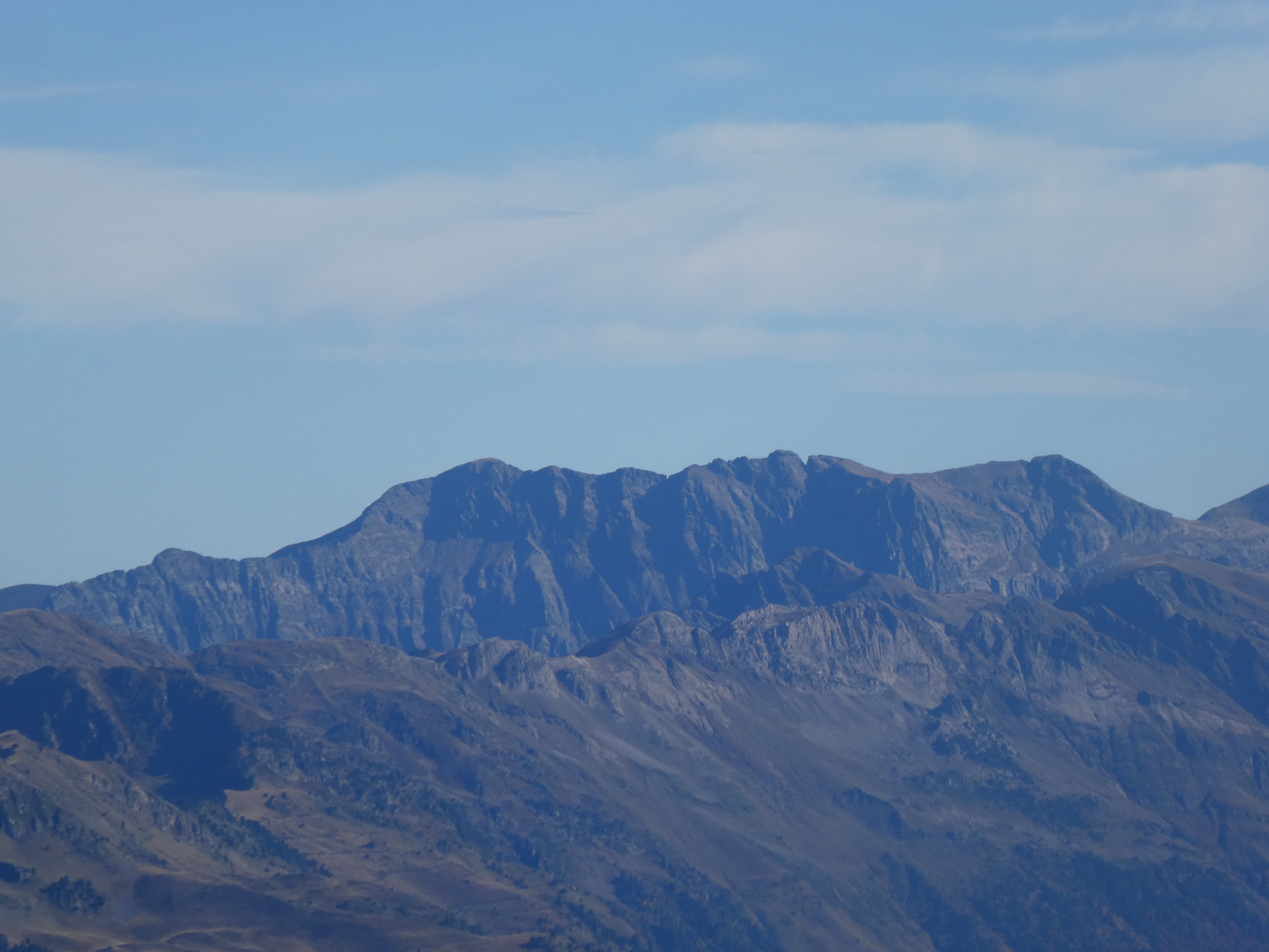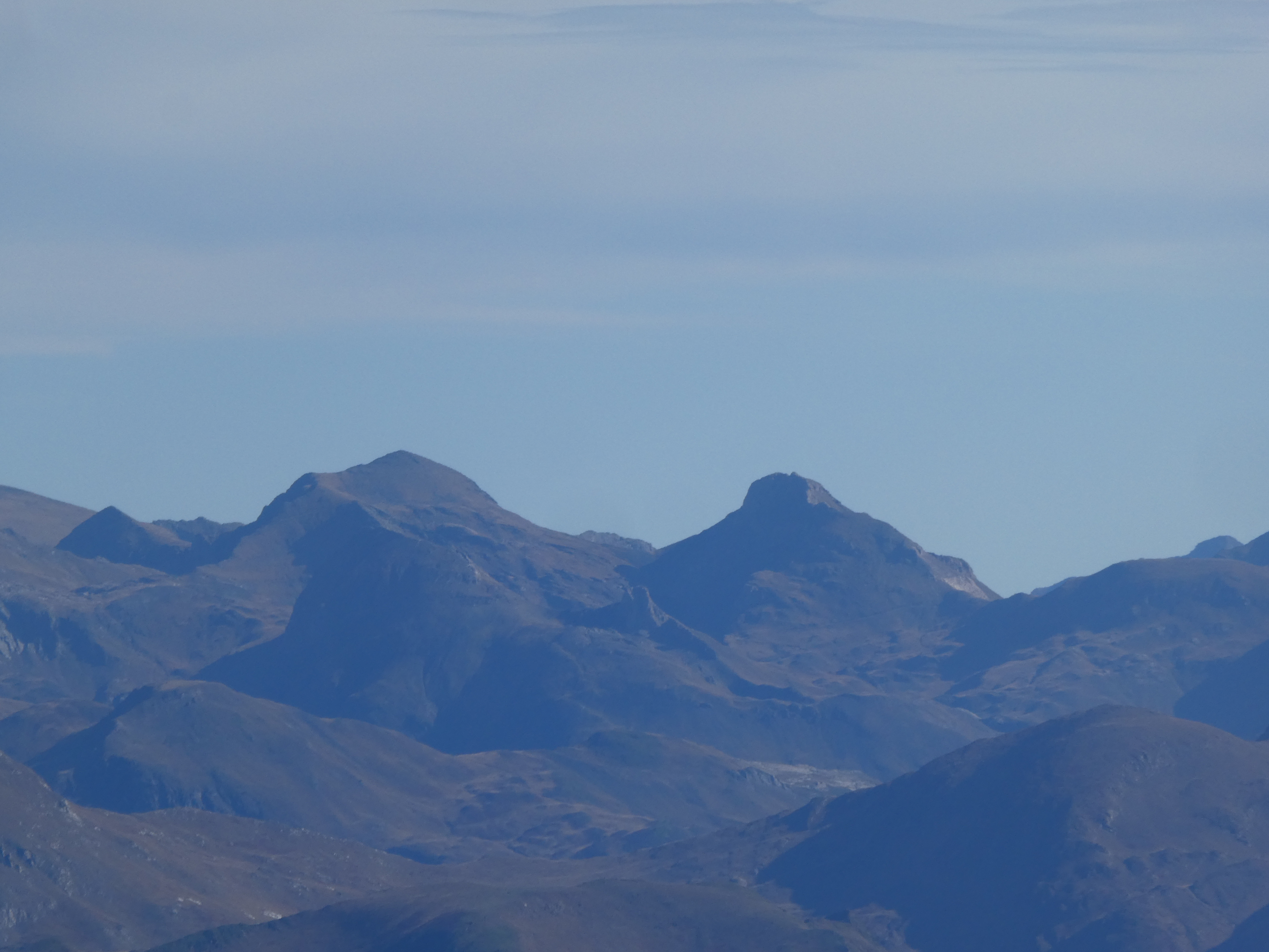 Zoom sur la Tuca des Corbets (2901 m) au centre-gauche et le Pico Gran Eriste (3056 m) au centre-droit