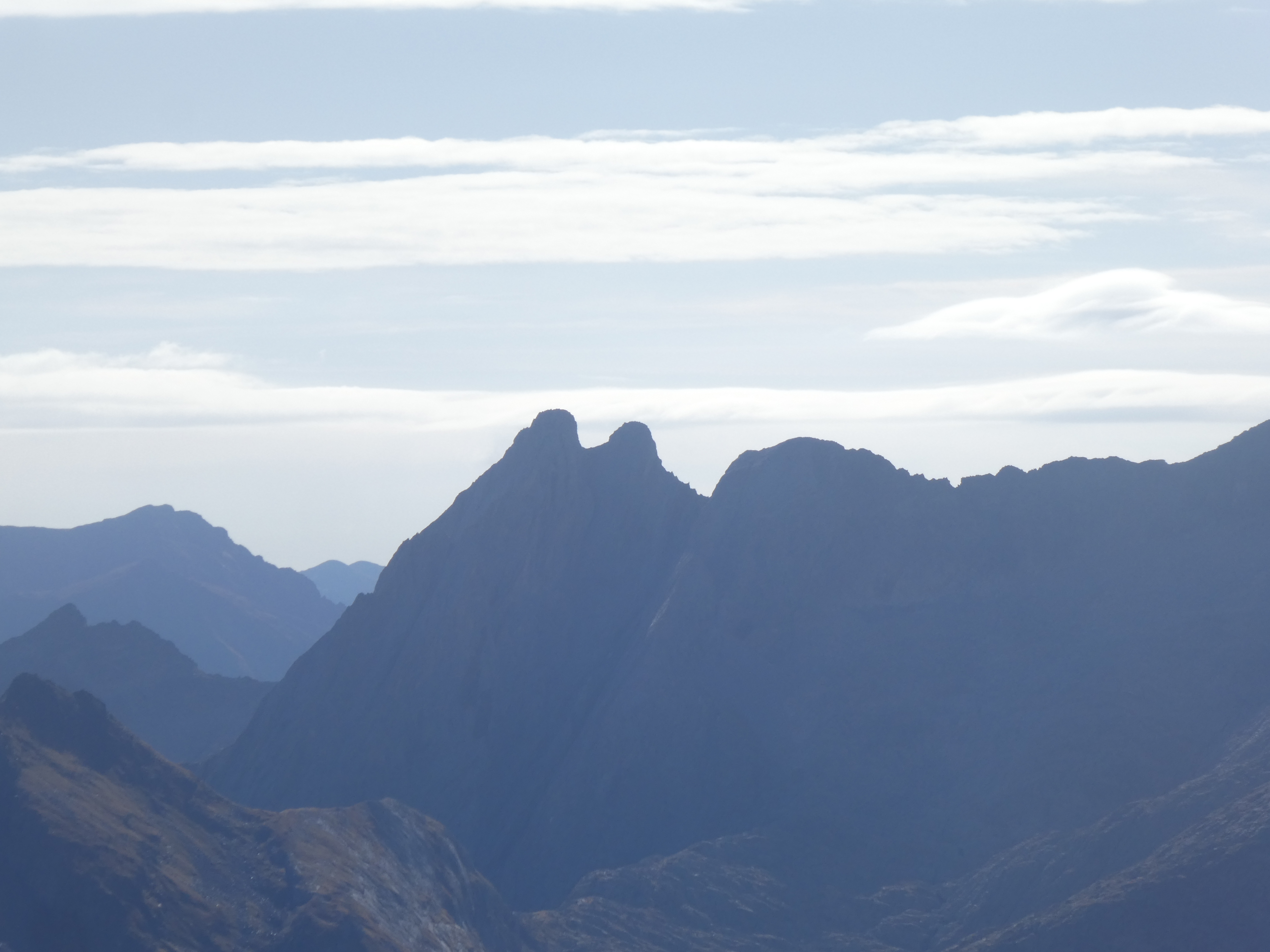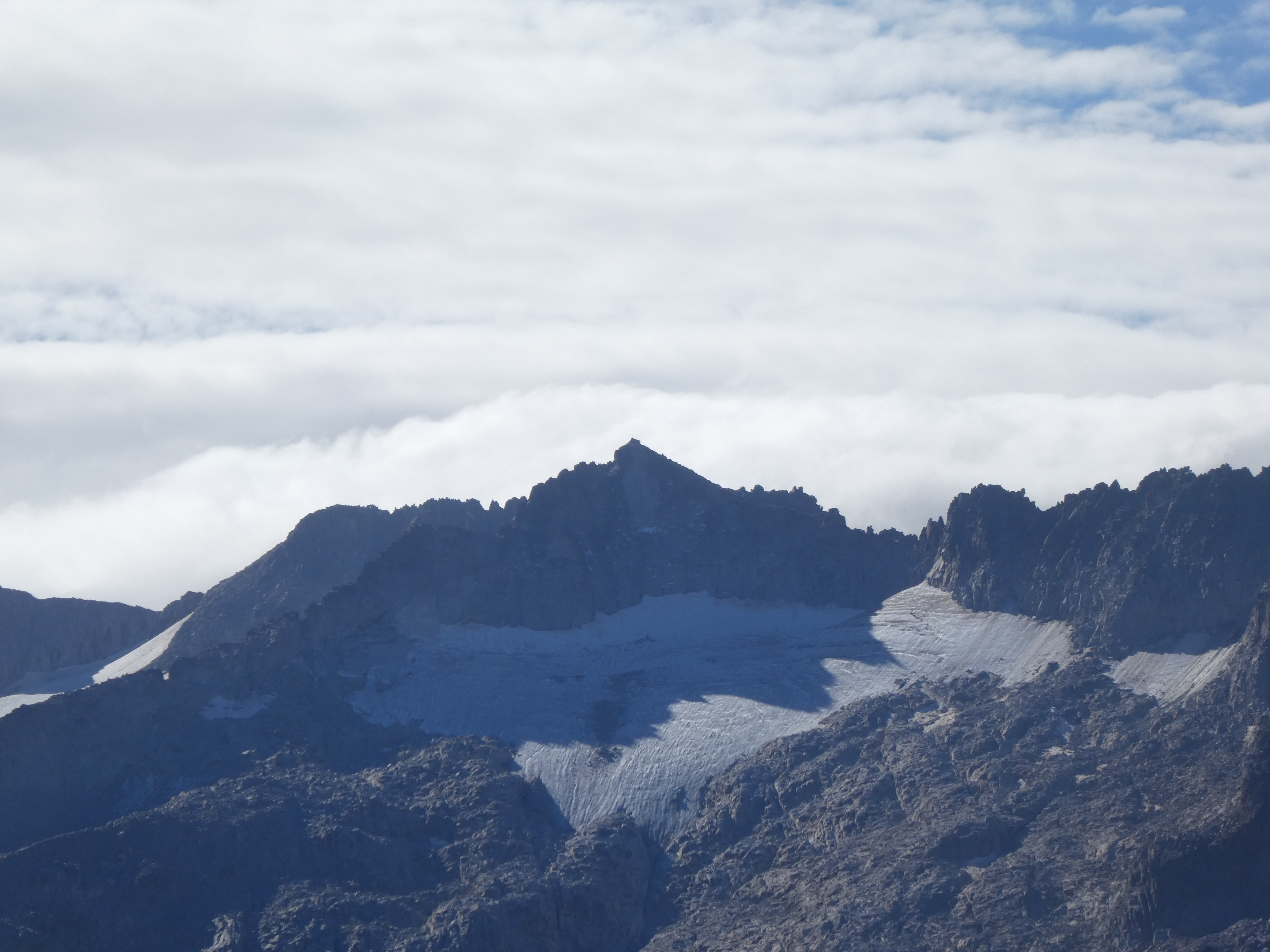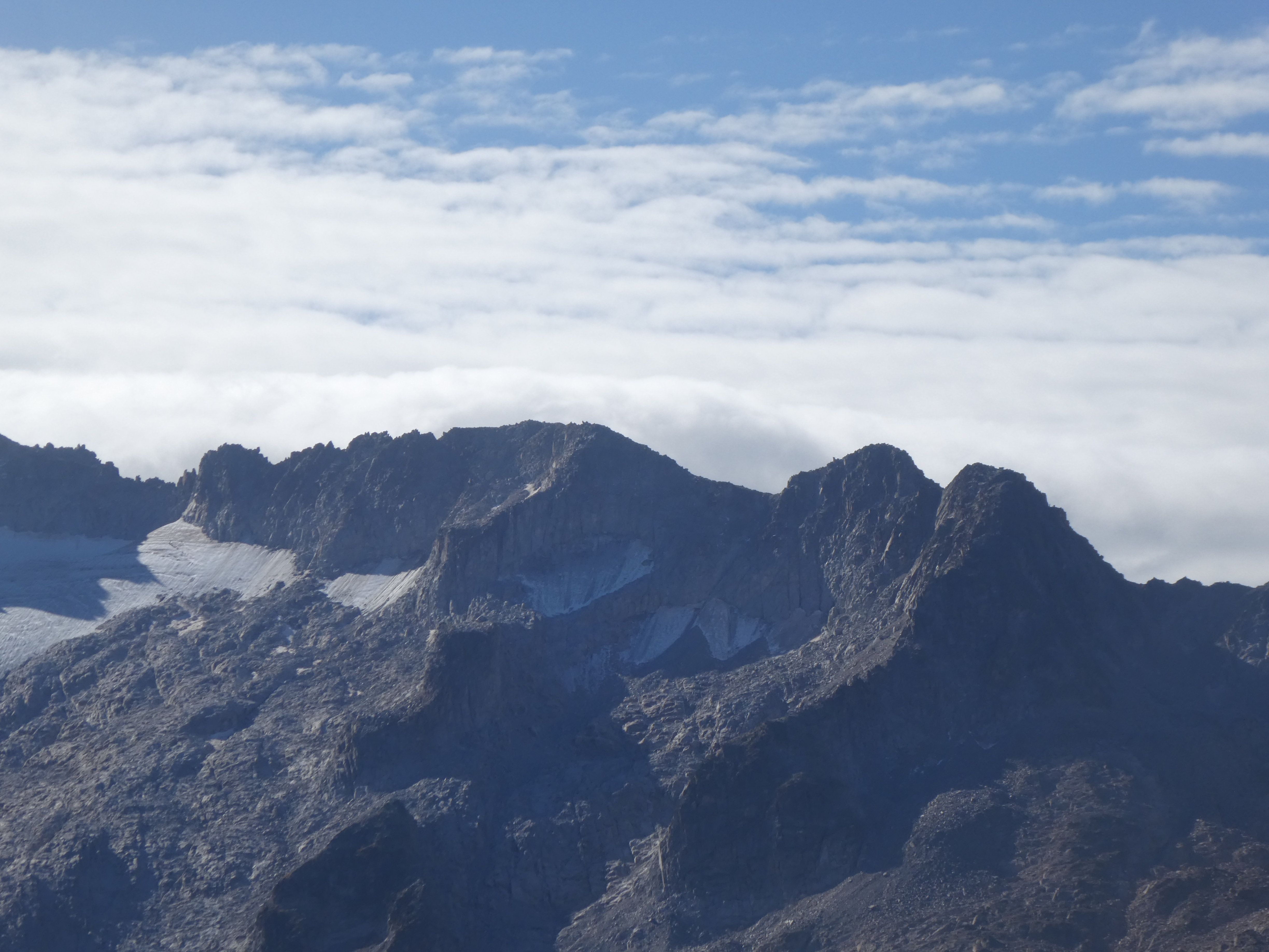 Zoom sur la Diente de Alba (3121 m) à gauche et le Pico de Alba (3112 m) au centre-droit