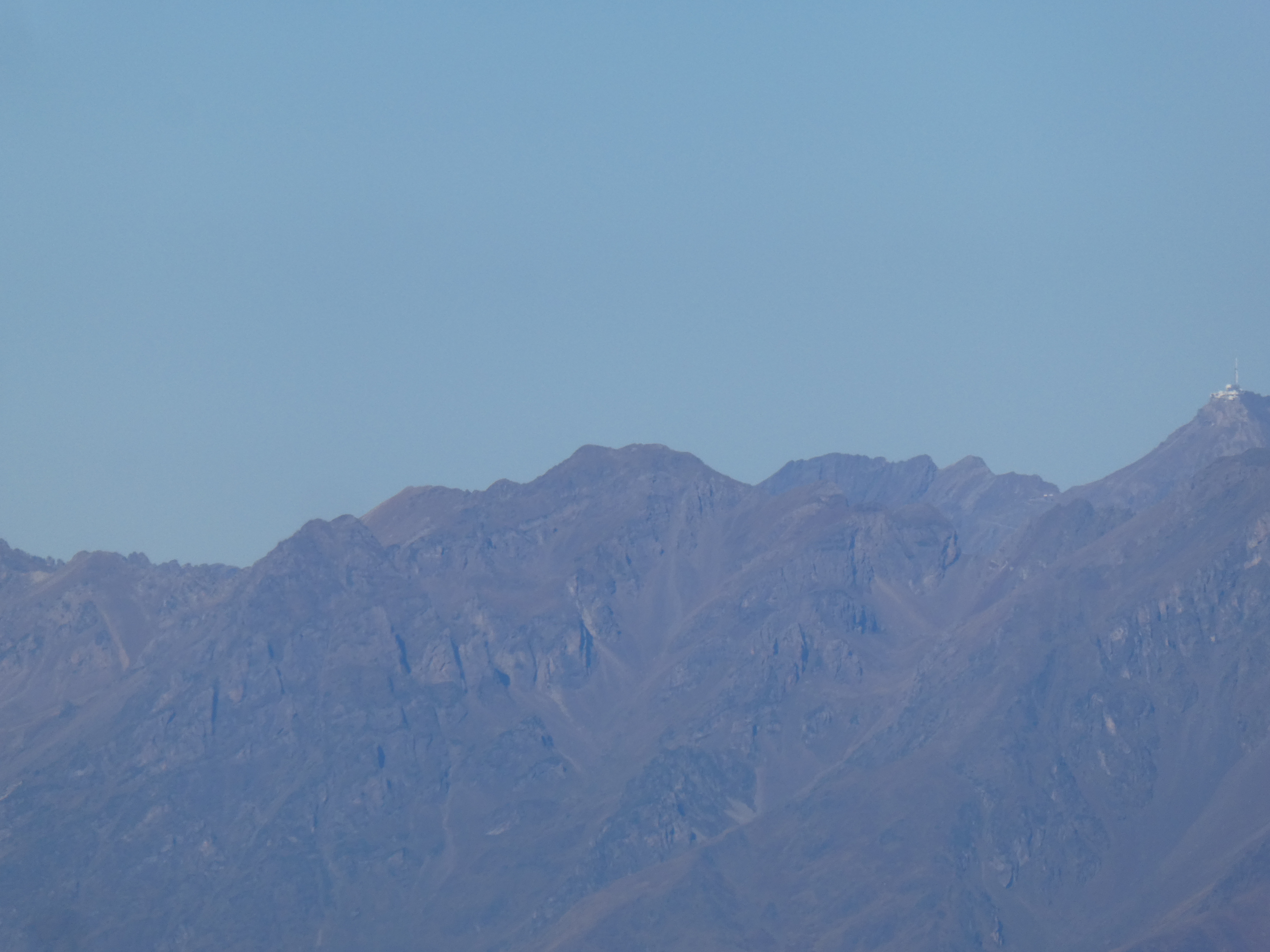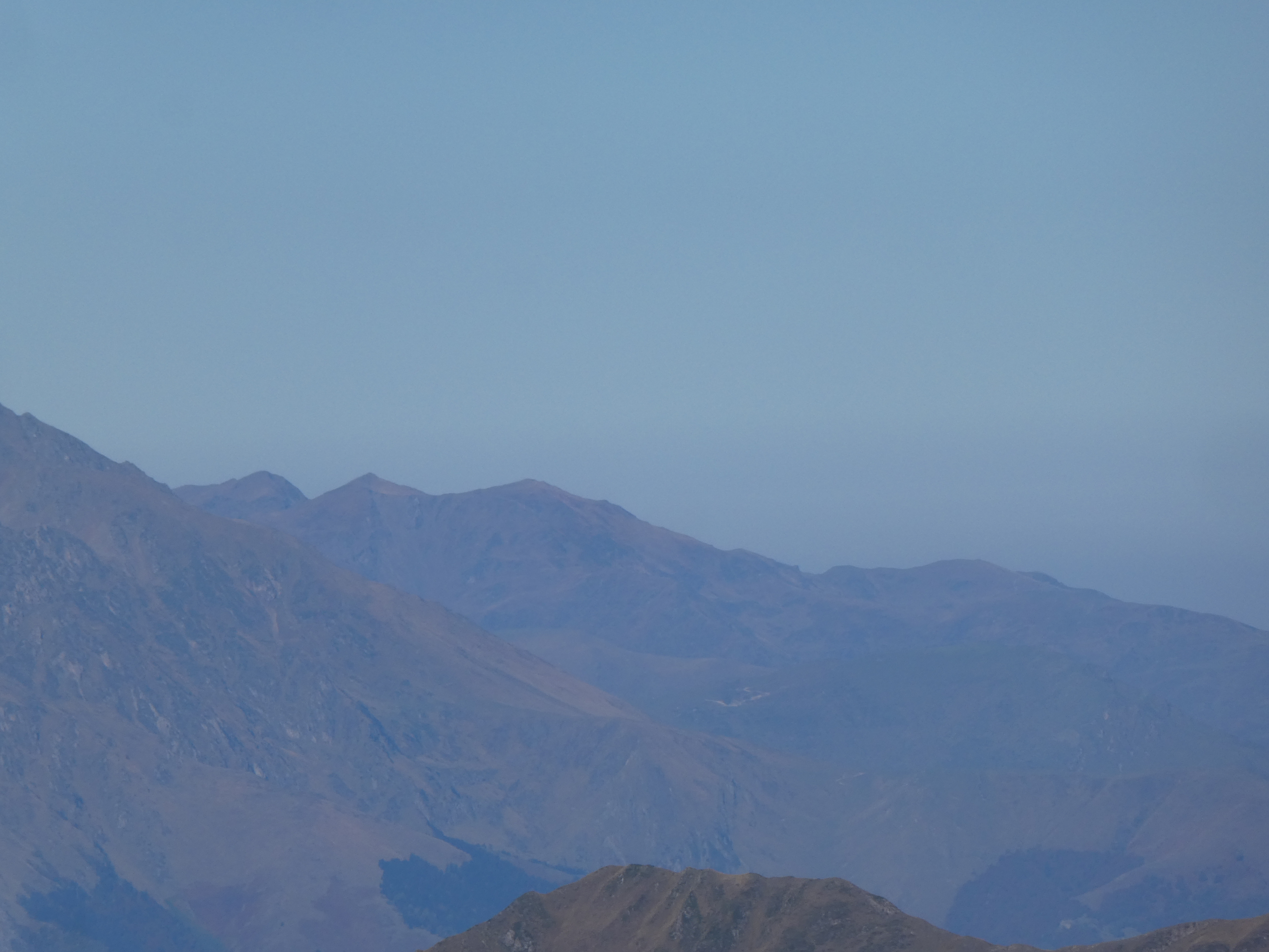 Zoom sur le Pic du Midi de Bigorre (2877 m) et l'Arbizon (2831 m) à gauche, et le Pic du Bassia (2557 m) au centre-droit